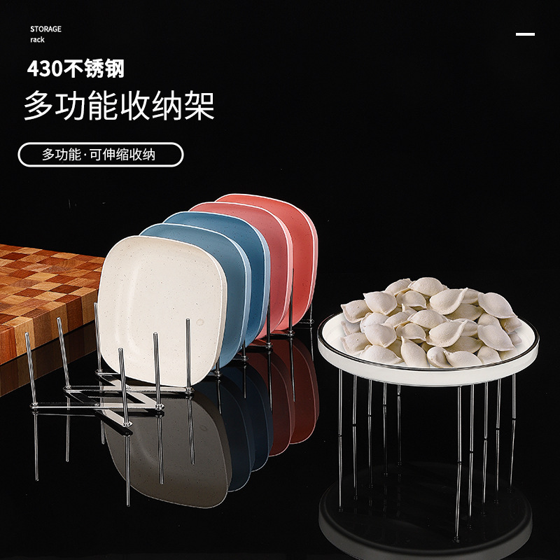 不锈钢盘子架锅盖架侧放可伸缩折叠多用途蒸架餐厅家用厨房收纳架