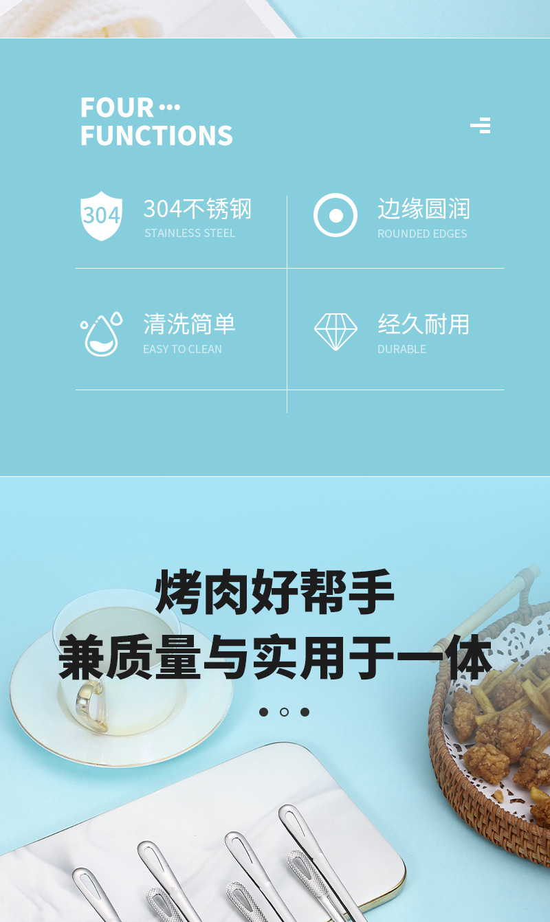 304不锈钢韩式烤肉夹 跨境批发草莓夹酒店餐厅自助餐牛排夹食物夹