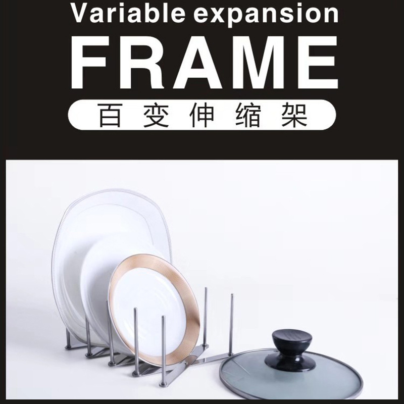 不锈钢伸缩盘子架折叠厨房置物碟架多用途锅盖收纳架伸缩蒸架多层