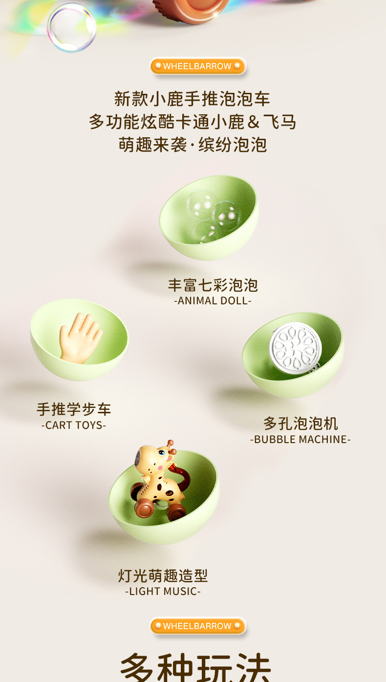 儿童手推泡泡机玩具全自动吹泡泡小推车婴儿宝宝学步车户外玩具