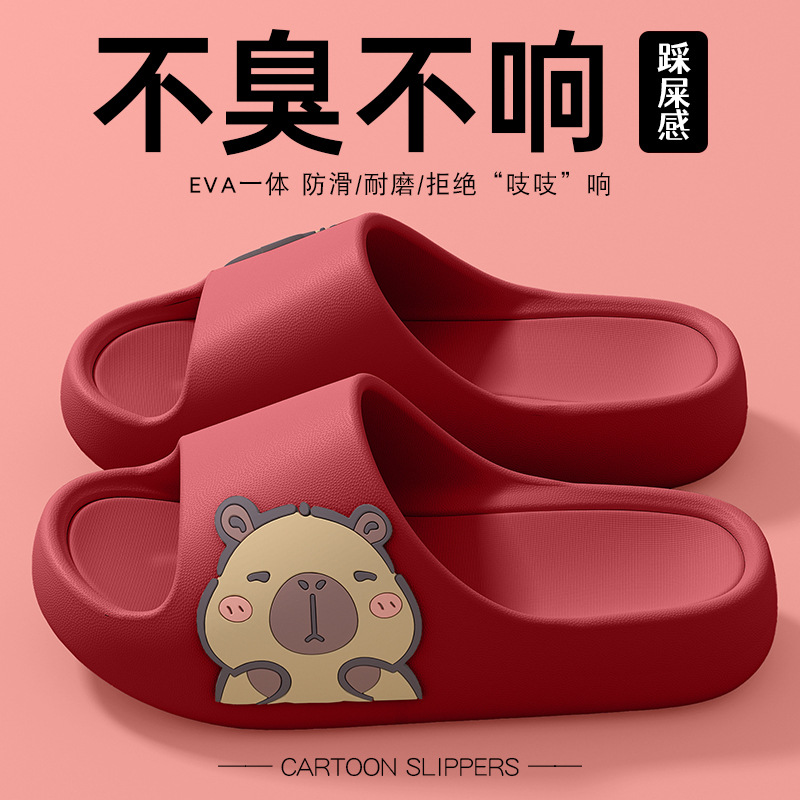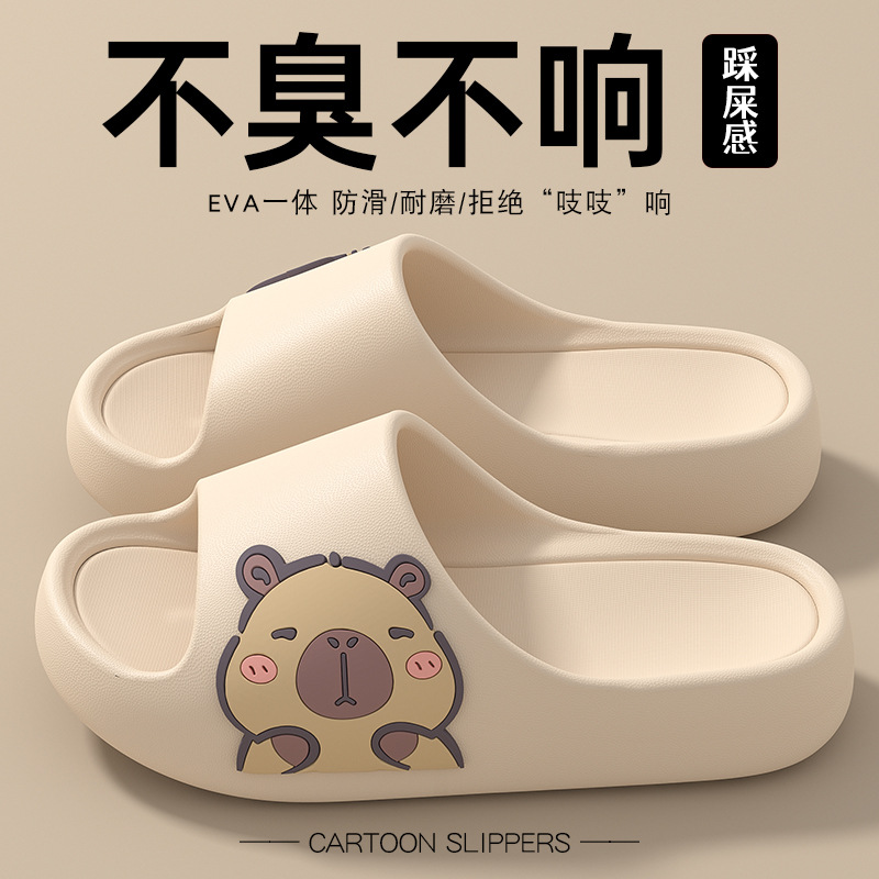 小煤球拖鞋女夏外穿2025新款室内家居防滑踩屎感厚底家用凉拖鞋男