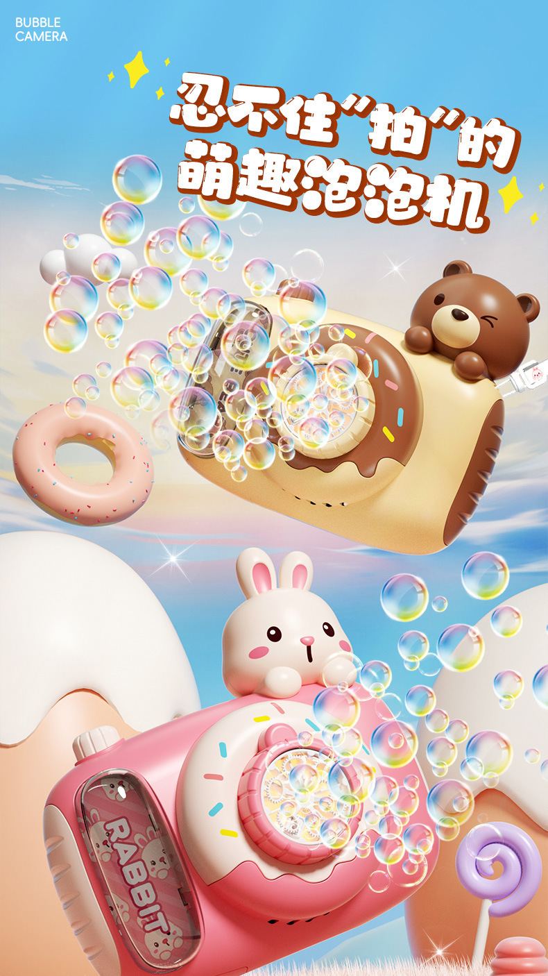 2025新款泡泡机儿童手持全自动吹泡泡照相机泡泡水补充液女孩玩具