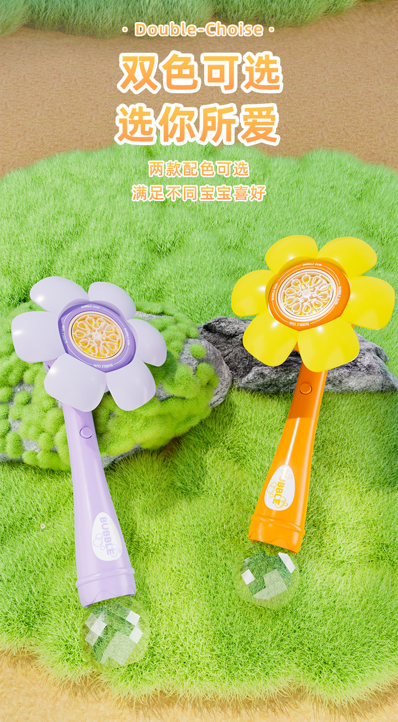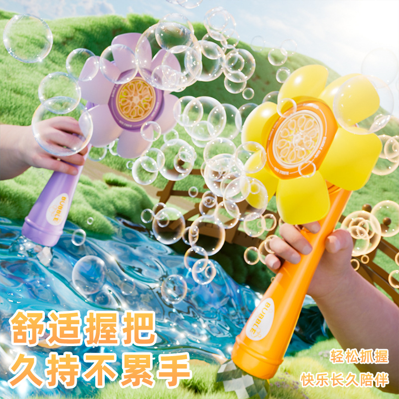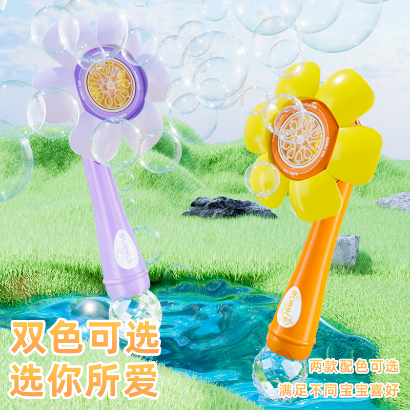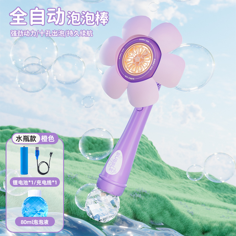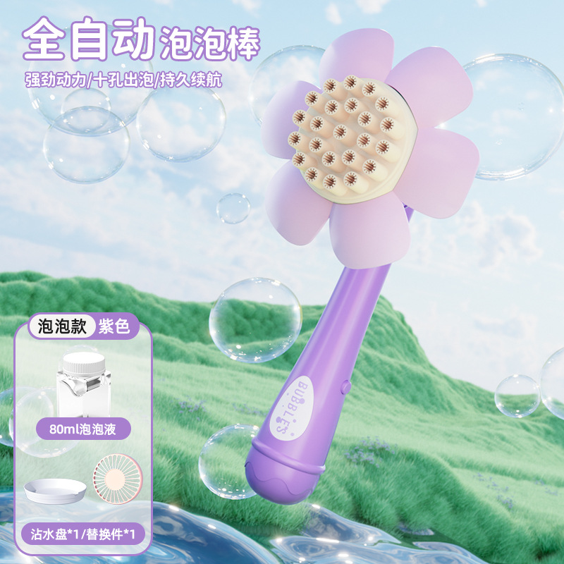 儿童新款全自动花朵泡泡机一键启动爆款手持不漏炫彩吹泡泡棒代发