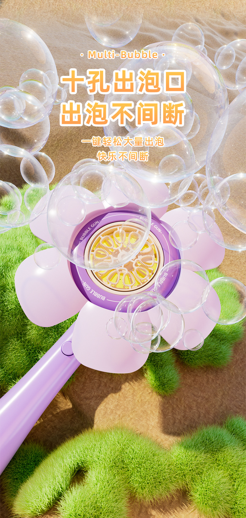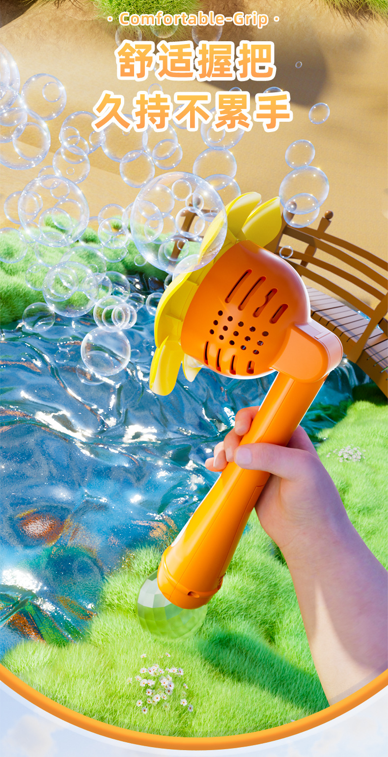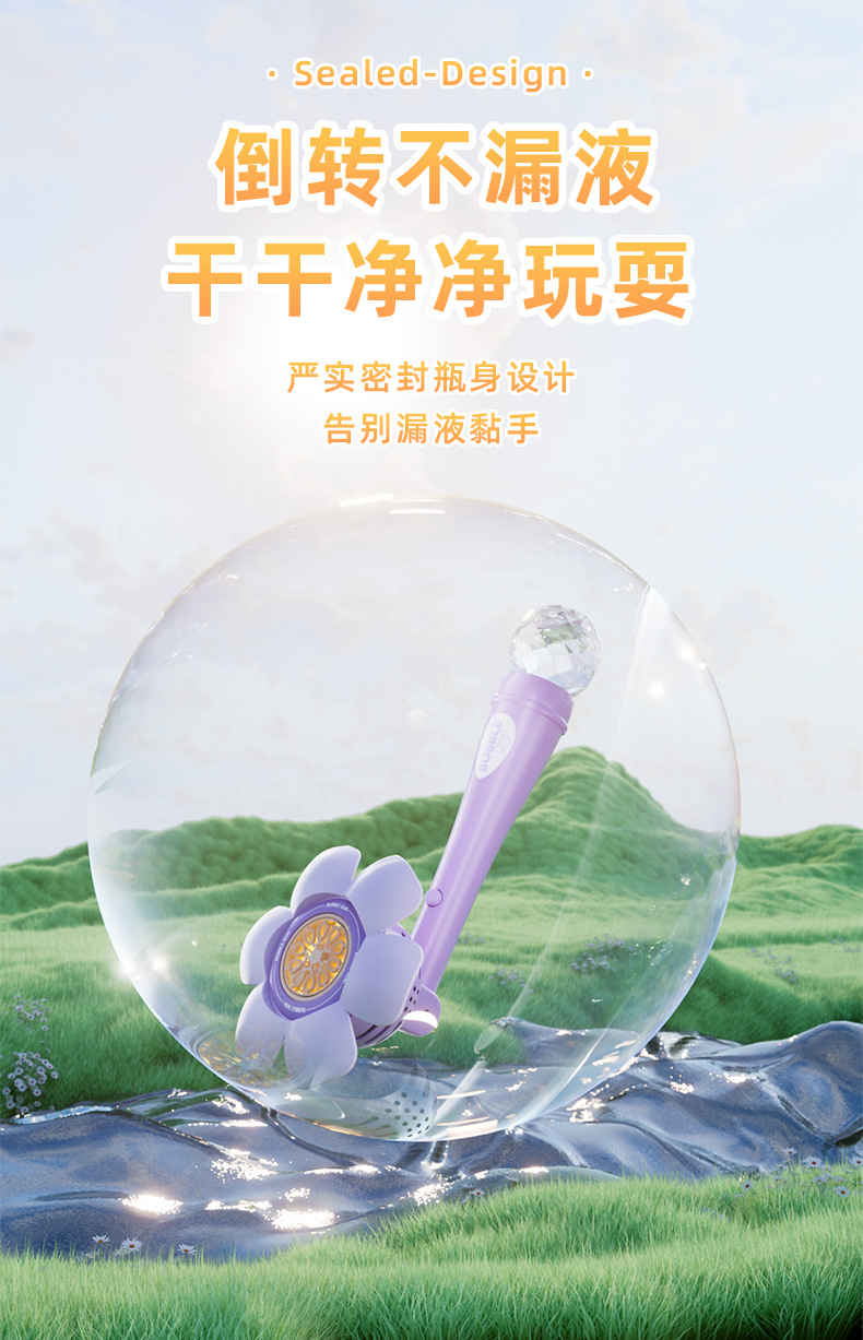 儿童新款全自动花朵泡泡机一键启动爆款手持不漏炫彩吹泡泡棒代发