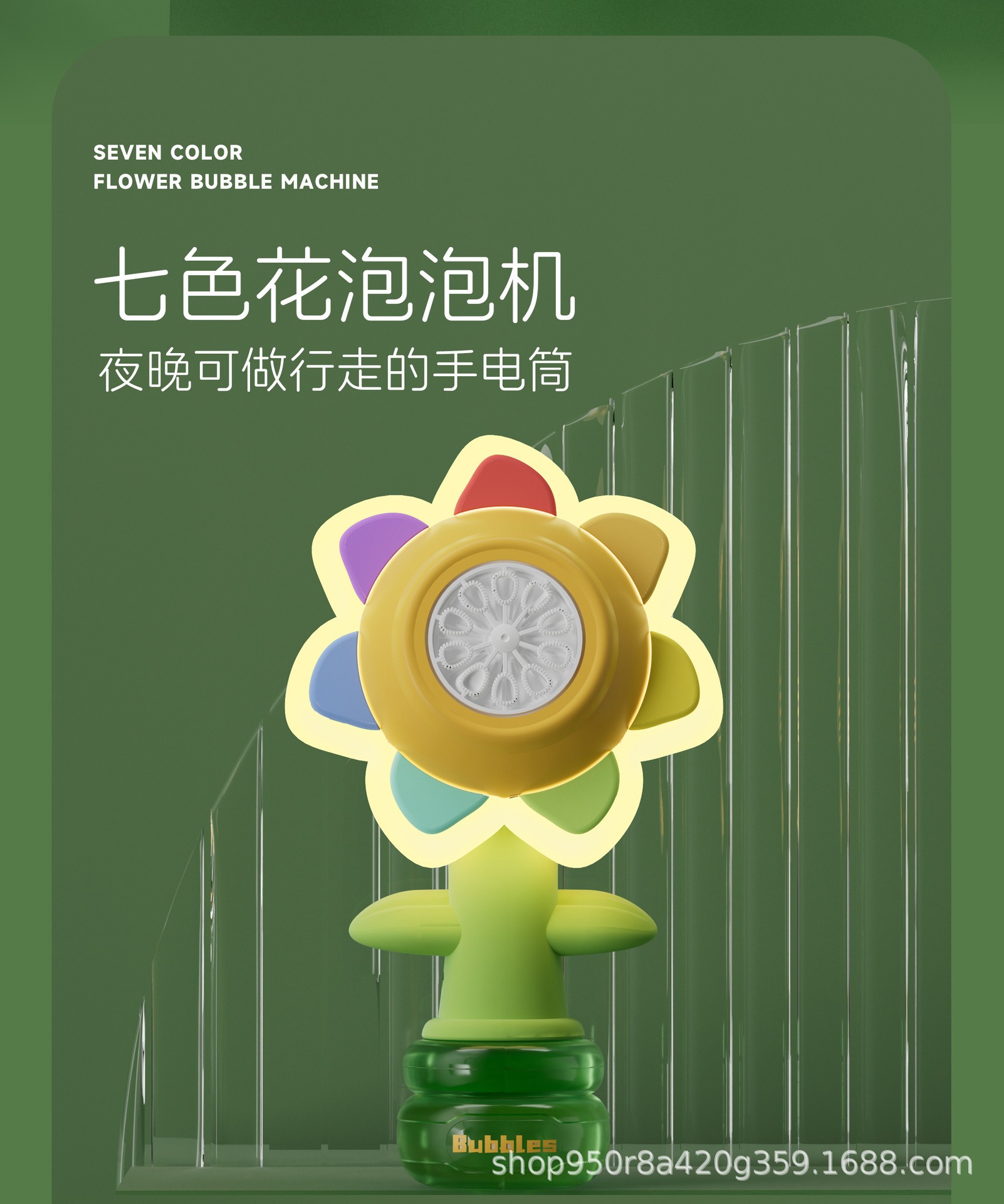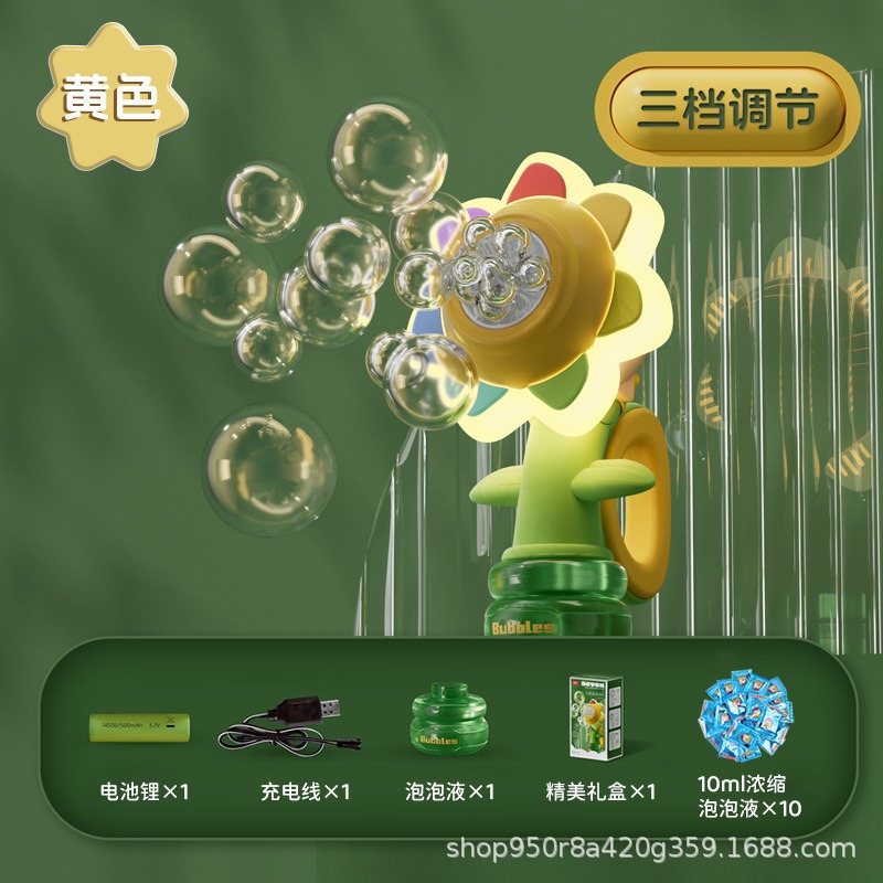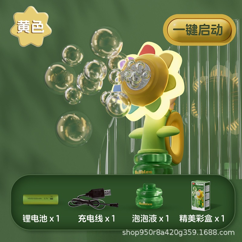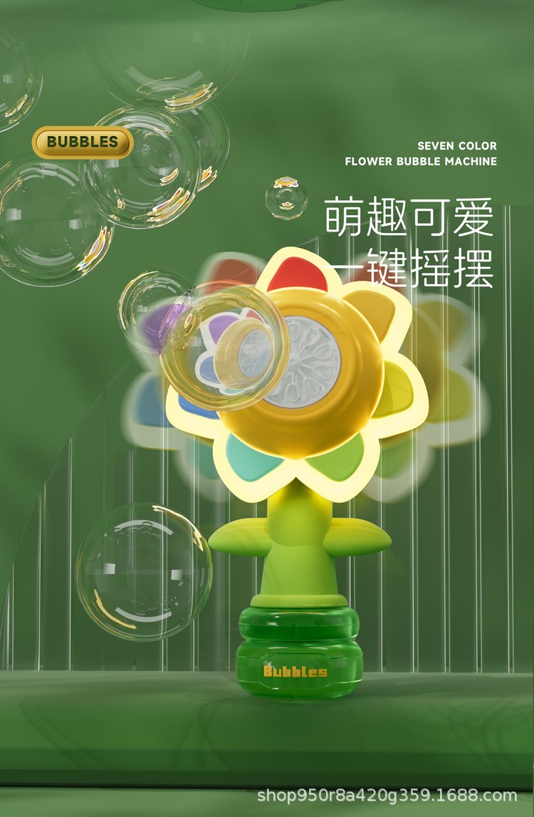 七色花摇头泡泡机向日葵全自动电动手持遥控泡泡棒六一儿童玩具