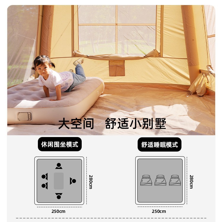 鹏远户外充气帐篷7㎡轻奢露营防雨过夜防风便携式保暖大型免搭建