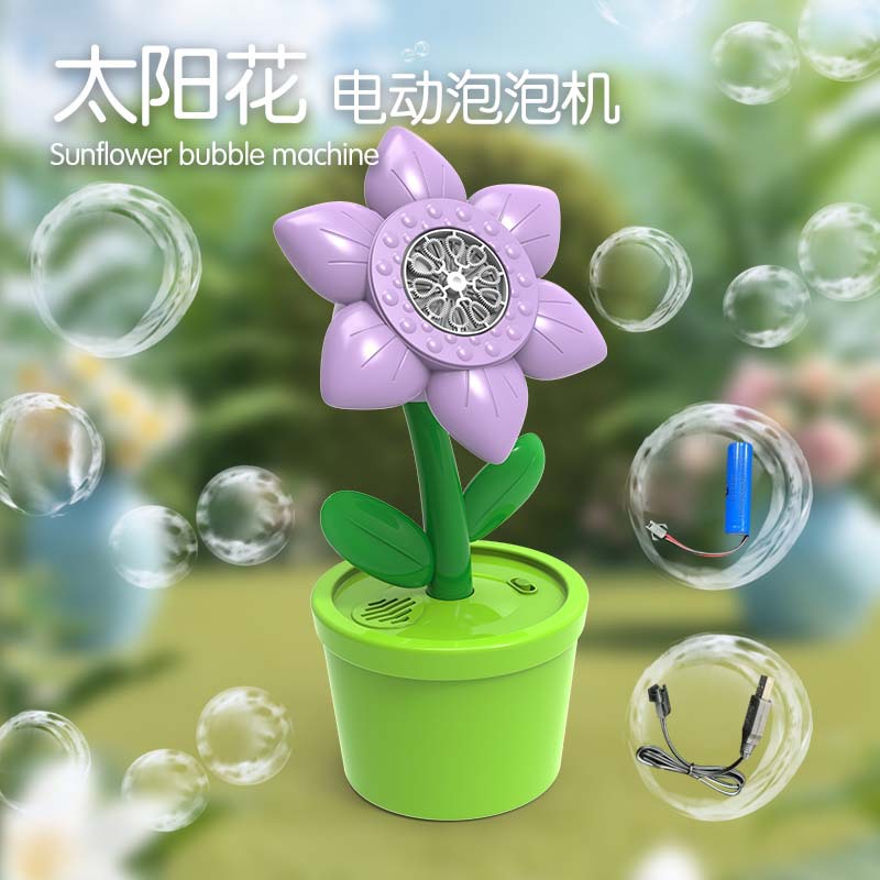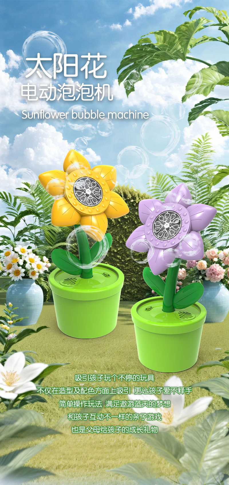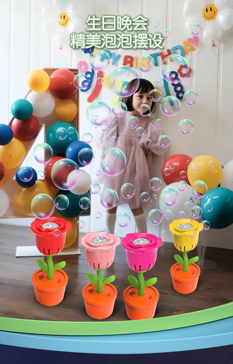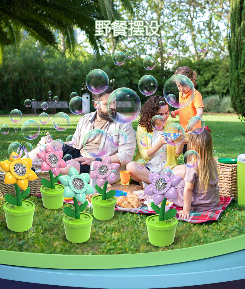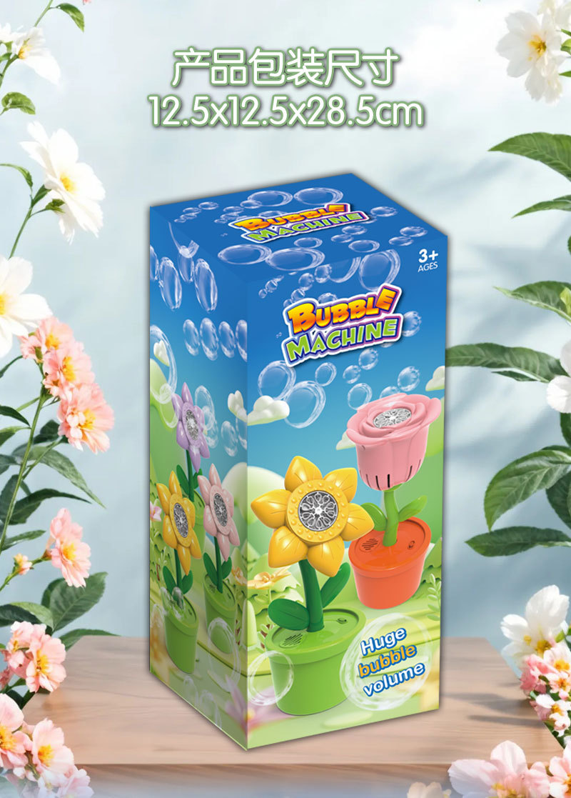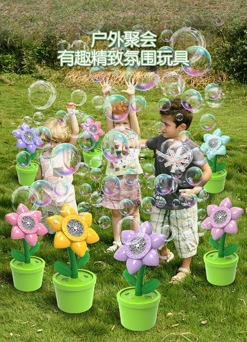 跨境全自动玫瑰花向日葵路灯泡泡机带声光音乐吹泡泡儿童户外玩具
