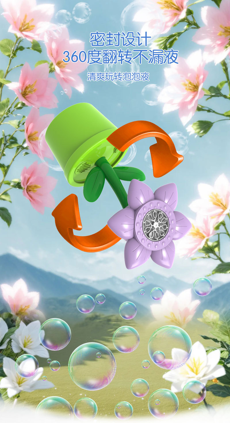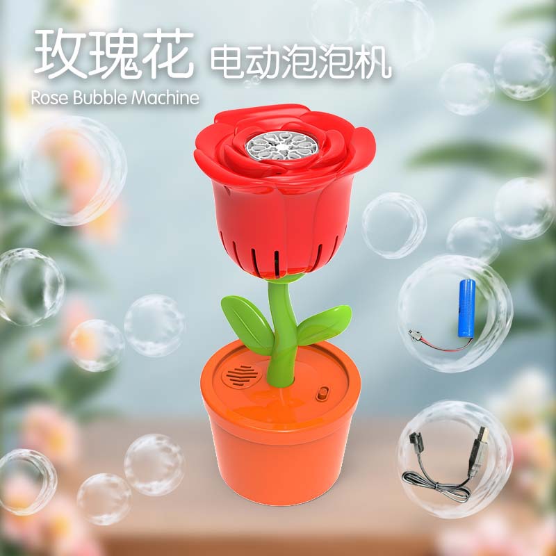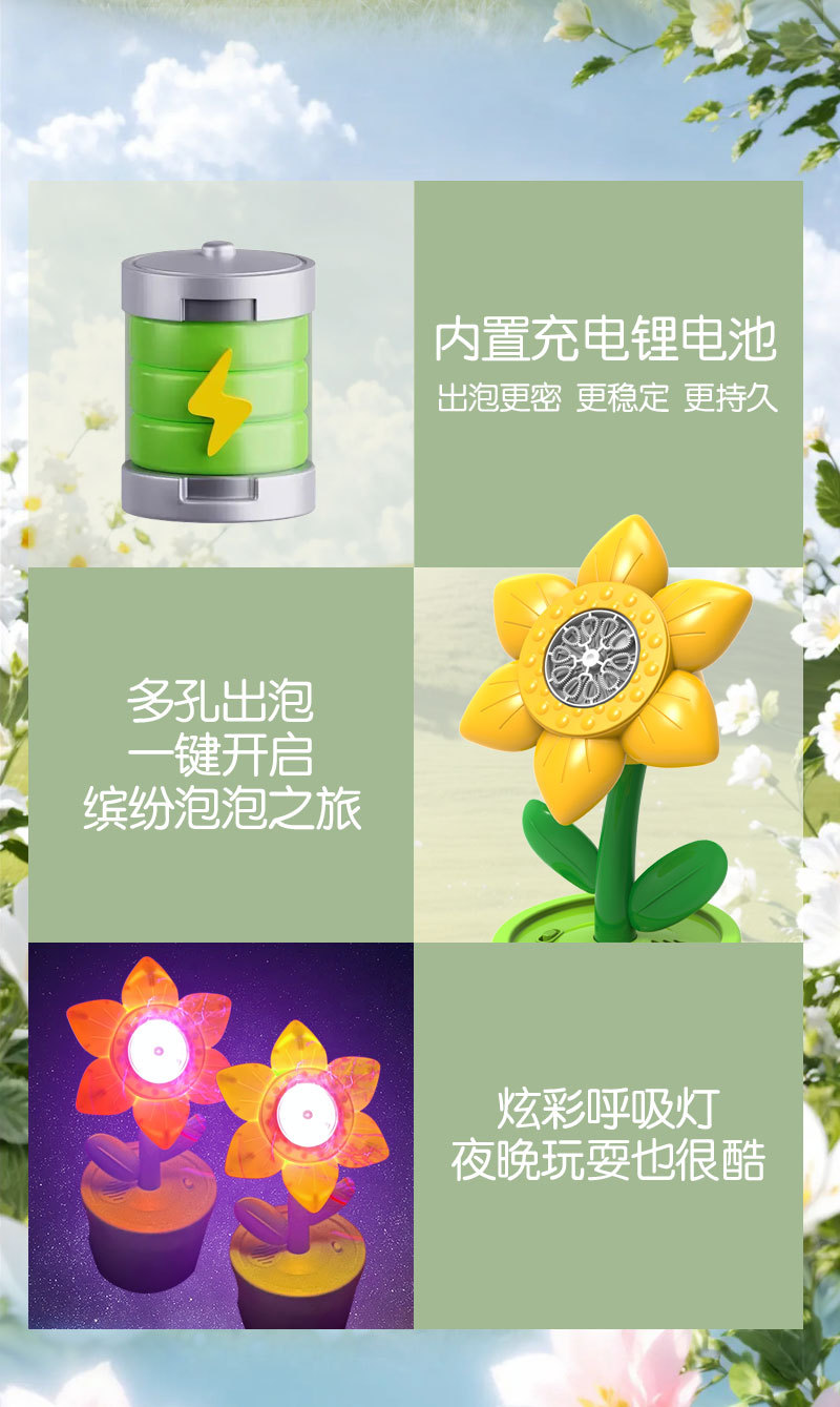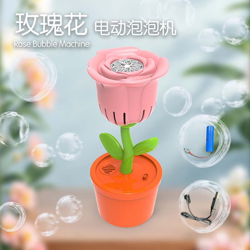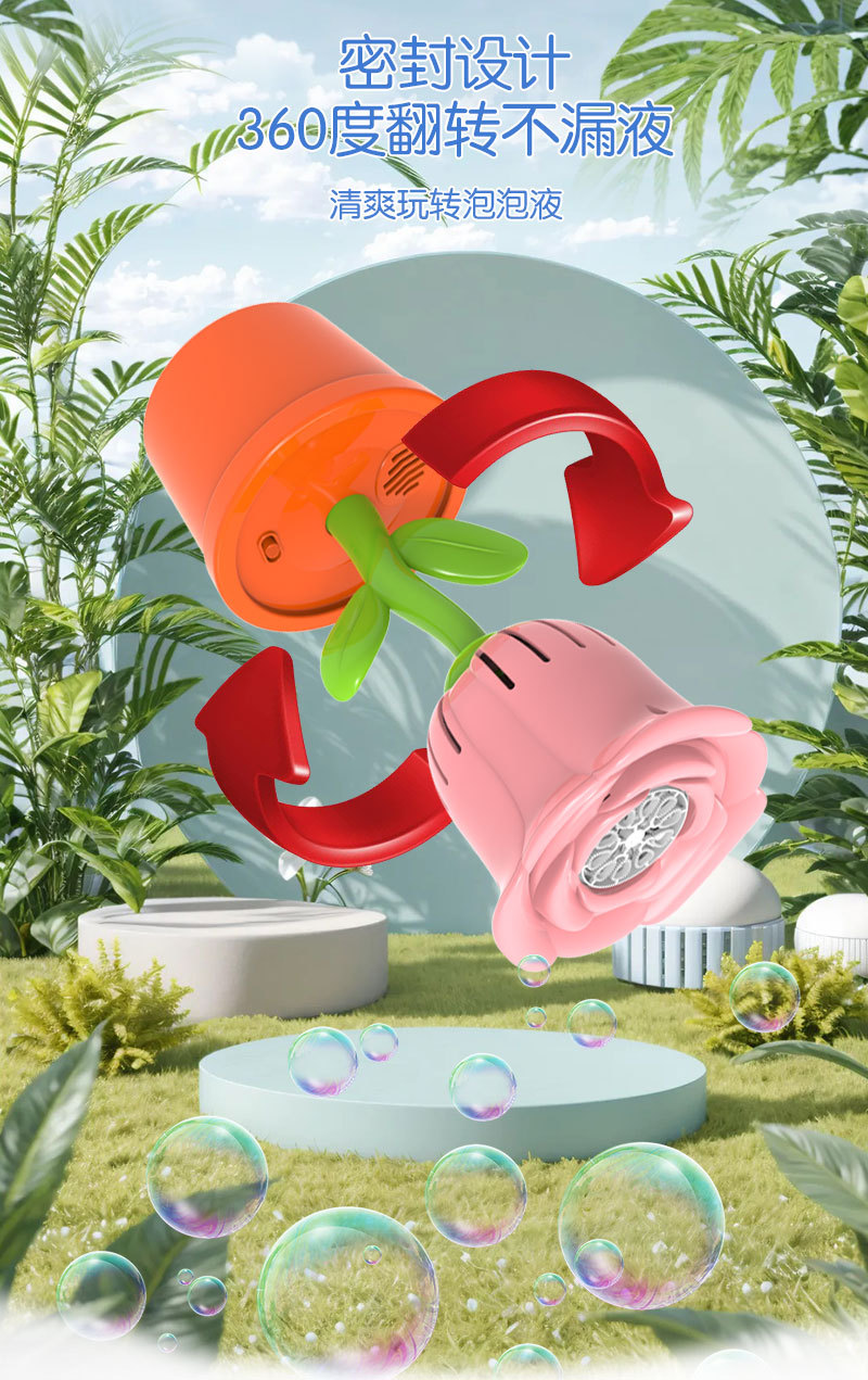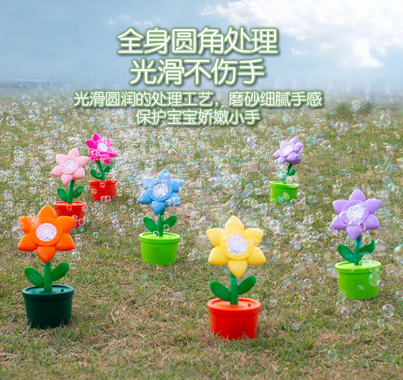 跨境全自动玫瑰花向日葵路灯泡泡机带声光音乐吹泡泡儿童户外玩具