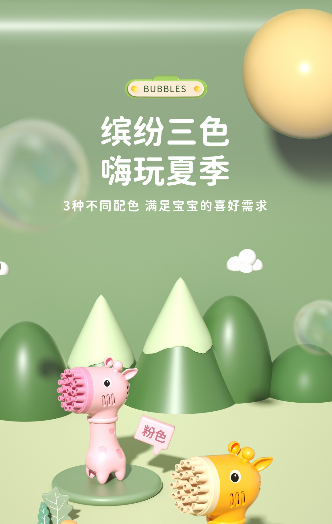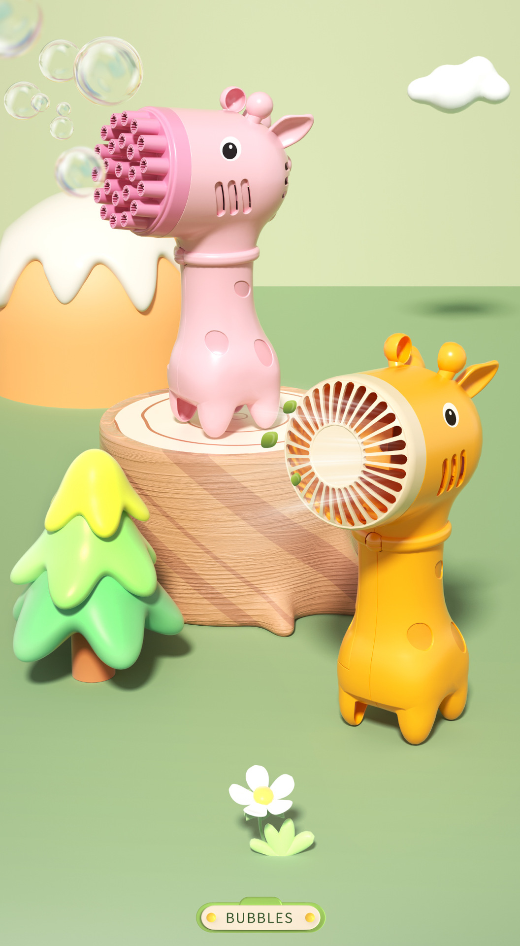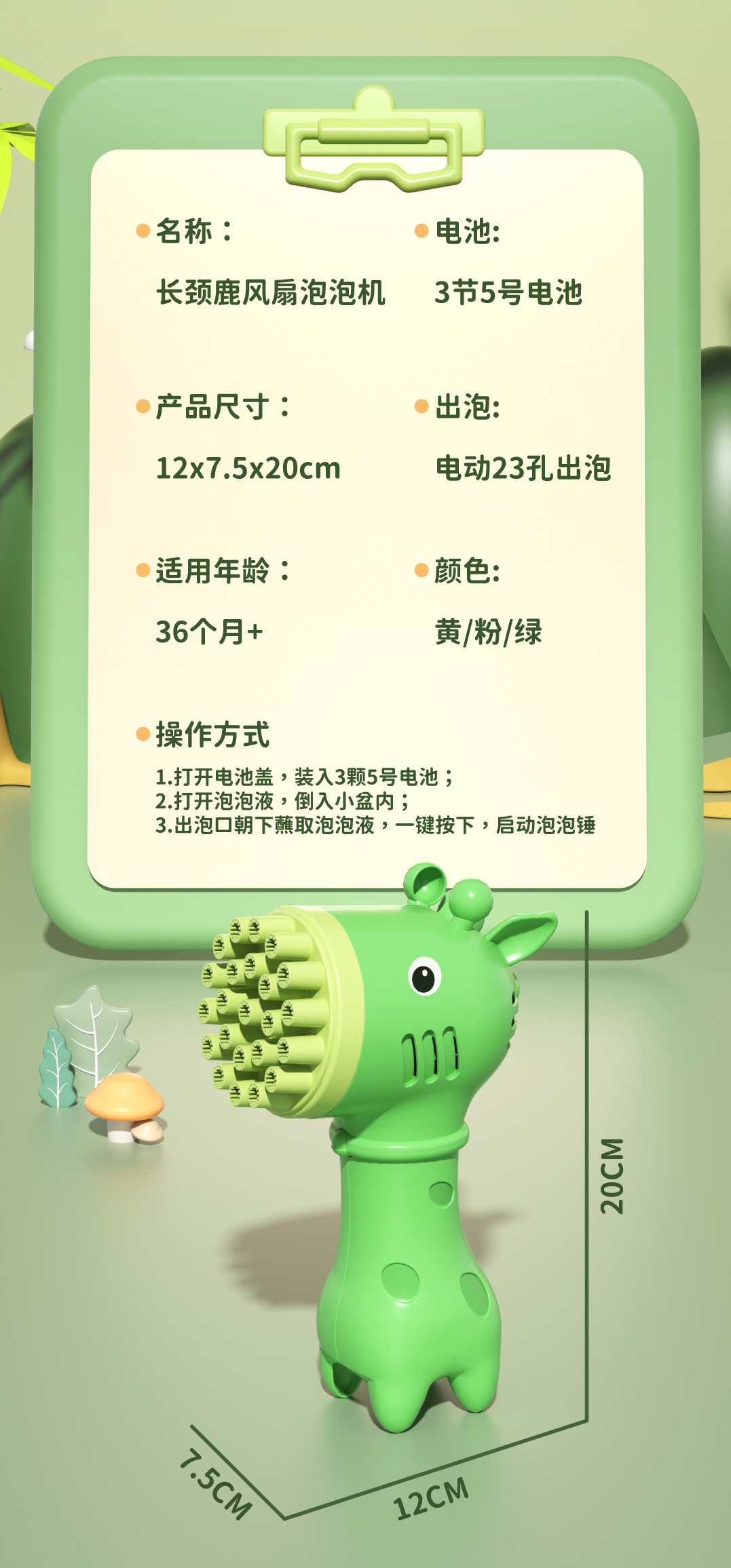 新款长颈鹿泡泡机地摊批发网红爆款二合一电动风扇泡泡枪玩具代发
