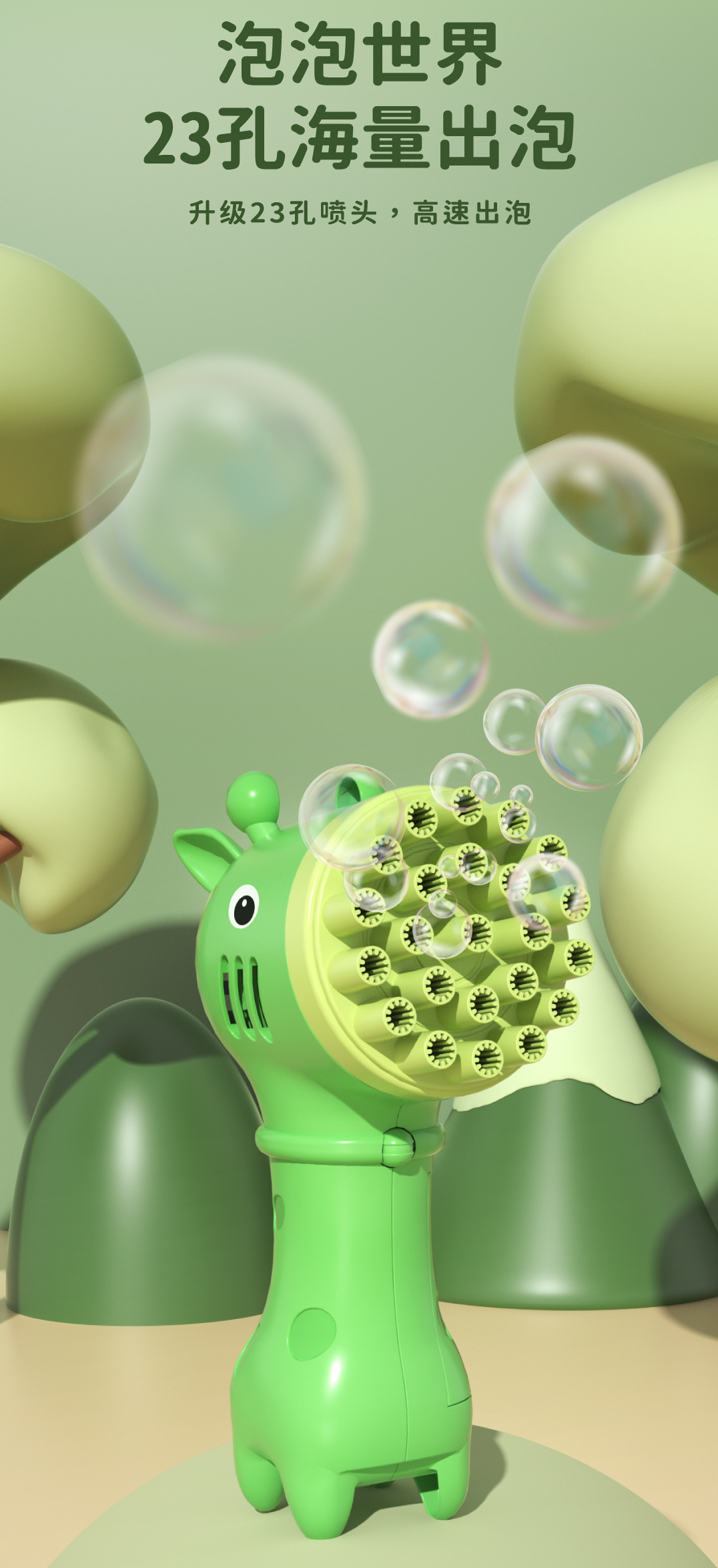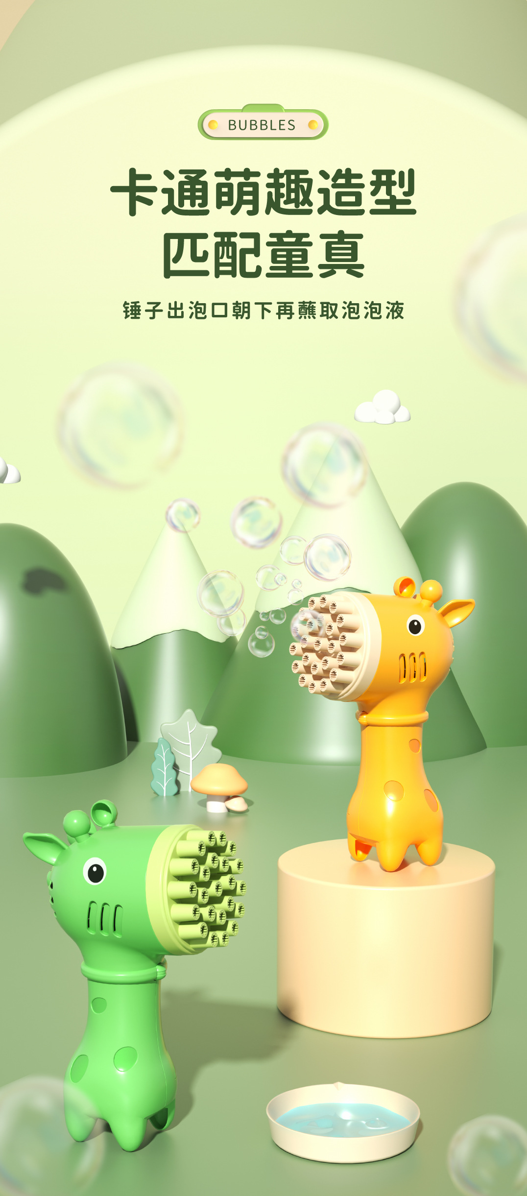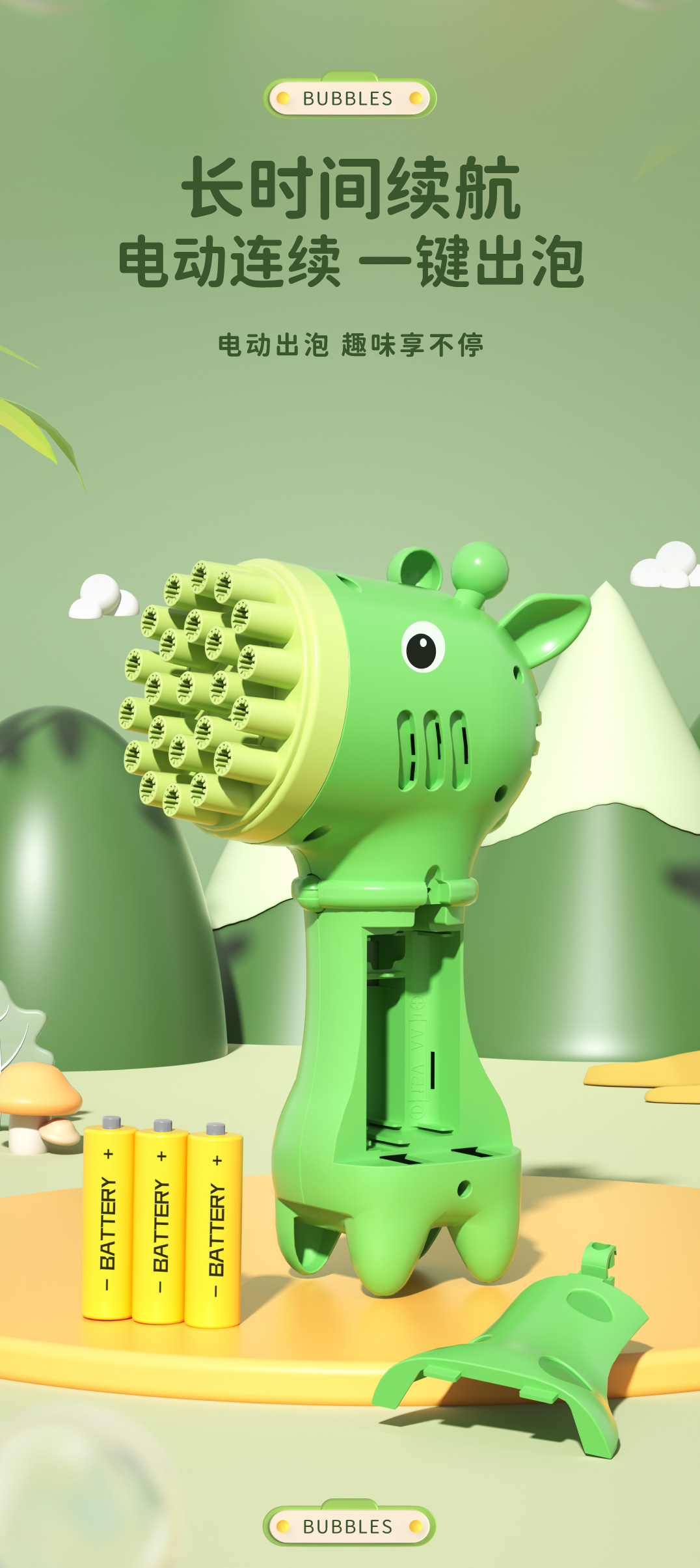 新款长颈鹿泡泡机地摊批发网红爆款二合一电动风扇泡泡枪玩具代发