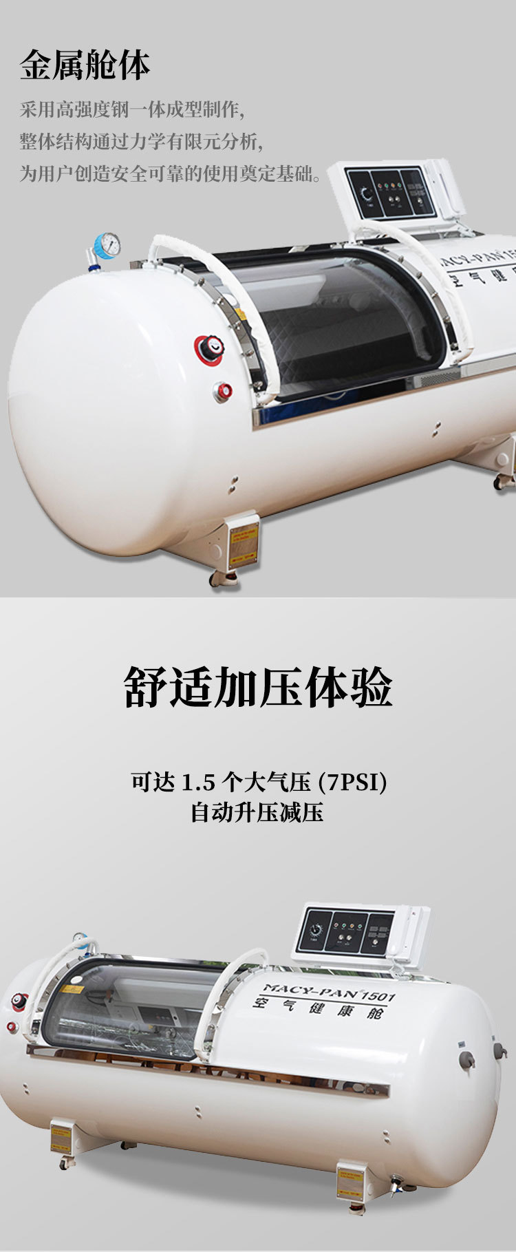 MACY-PAN硬体坐卧式微高压氧舱 养生保健高原高压氧气舱美容抗衰