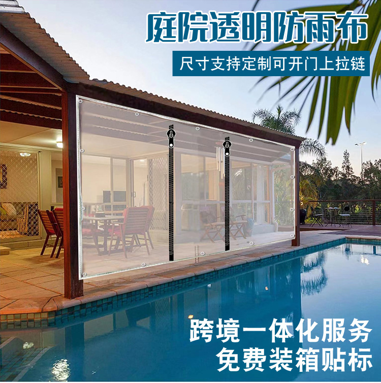 跨境透明雨布拉链庭院防风挡雨塑料围布工厂亚马逊国际站一件代发