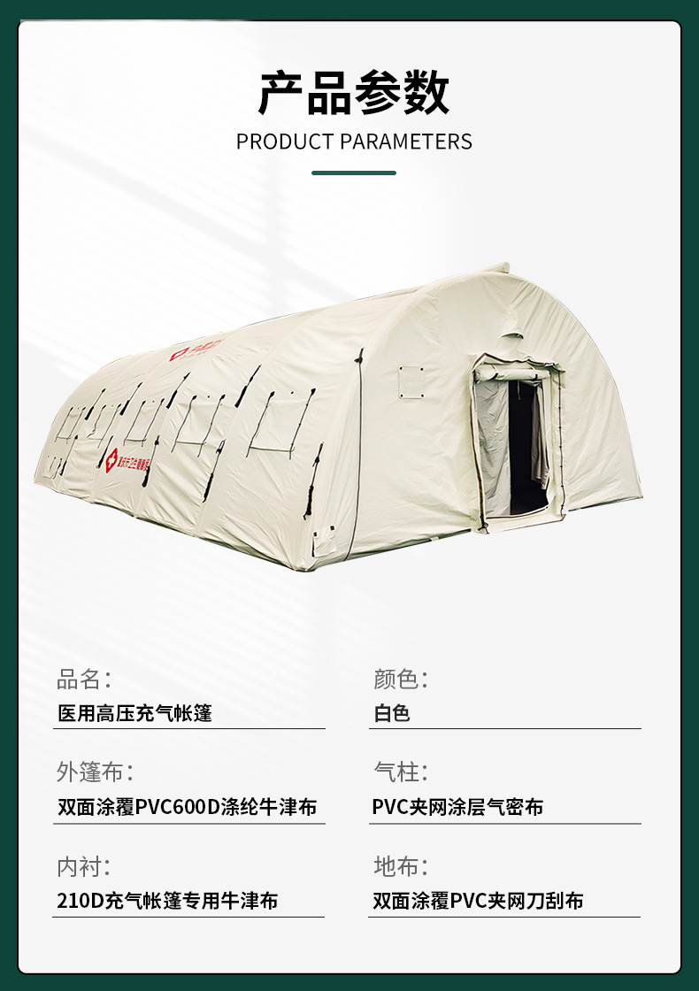 京路发户外白色三层卫生帐篷速开救援屋脊高压弧形顶充气帐篷