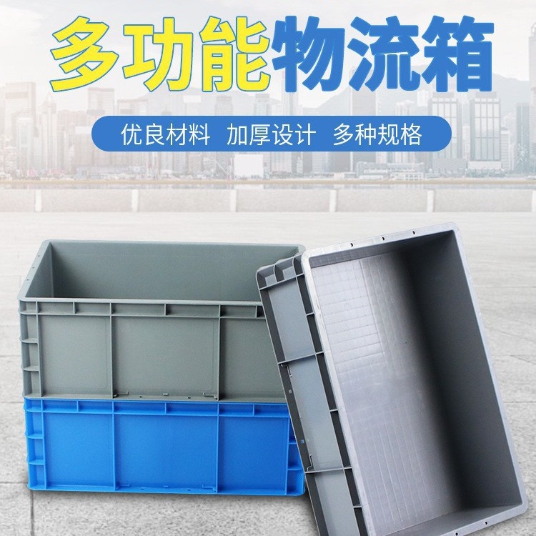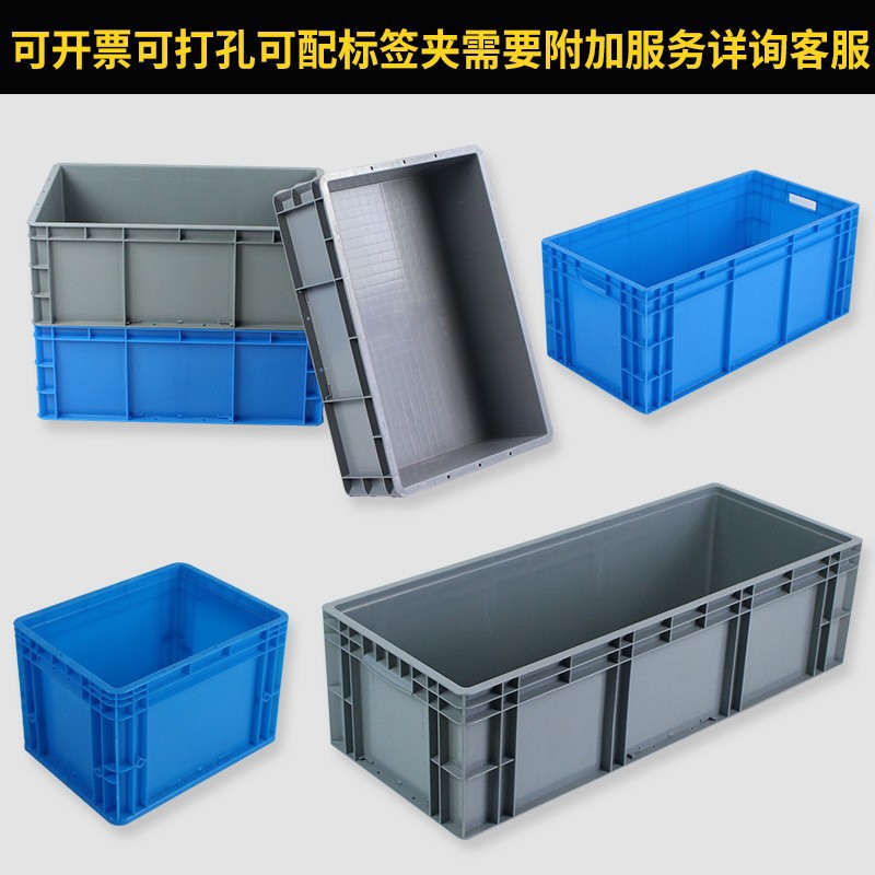 EU物流箱超大批发汽配加厚烟箱工业零件塑料周转箱蓝色灰色带盖