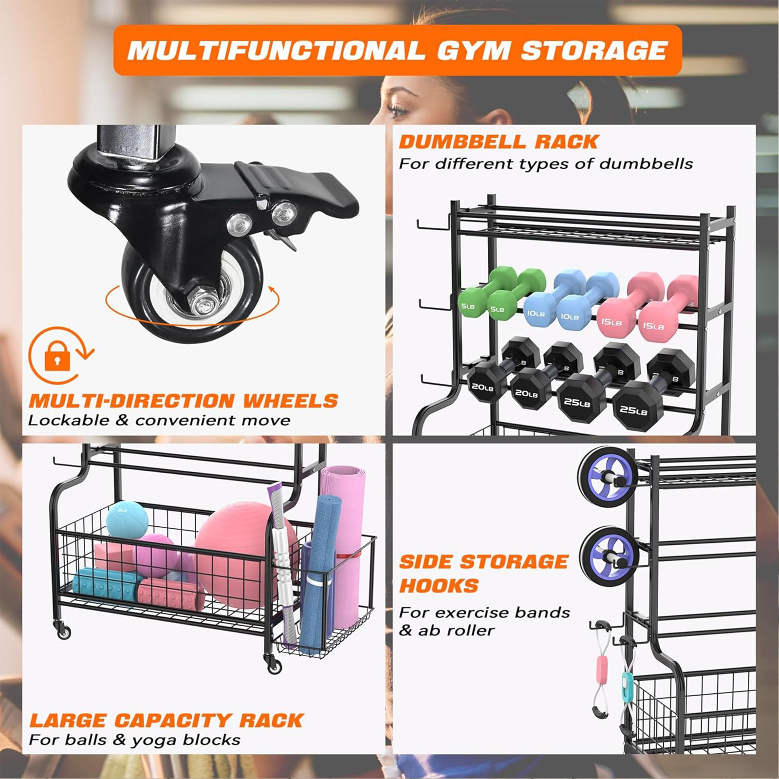 跨境体育用品收纳架瑜伽垫篮球置物哑铃运动健身储物支架