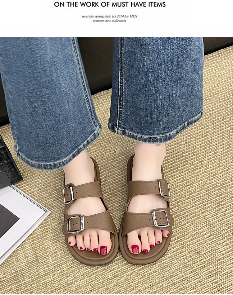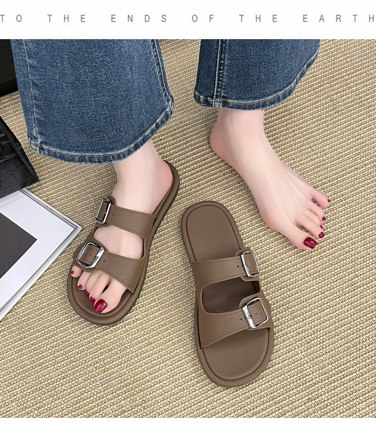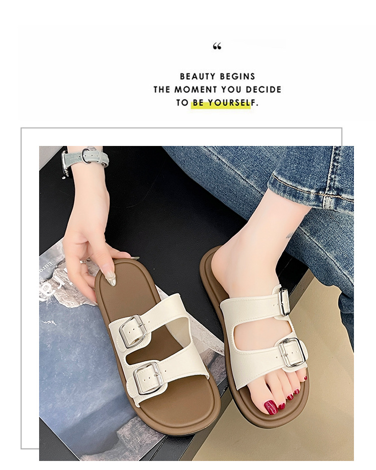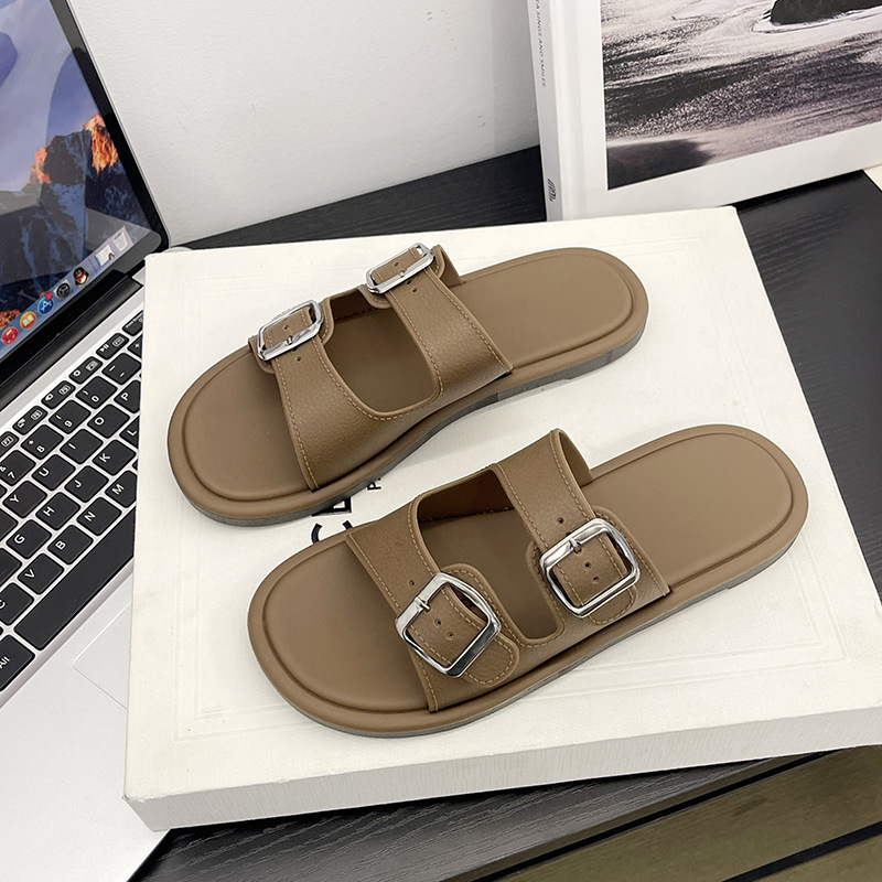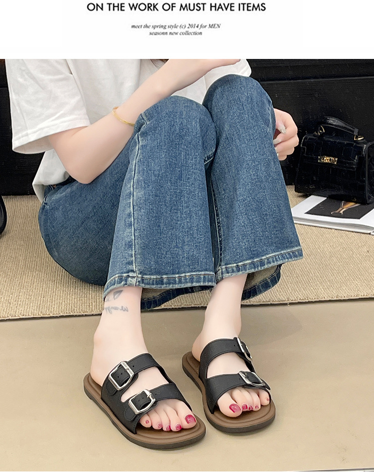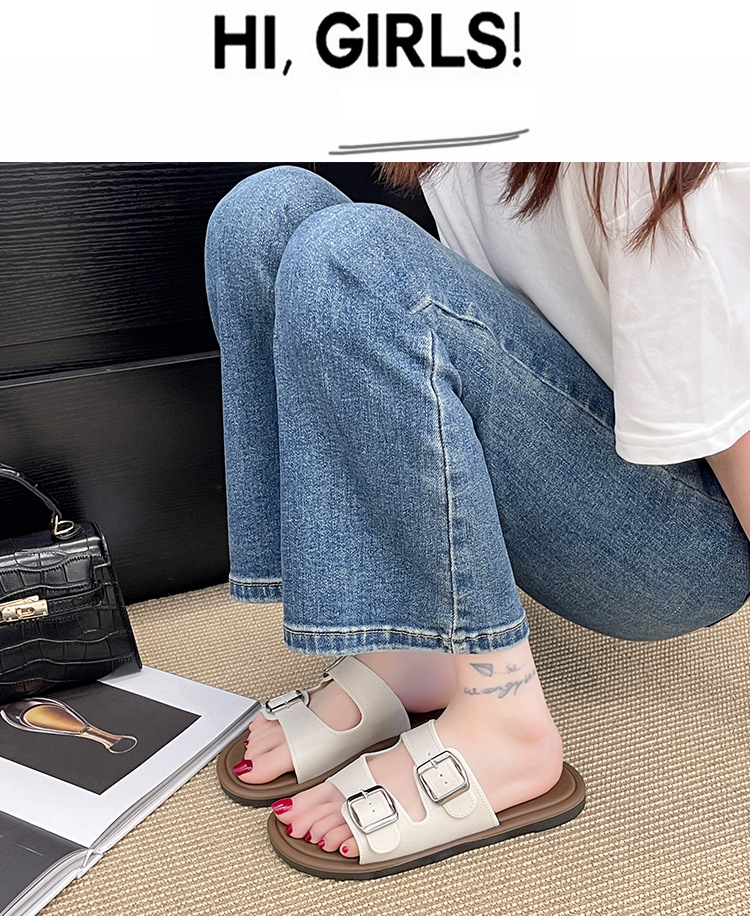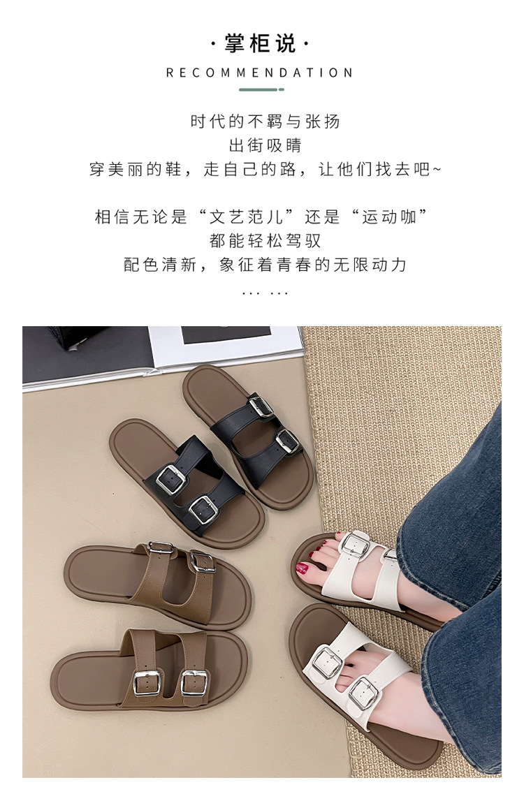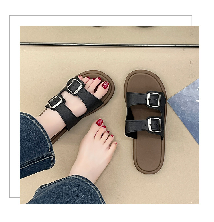 凉拖鞋女夏季新款时尚百搭方扣网红一字拖居家防滑浴室外穿沙滩鞋