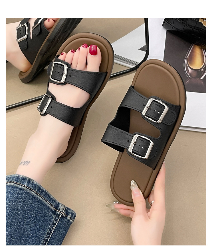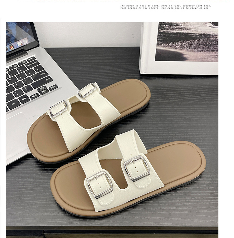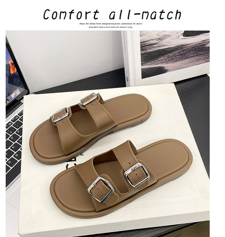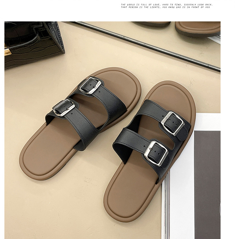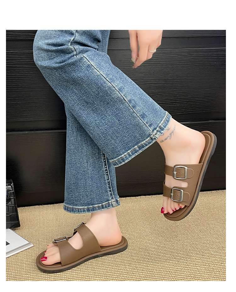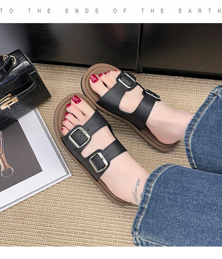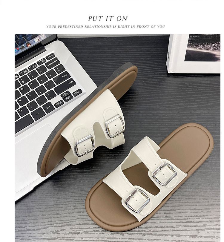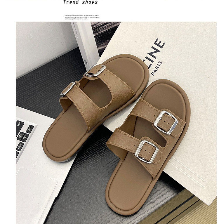 凉拖鞋女夏季新款时尚百搭方扣网红一字拖居家防滑浴室外穿沙滩鞋