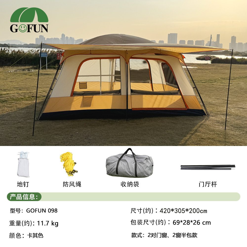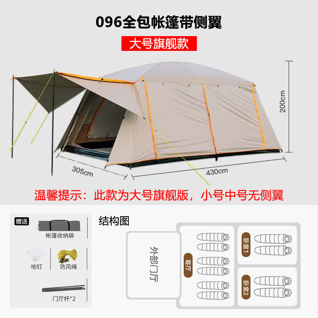 096全系列户外帐篷二室一厅折叠便携式防晒防水3-12人露营大帐篷