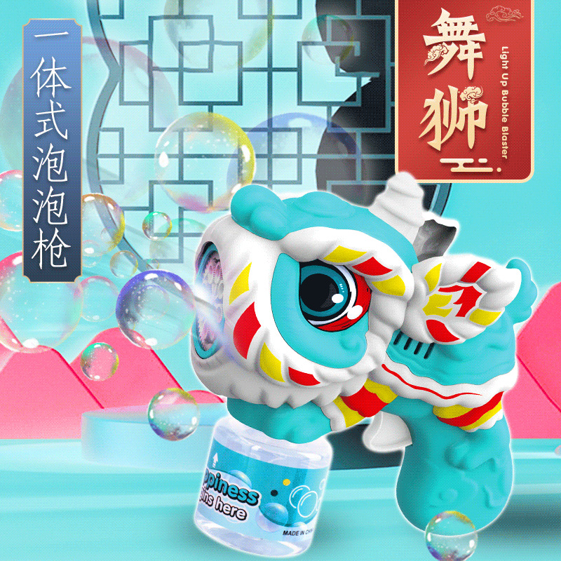 国潮醒狮泡泡枪少女心泡泡机灯光舞狮加特林泡泡景区圣诞儿童玩具