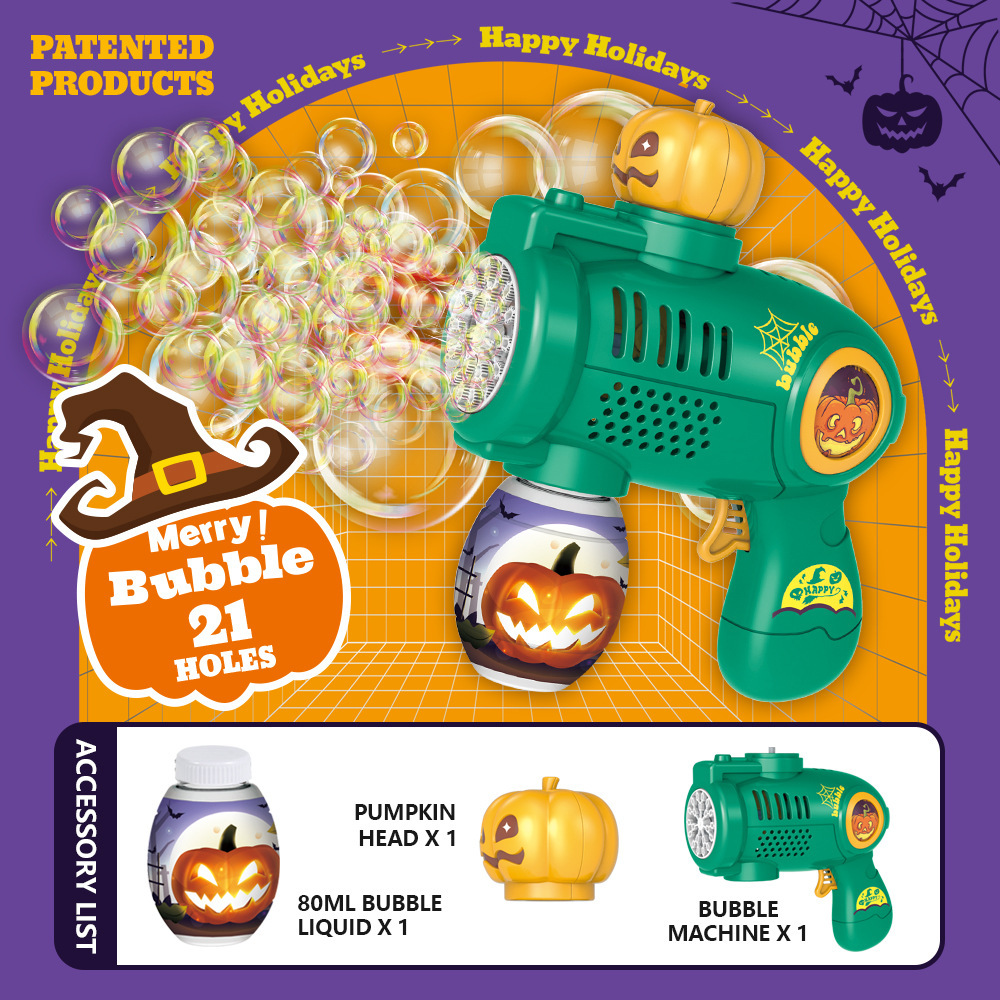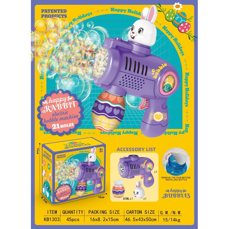 跨境新款萌兔泡泡机全自动灯光旋转儿童手持复活节泡泡机玩具批发