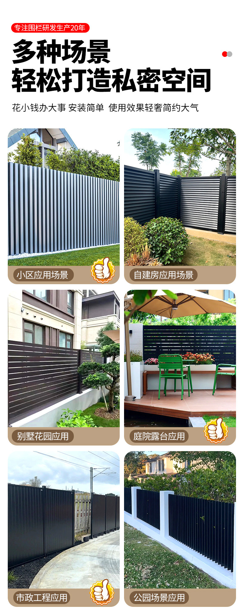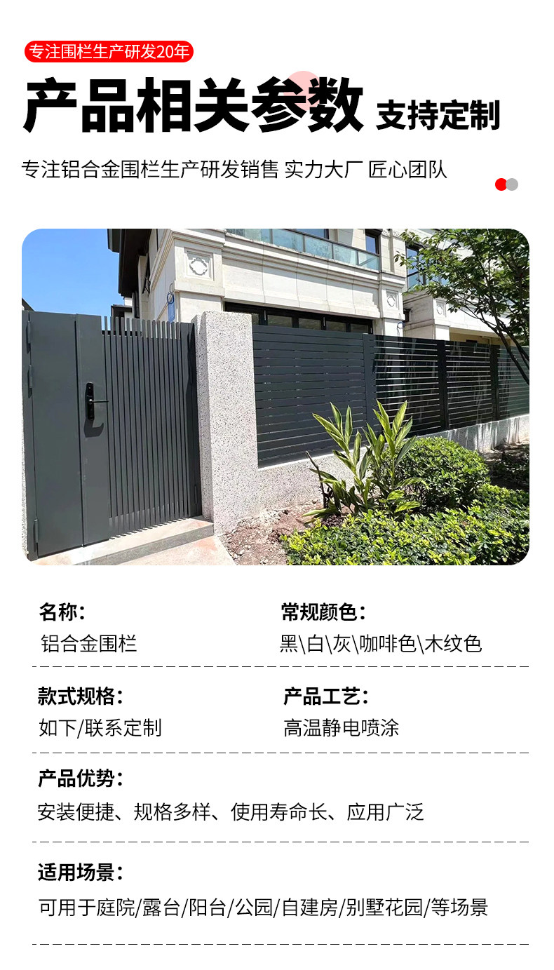铝合金围栏庭院护栏别墅小院子栏杆户外围墙栅栏阳台铝艺铁艺围挡