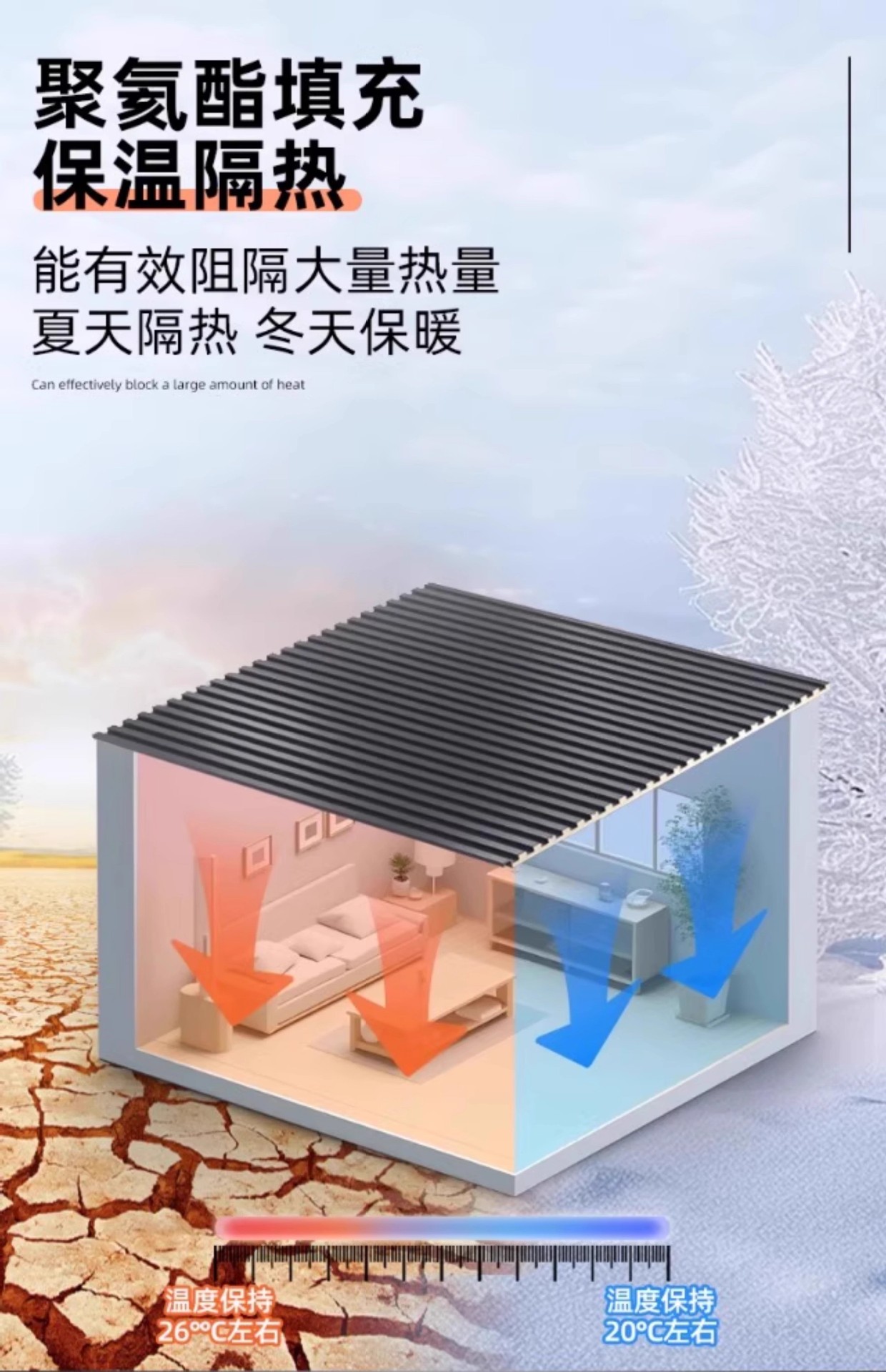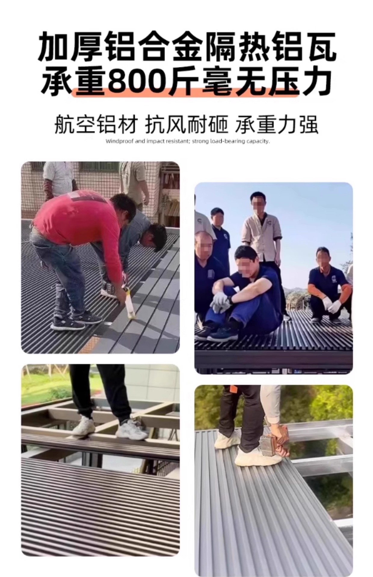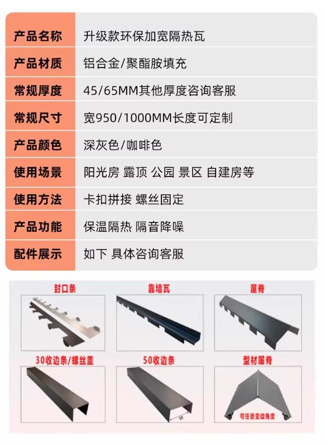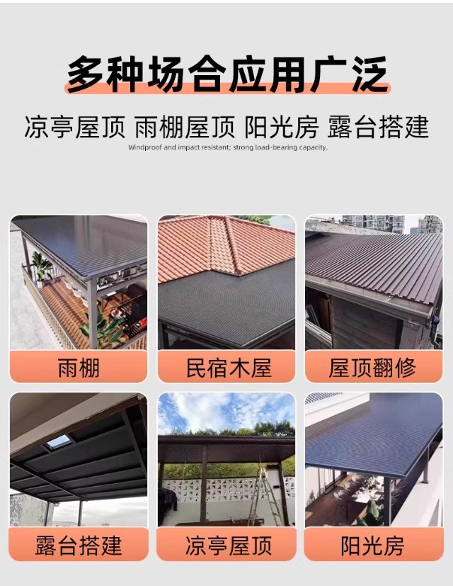长城隔热铝瓦大板双层屋顶盖板铝合金盖瓦聚氨酯铝板格栅板阳光房
