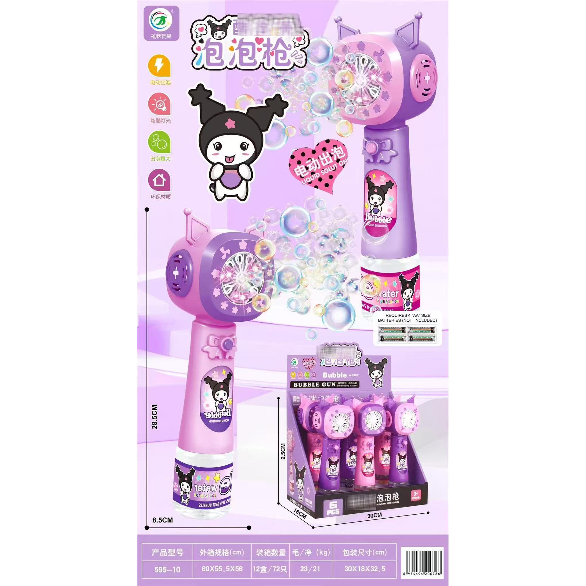 跨境酷洛迷手持电动泡泡棒泡泡机棒男女孩儿童玩具夜市摆摊批发