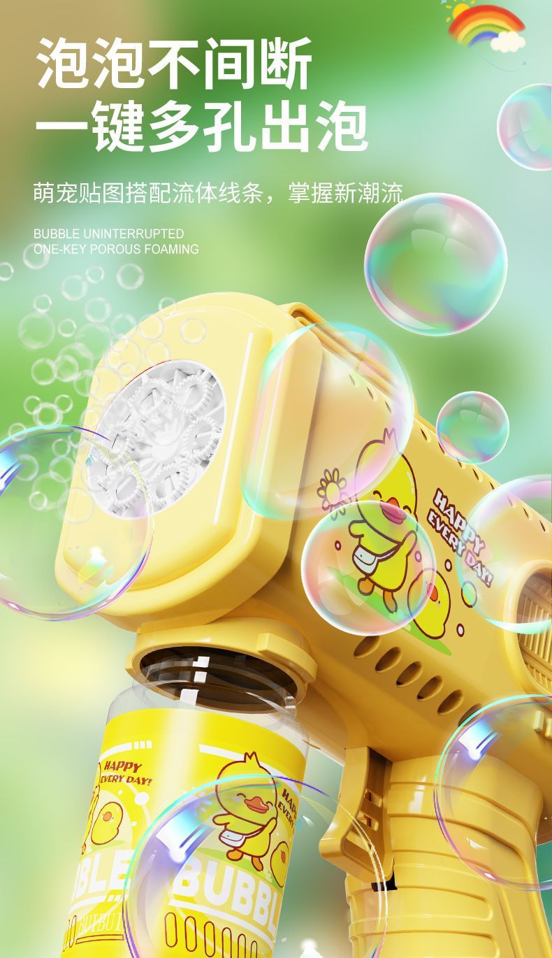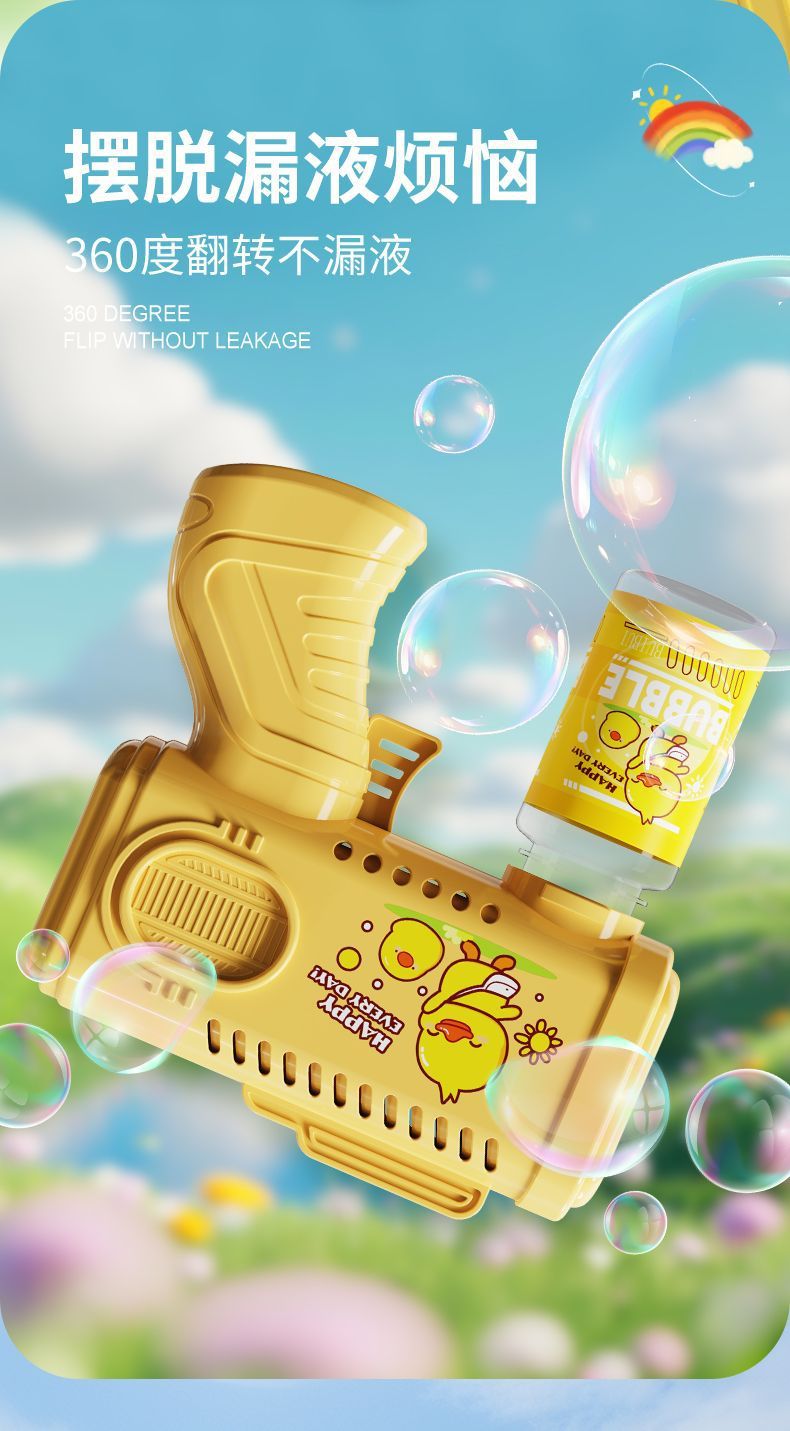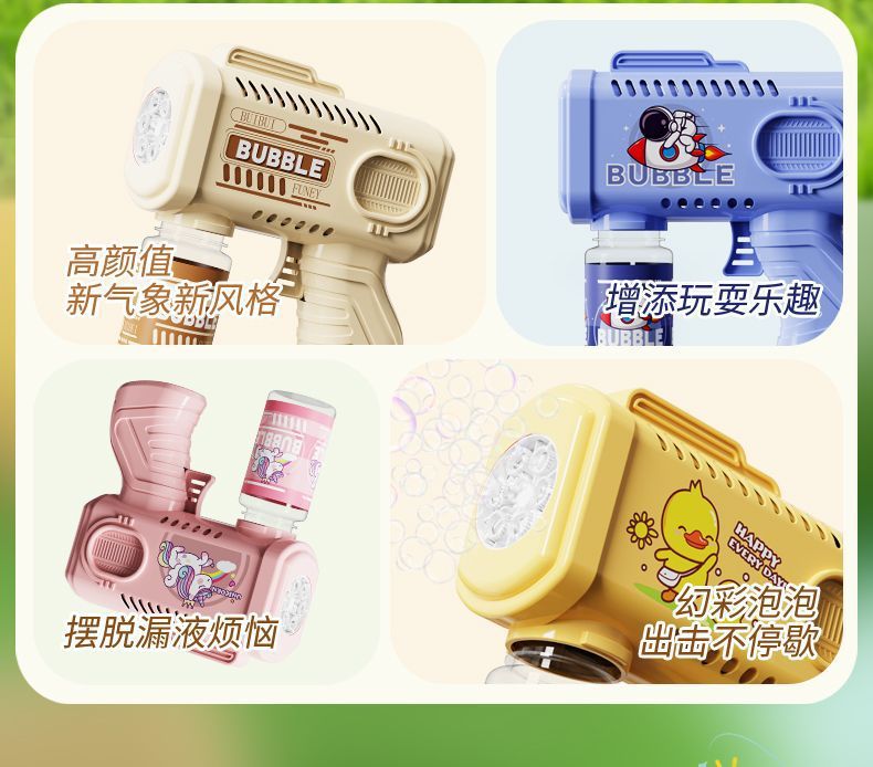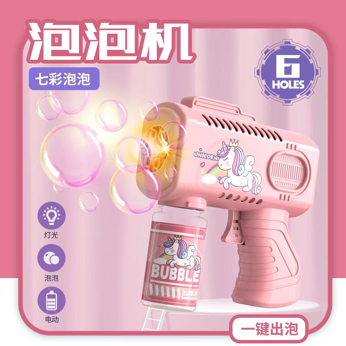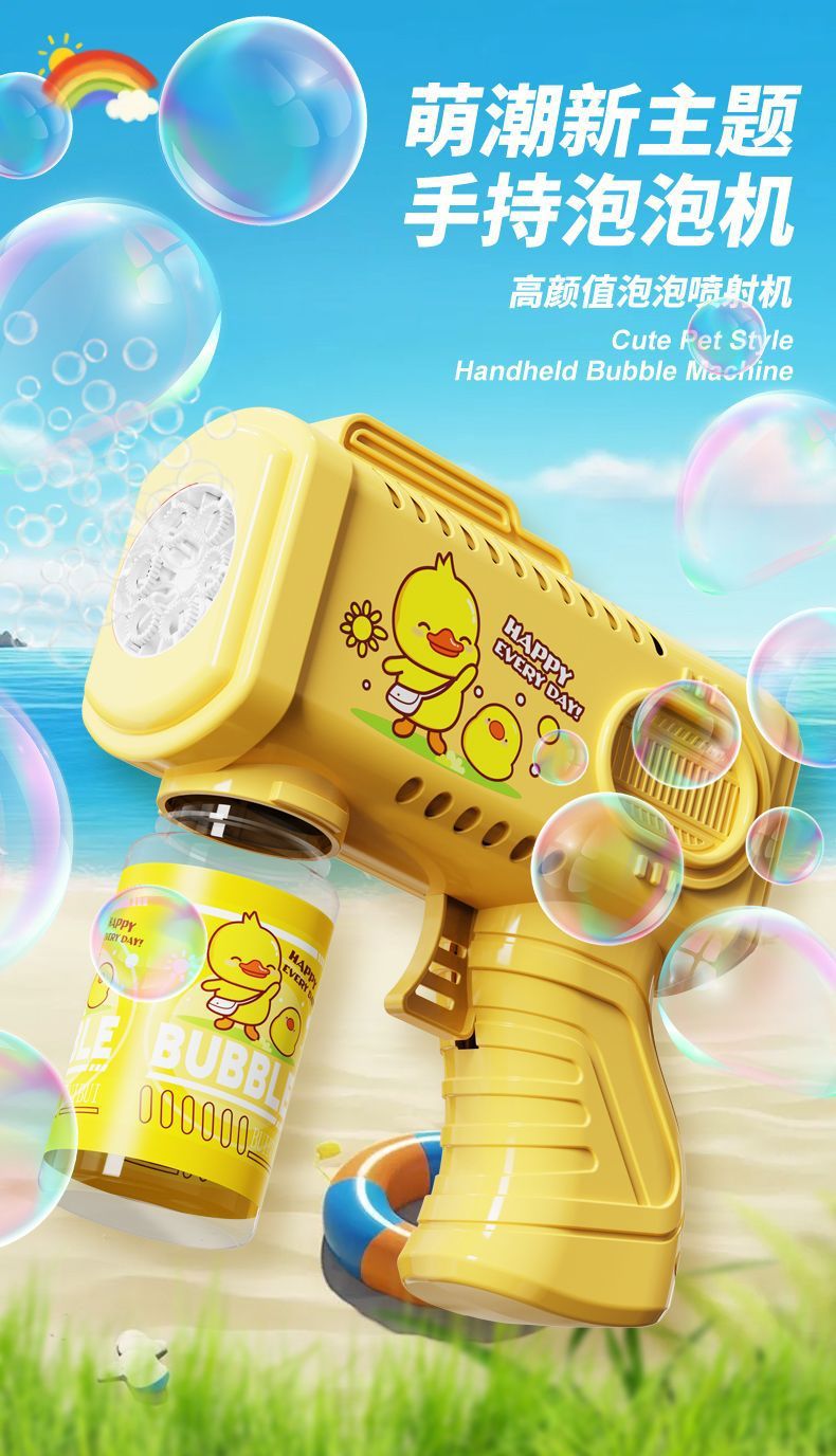 新款手持自动泡泡枪卡通男女孩泡泡机带电灯光不漏液玩具跨境批发
