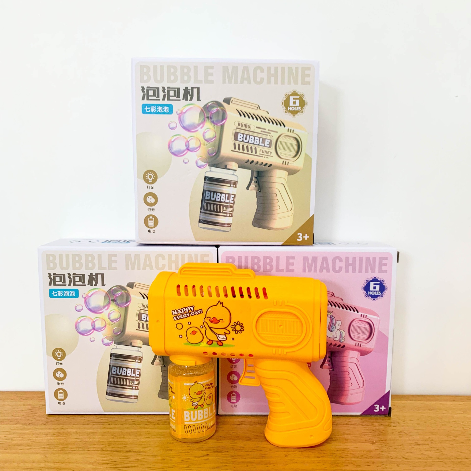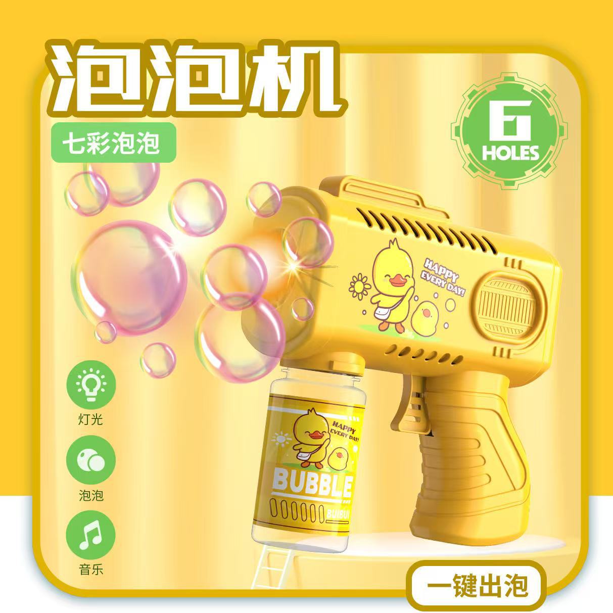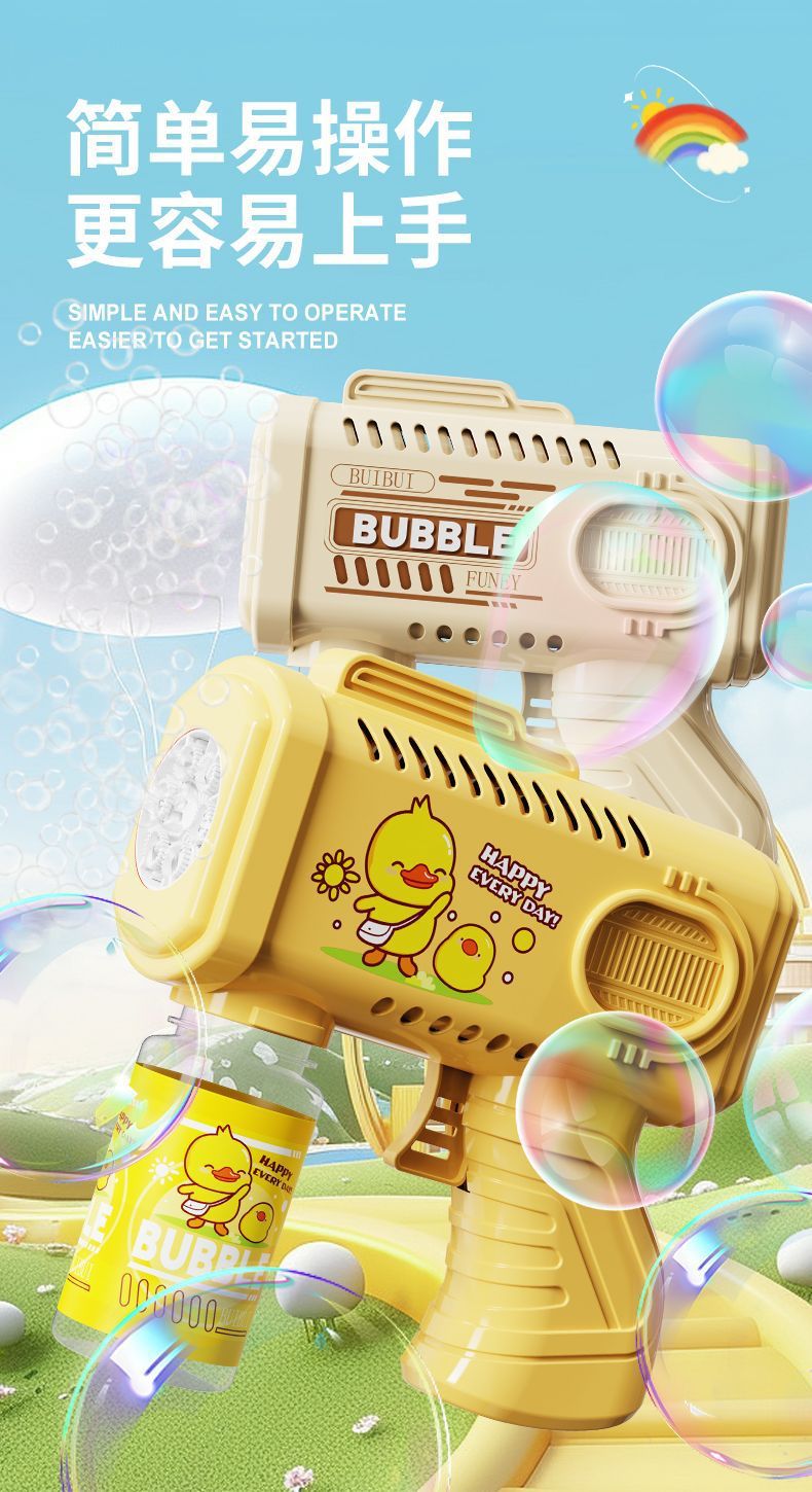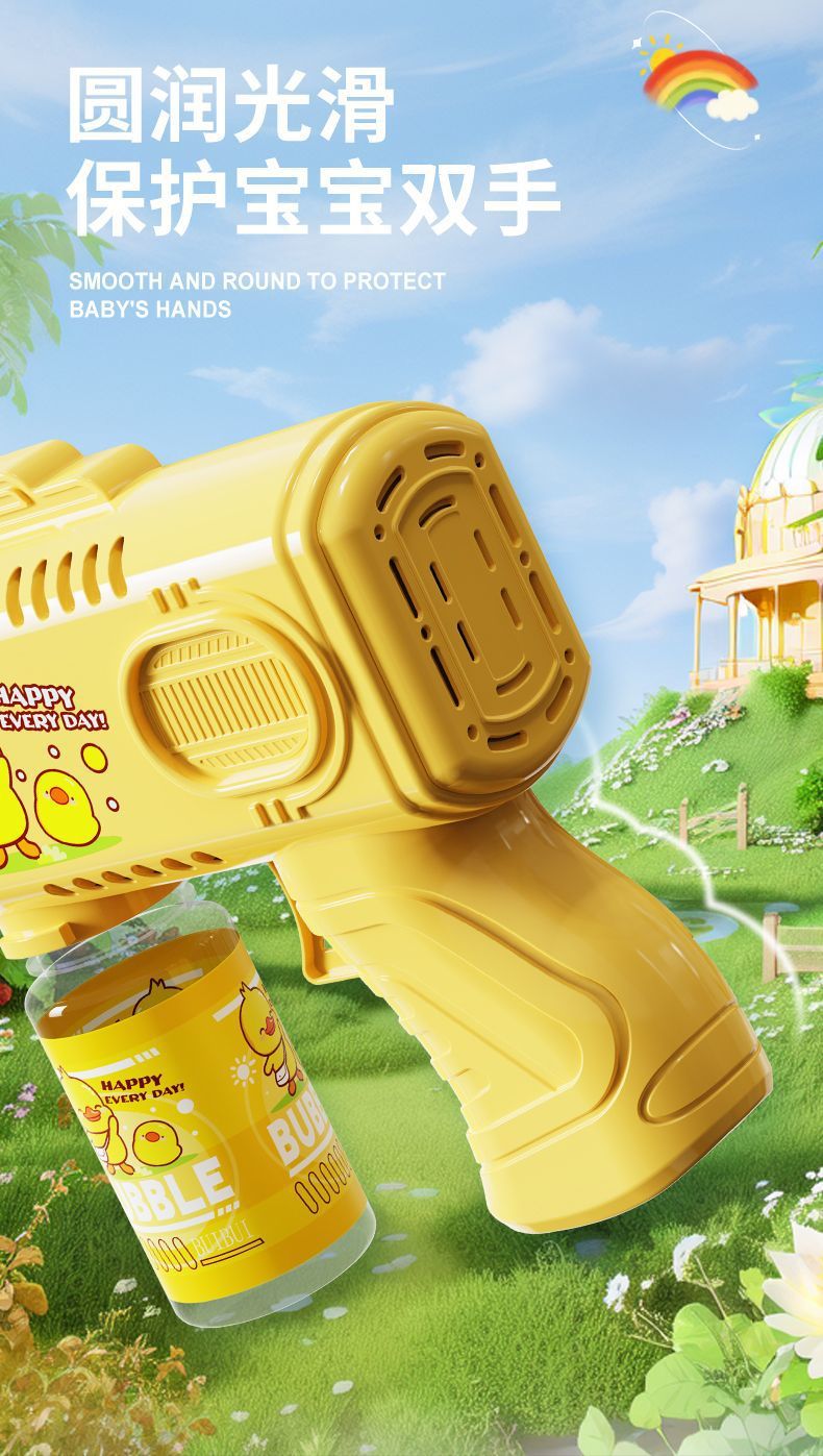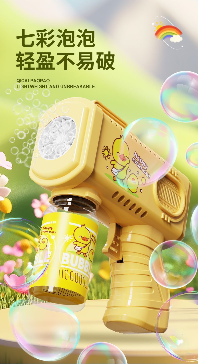 新款手持自动泡泡枪卡通男女孩泡泡机带电灯光不漏液玩具跨境批发