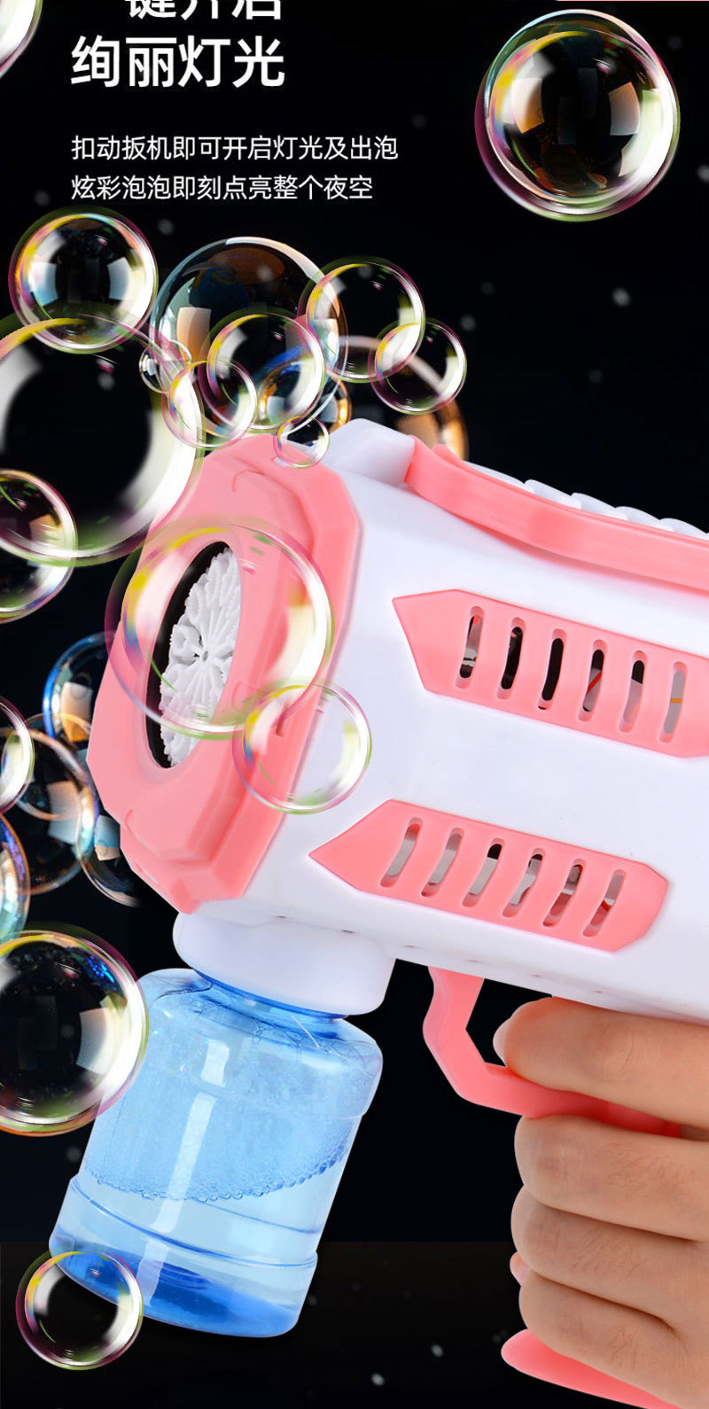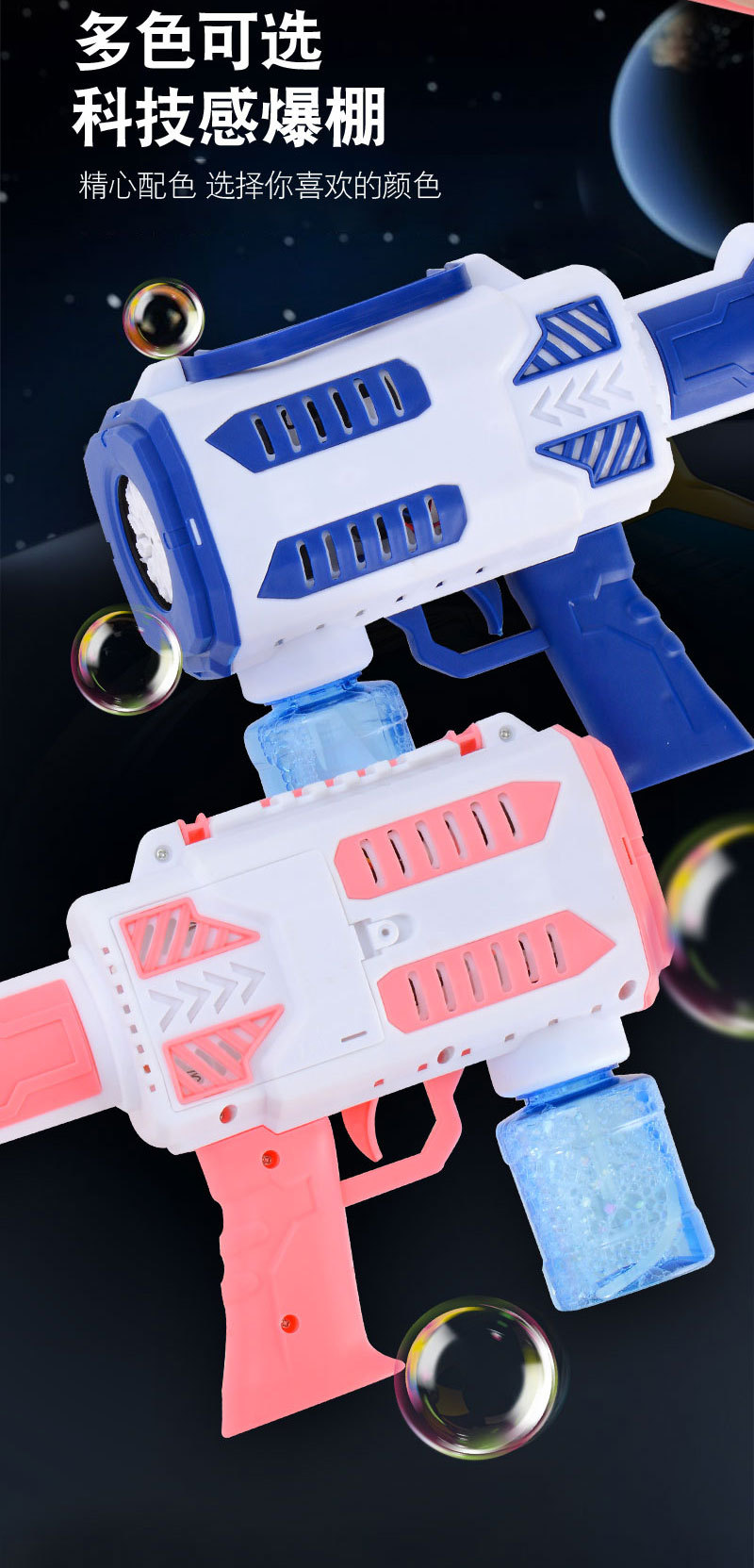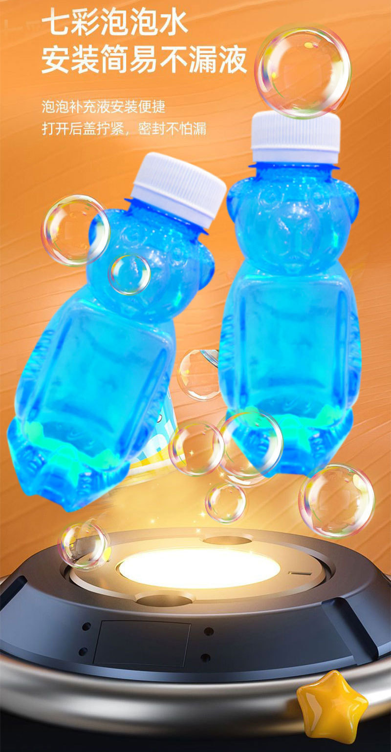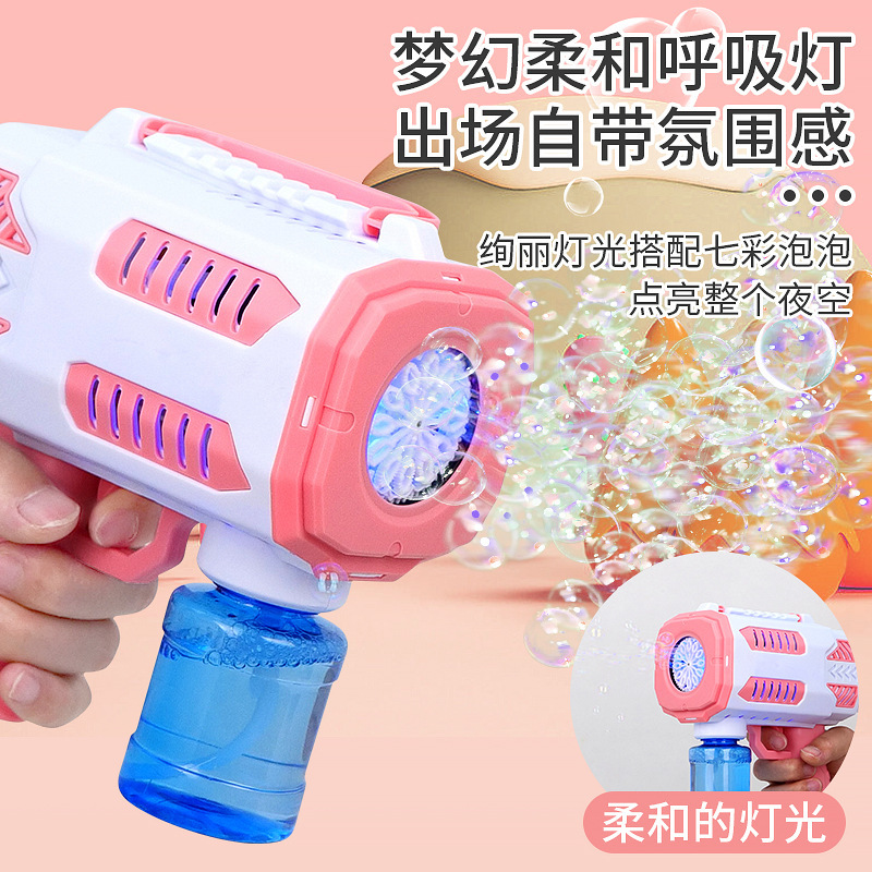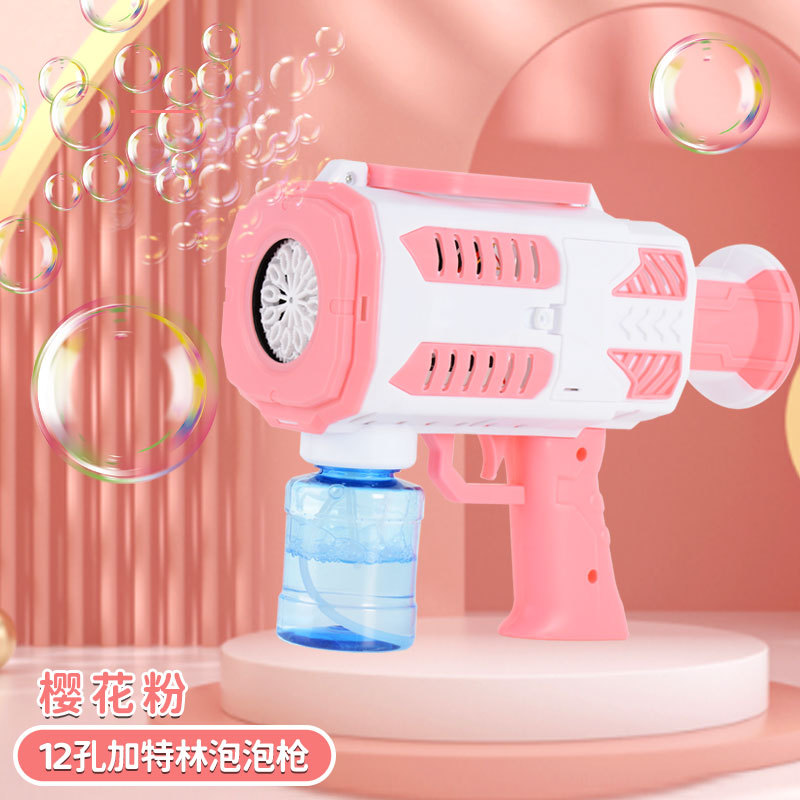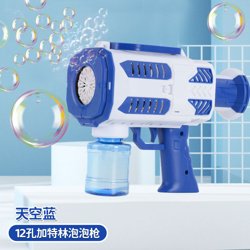 华彩新款12孔儿童全自动手持加特林泡泡机补充液电动出泡发光玩具