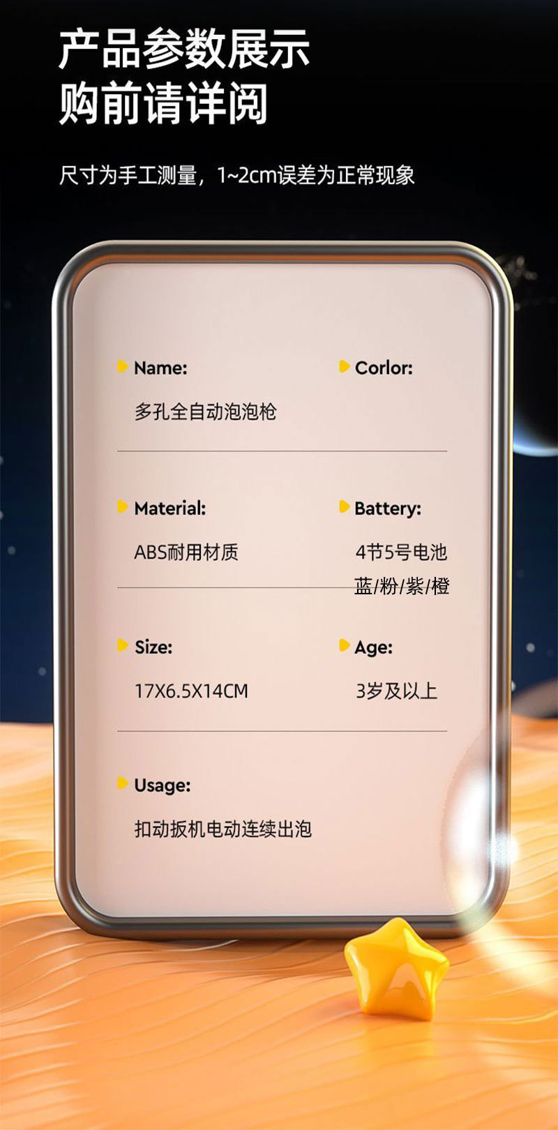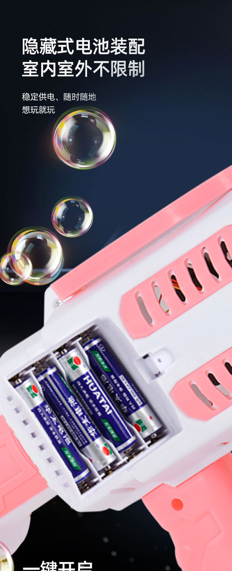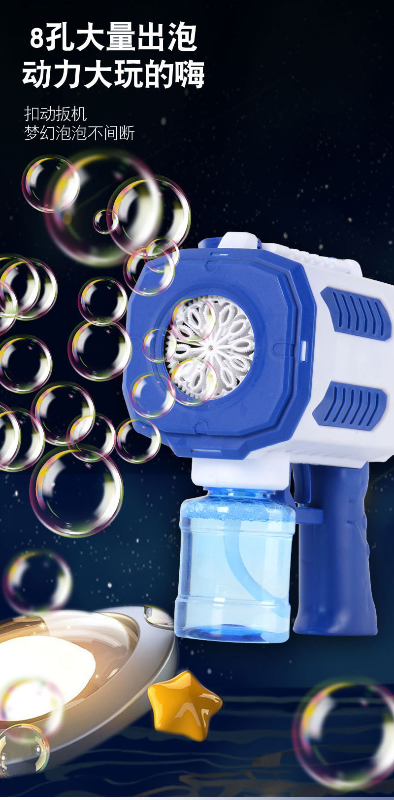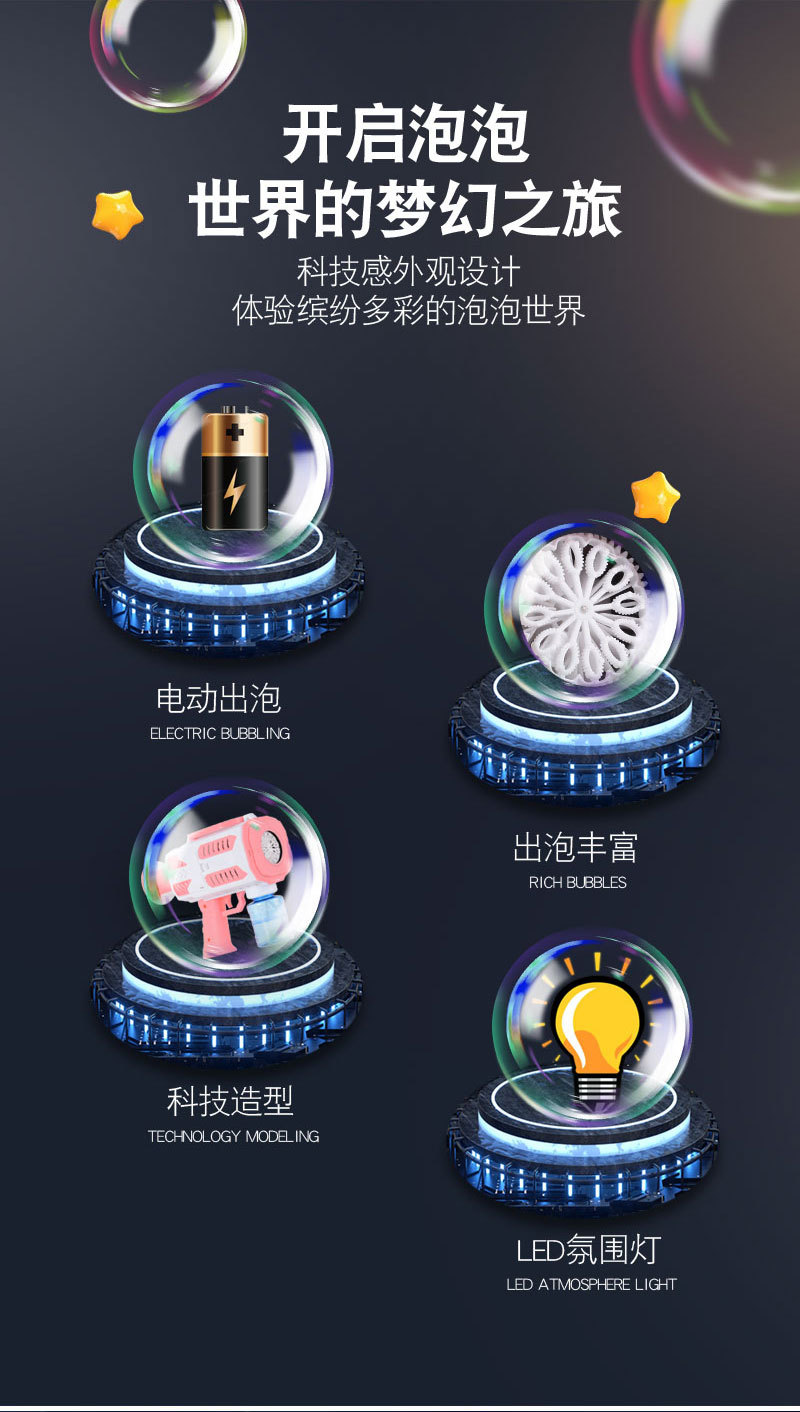 华彩新款12孔儿童全自动手持加特林泡泡机补充液电动出泡发光玩具