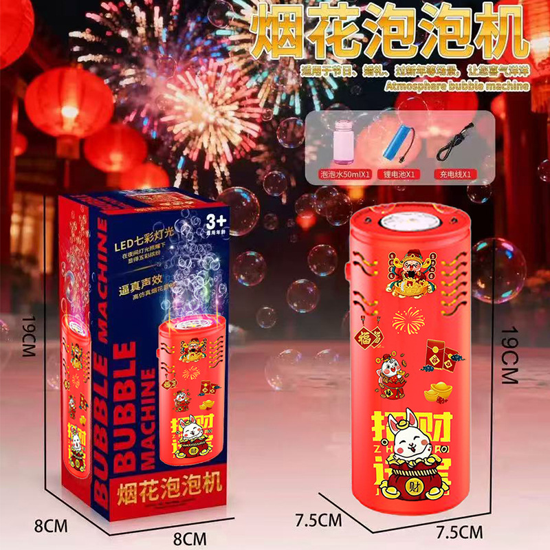 新品爆款新年烟花泡泡机全自动带遥控儿童春节过年礼物电礼花玩具