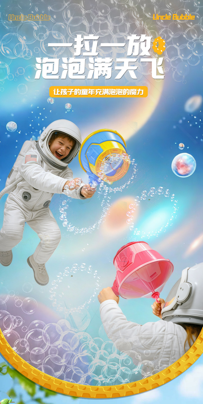 跨境英文包装新奇特儿童手持空气冲天炮泡泡机物理趣味玩具男女孩