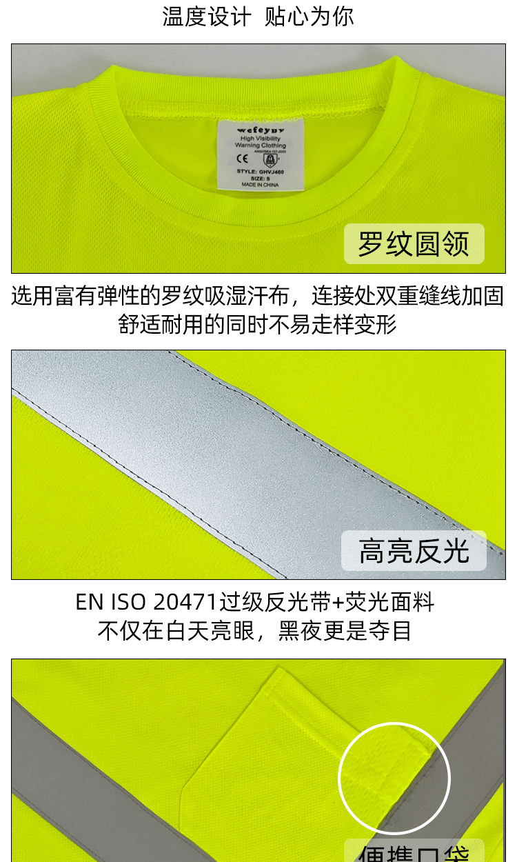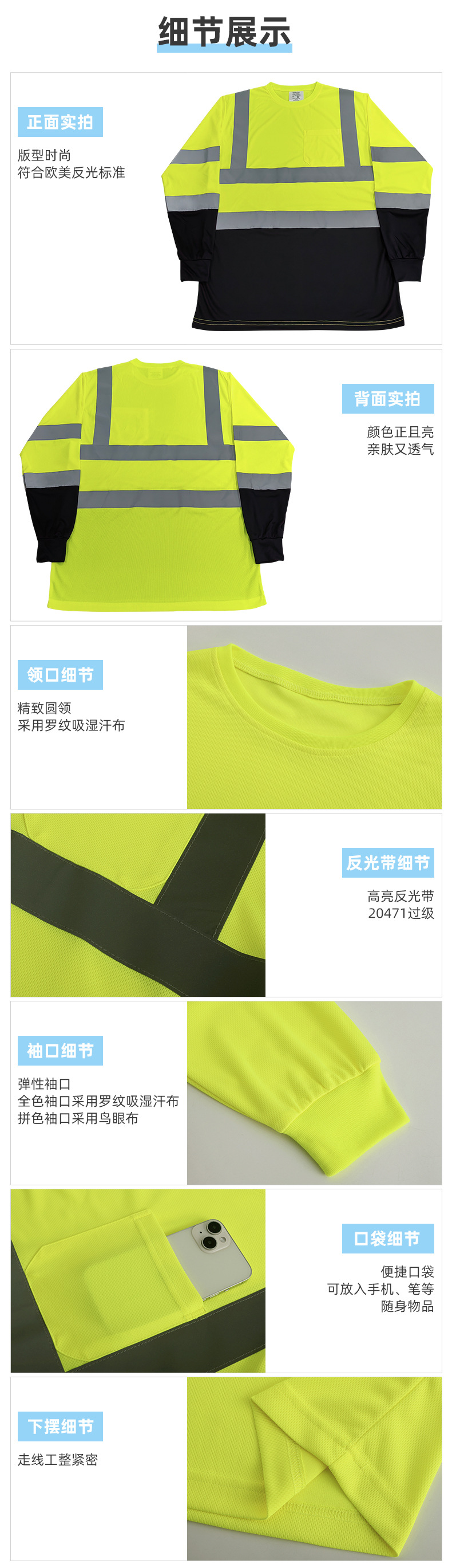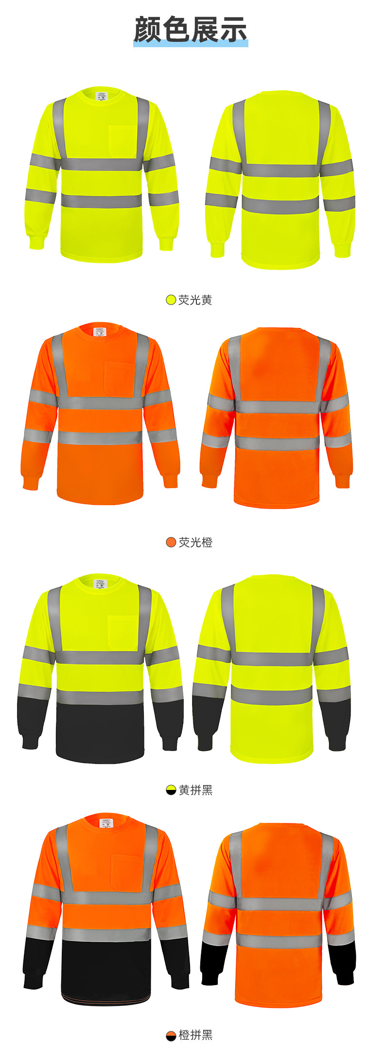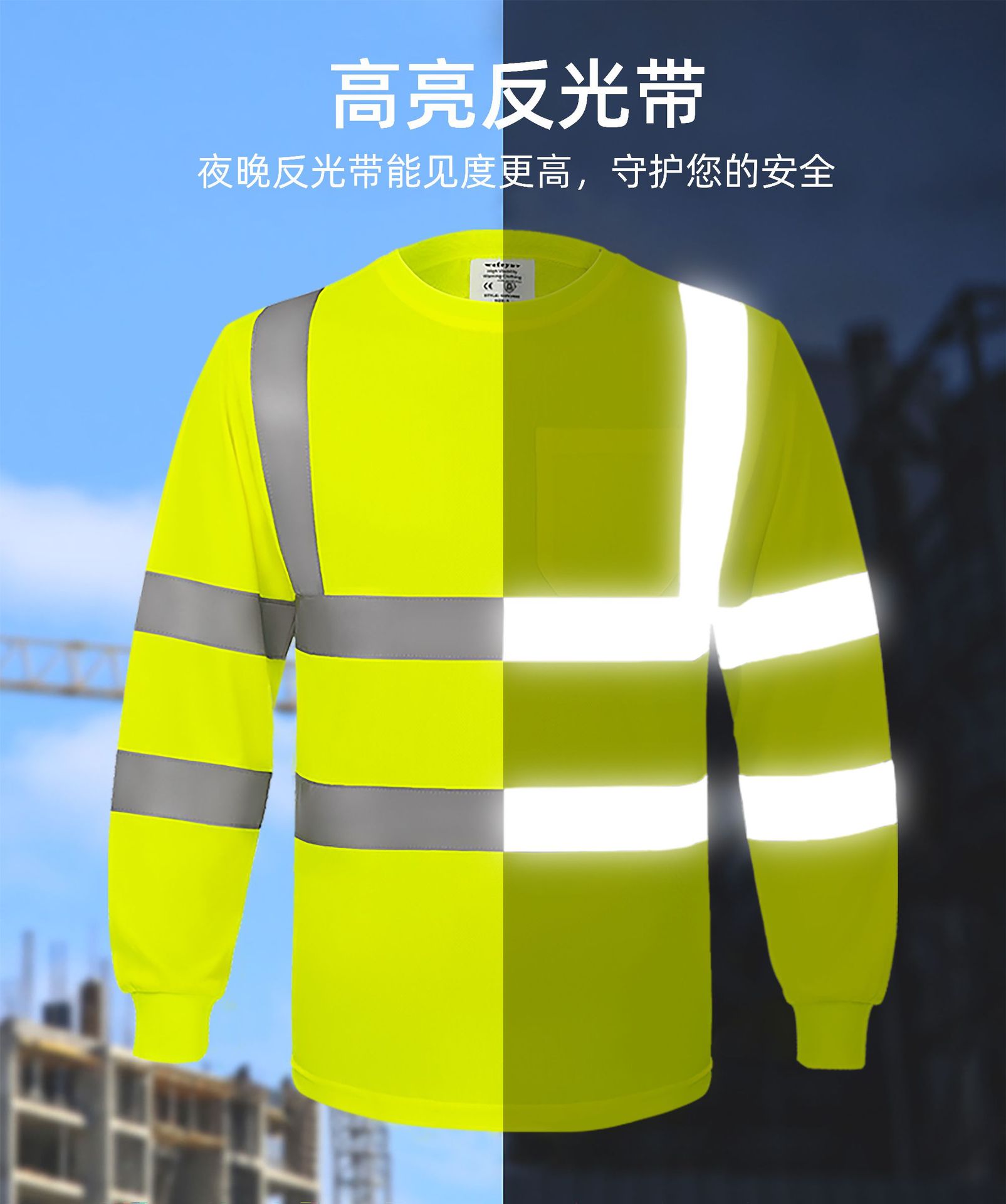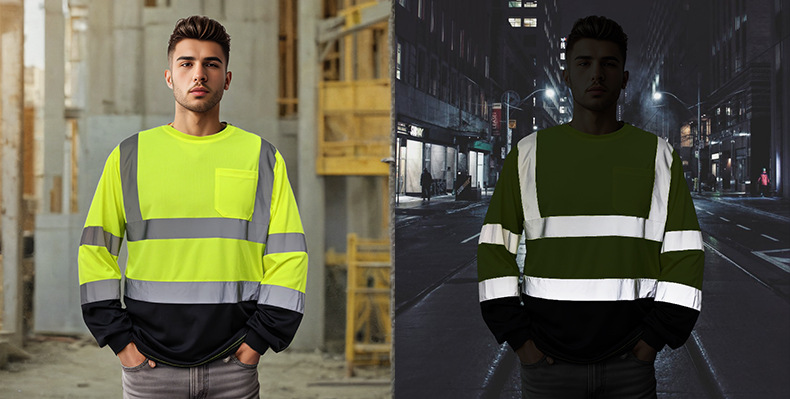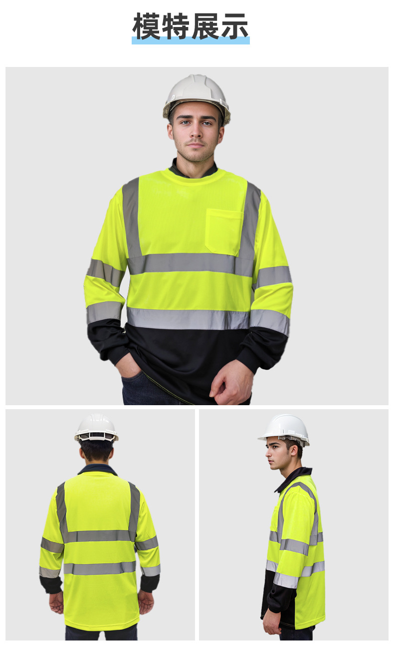 跨境热销反光长袖T恤定制施工搬运高亮圆领反光T恤透气防晒反光衣