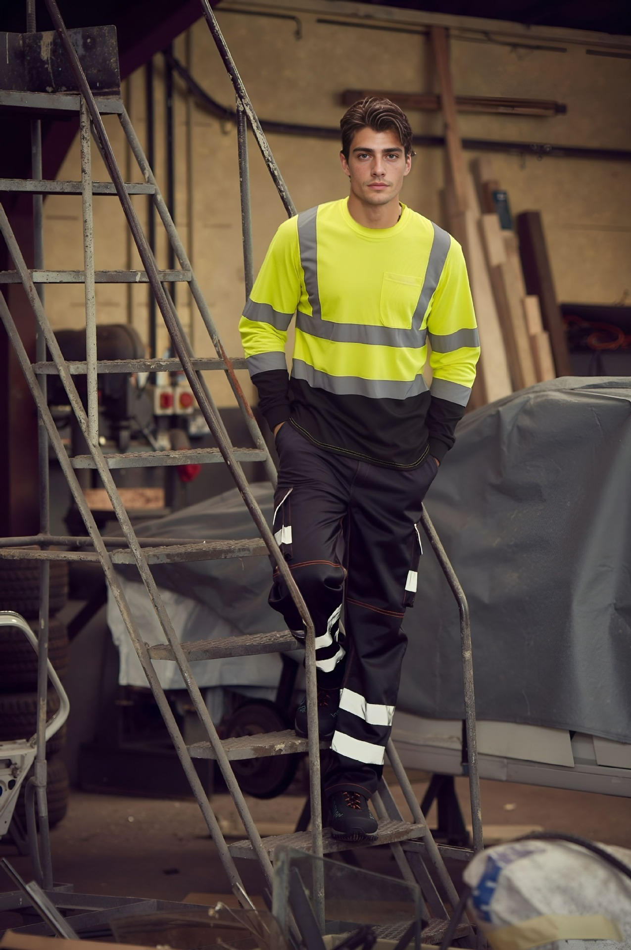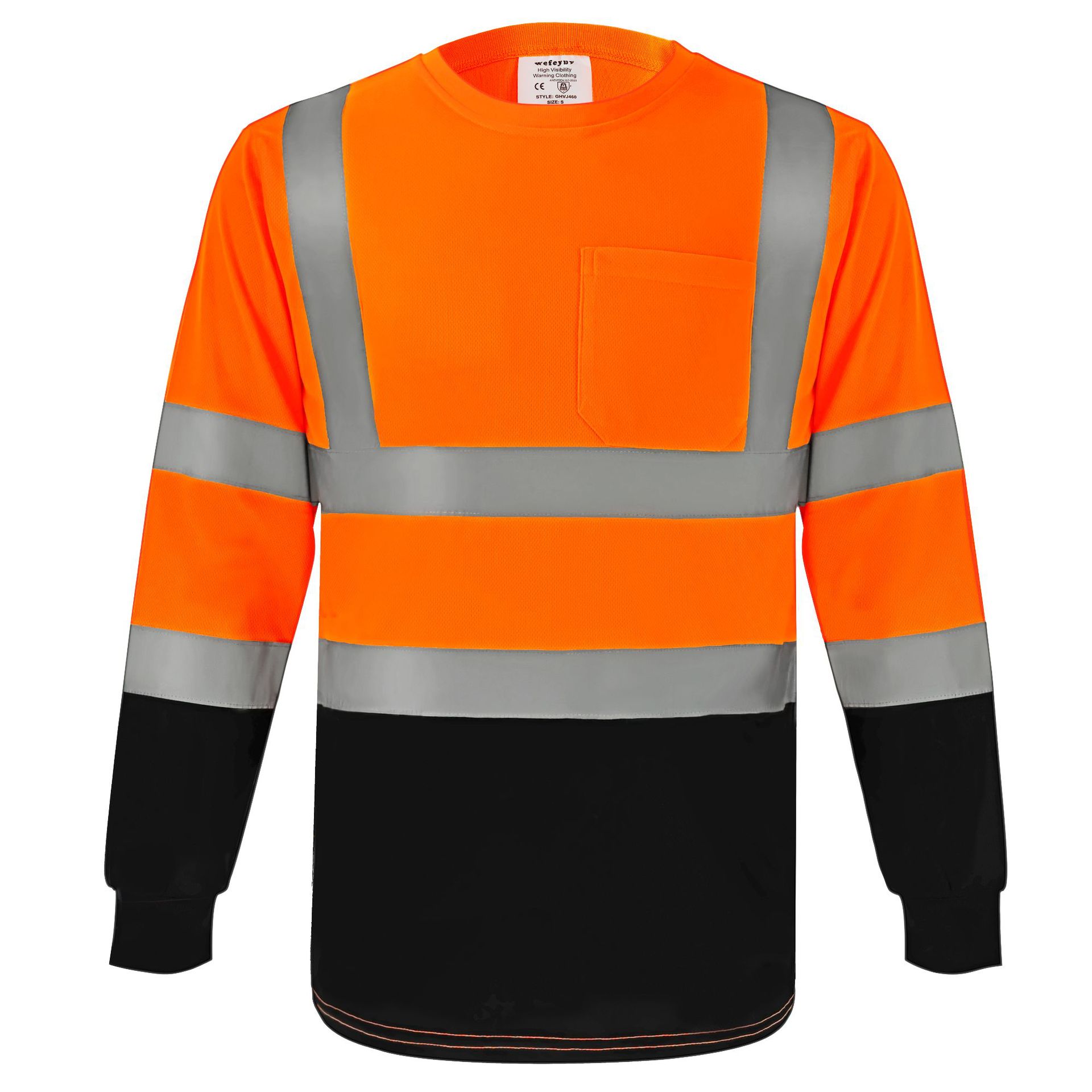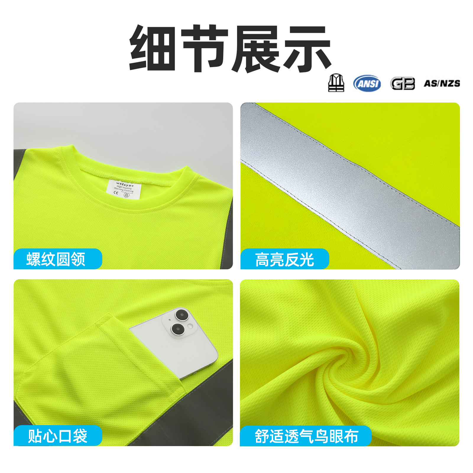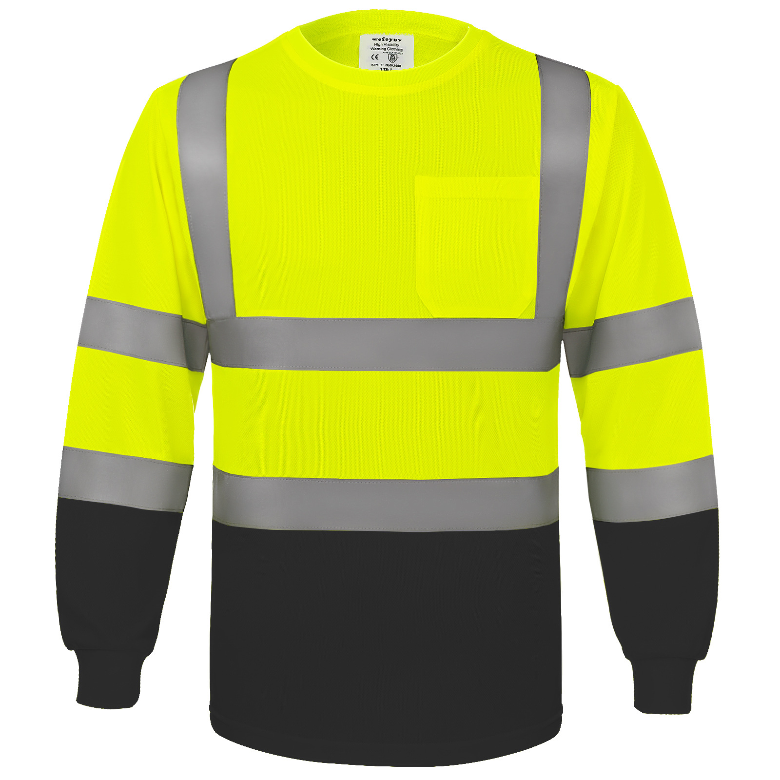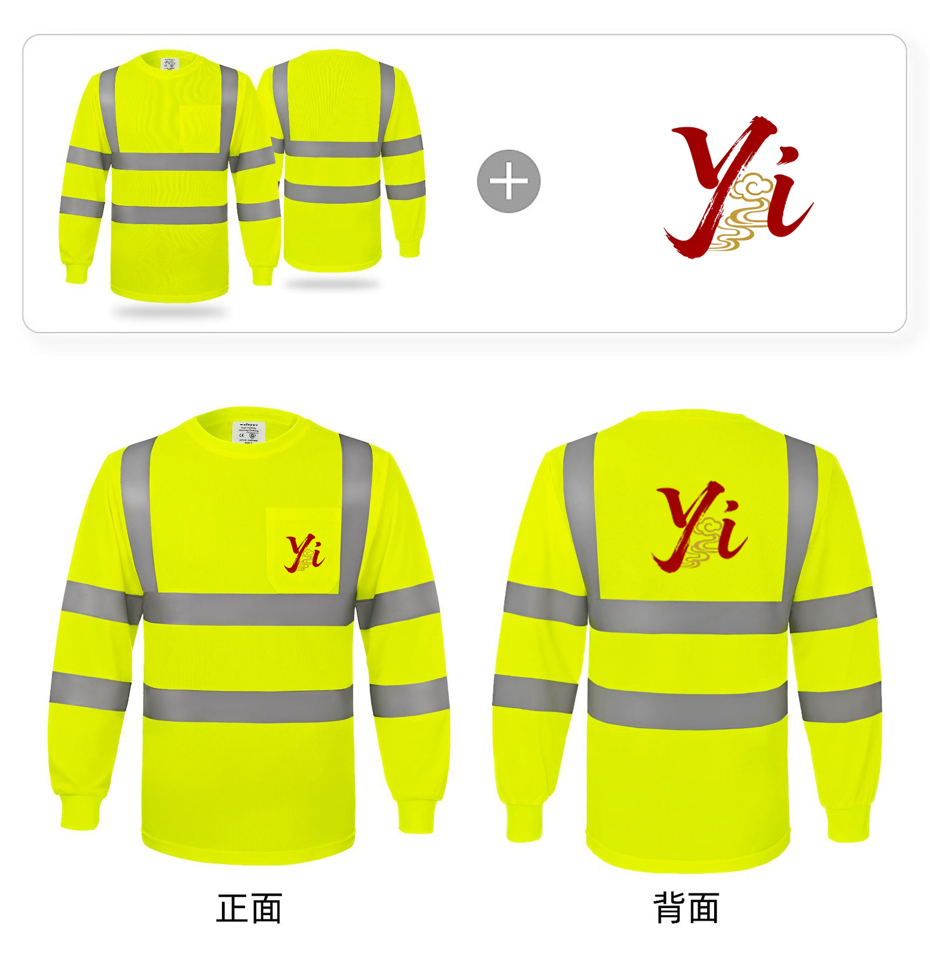 跨境热销反光长袖T恤定制施工搬运高亮圆领反光T恤透气防晒反光衣