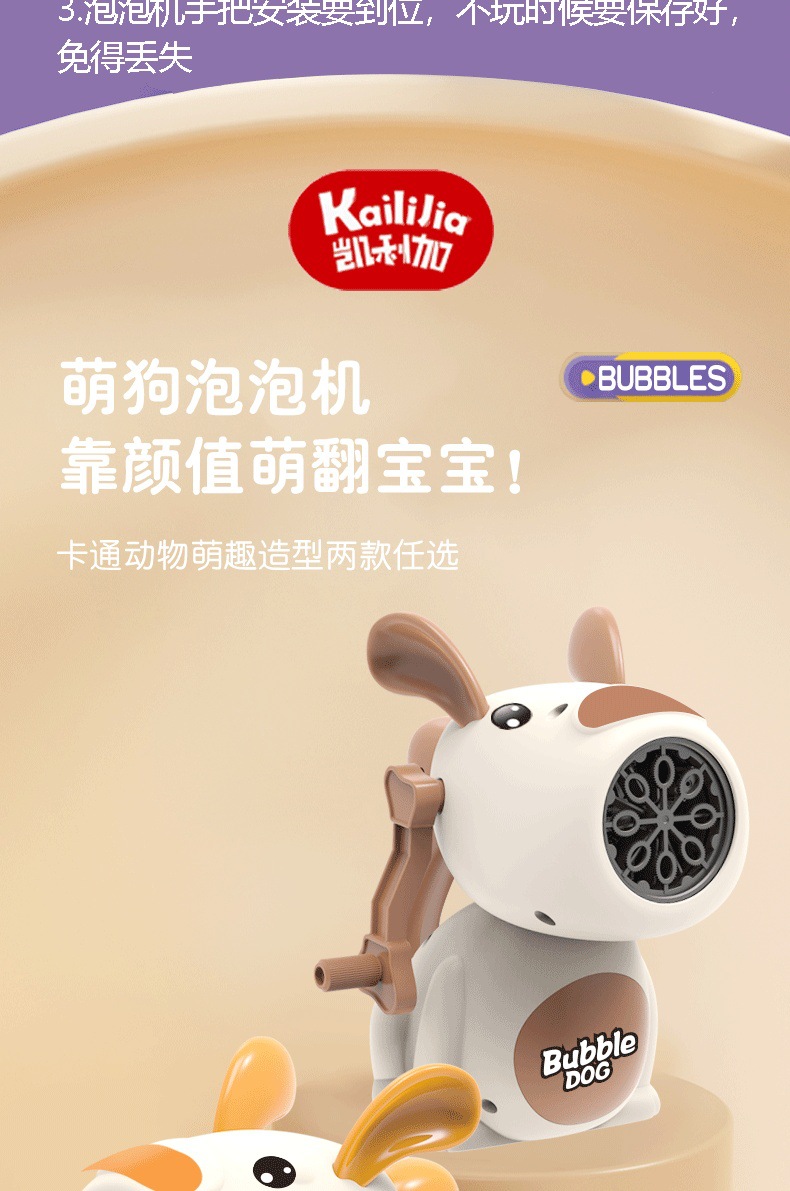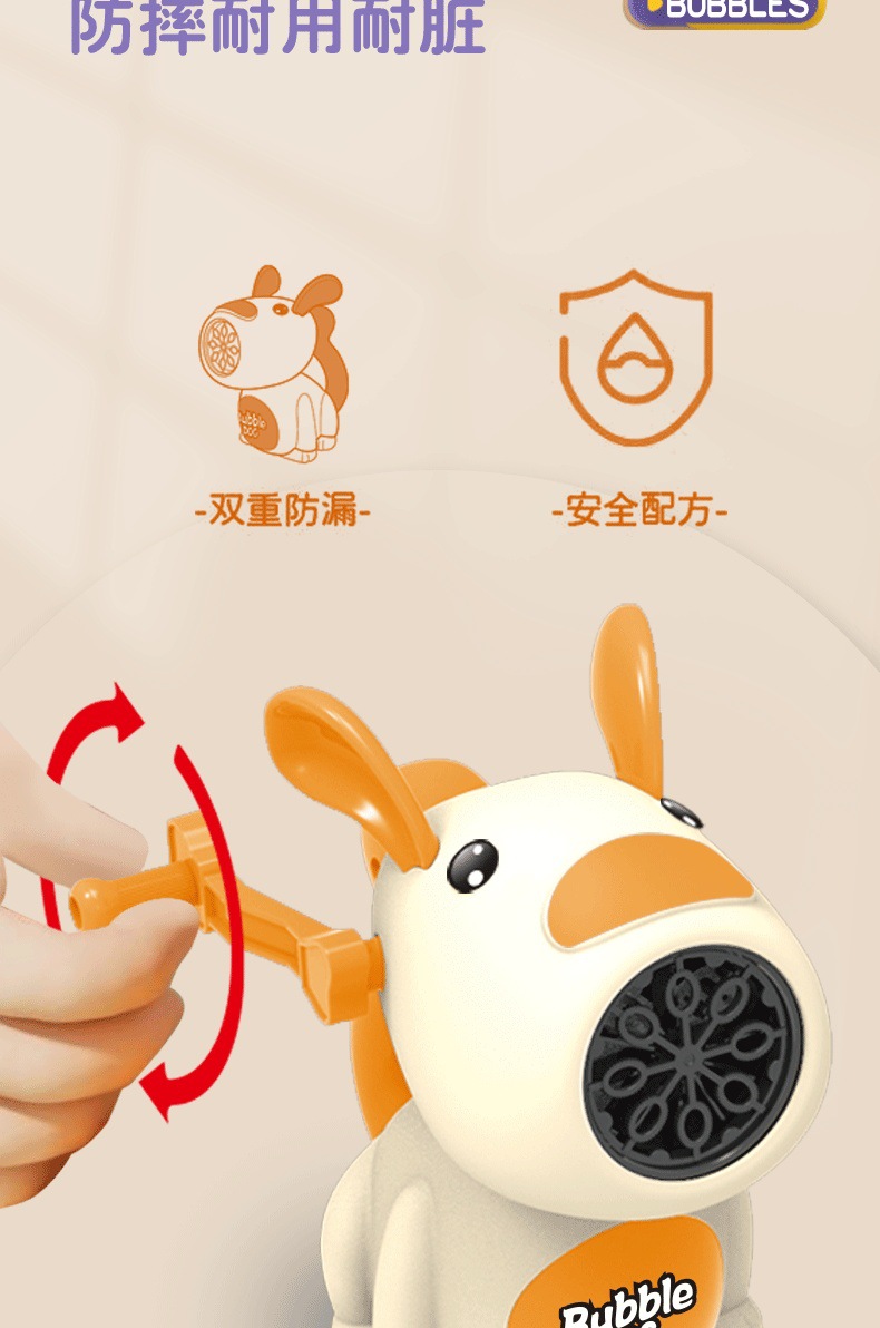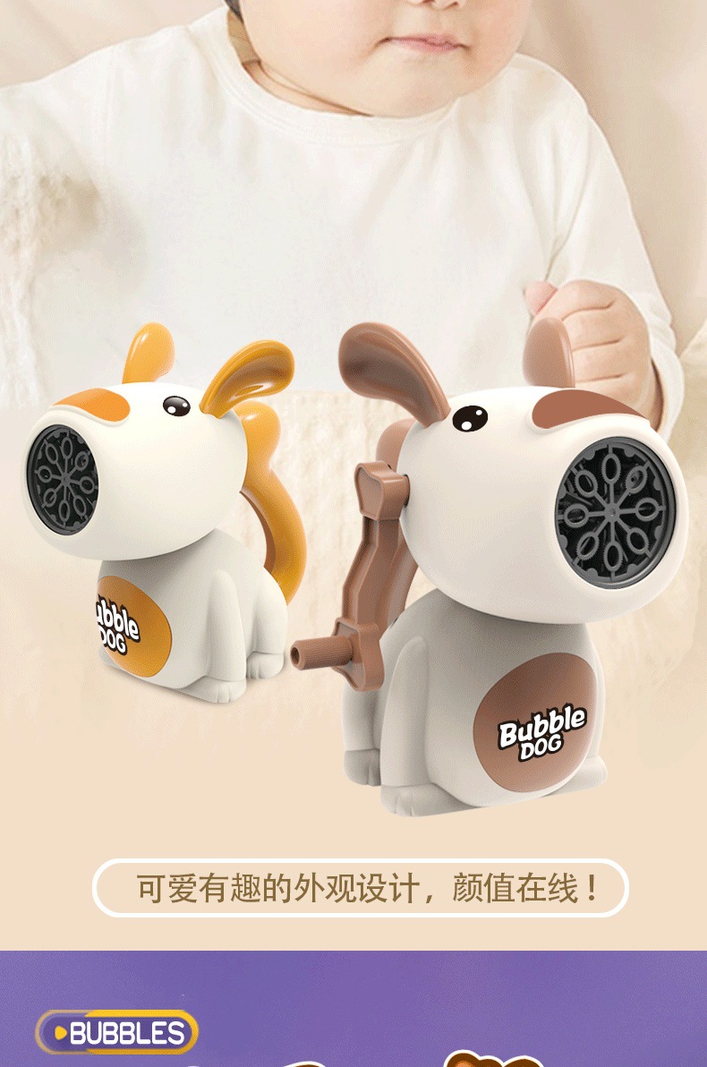 儿童手摇泡泡机玩具卡通萌狗手动多孔吹泡泡枪户外泡泡棒地摊批发