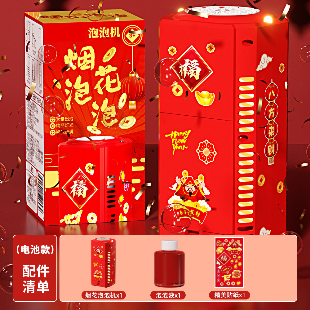 2026款烟花泡泡机全自动新年烟花爆竹泡泡枪儿童玩具摆摊批发代发