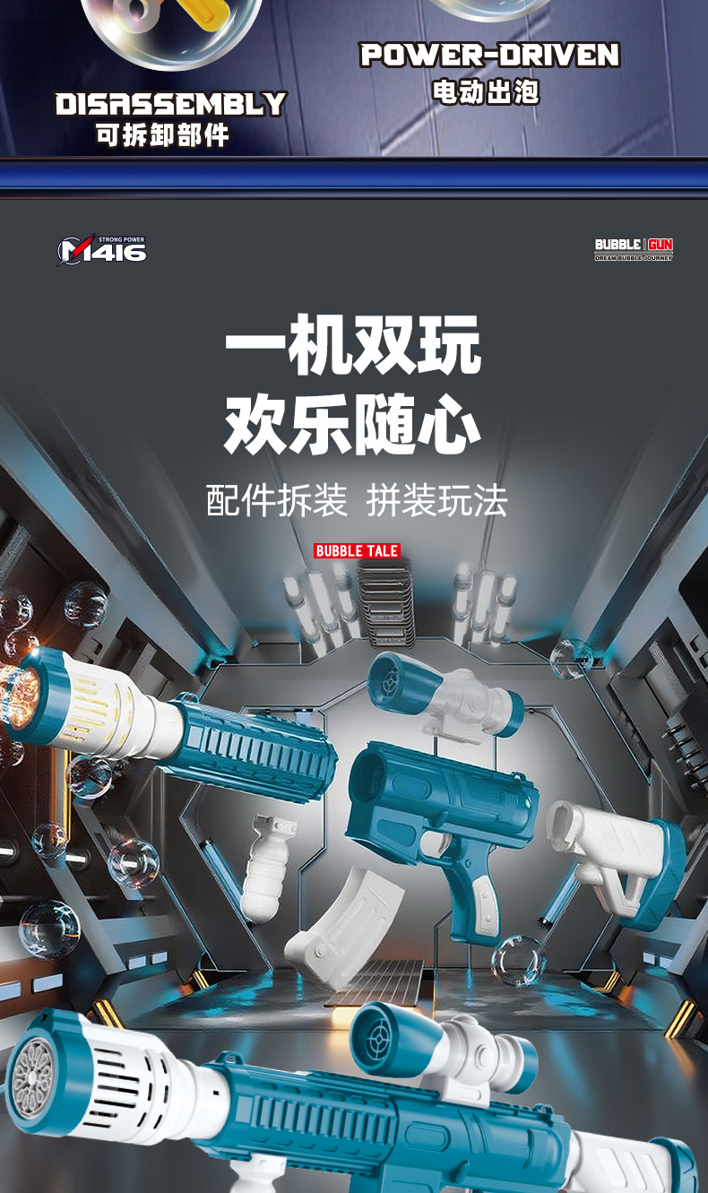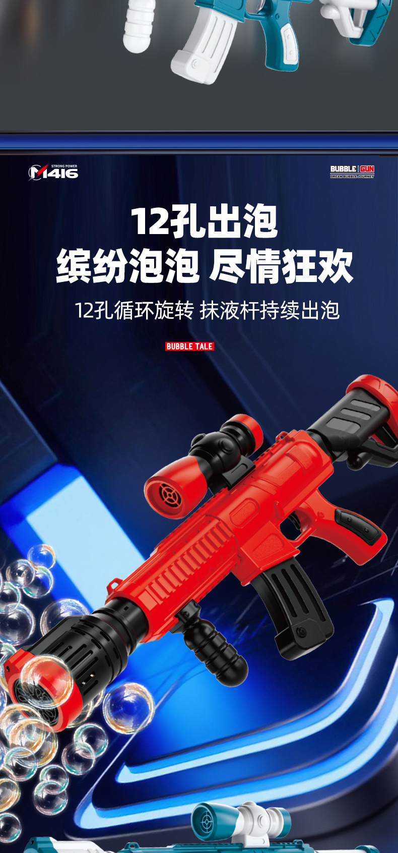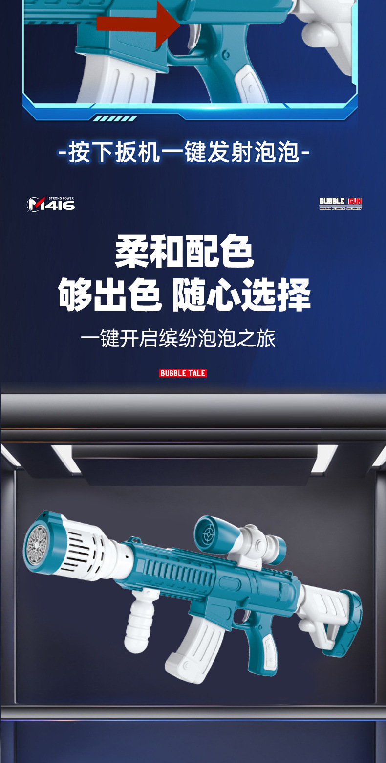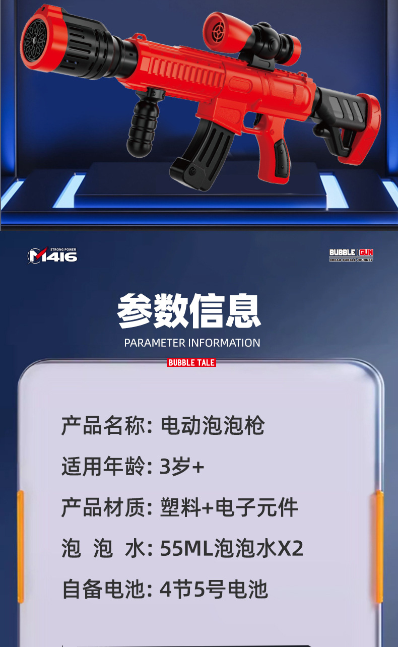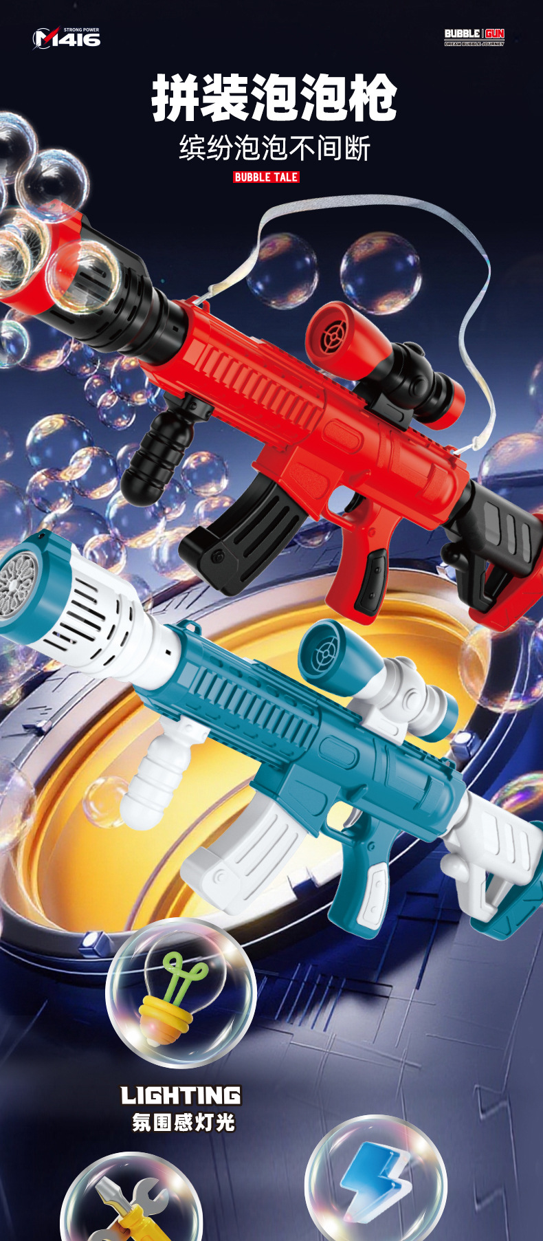 儿童电动玩具枪多孔泡泡枪m416全自动出泡泡吹灯光男女孩玩具跨境