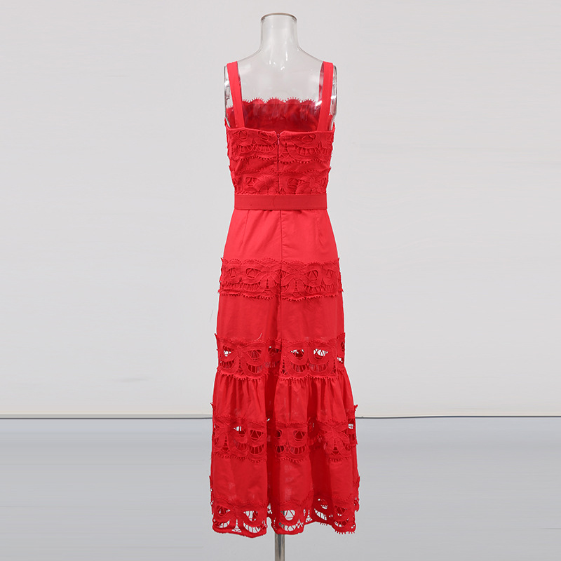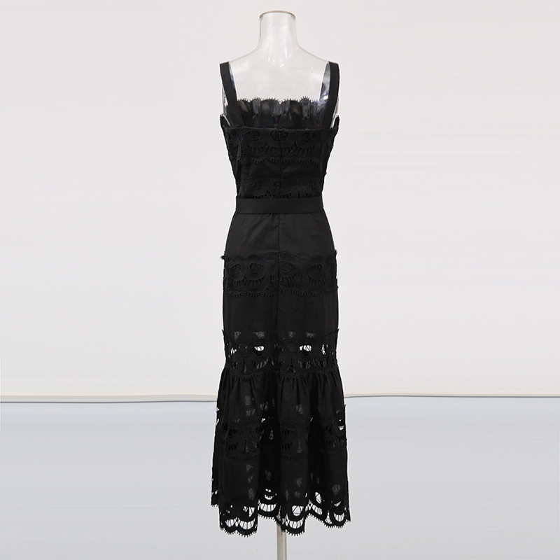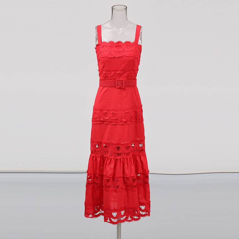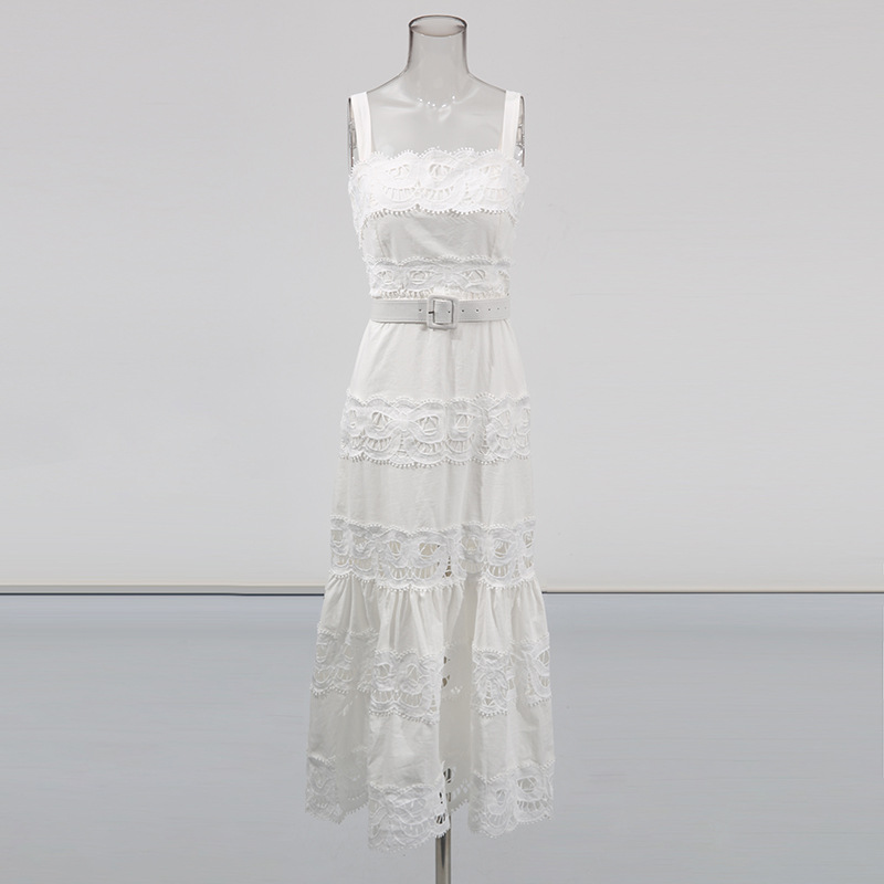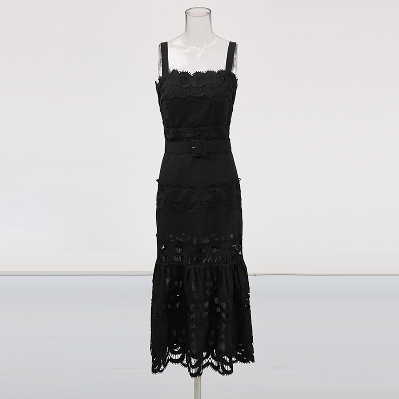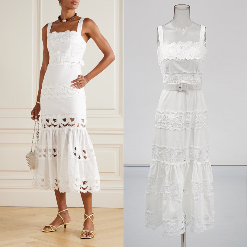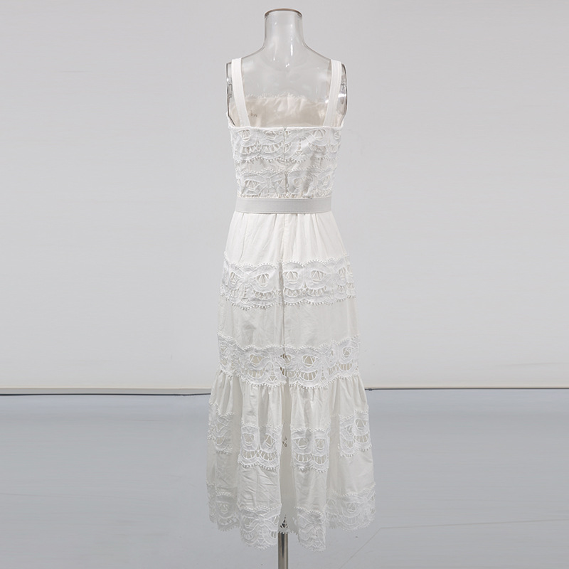 法式吊带沙滩裙高级感女装长裙2026春季新款刺绣裙镂空纯色连衣裙