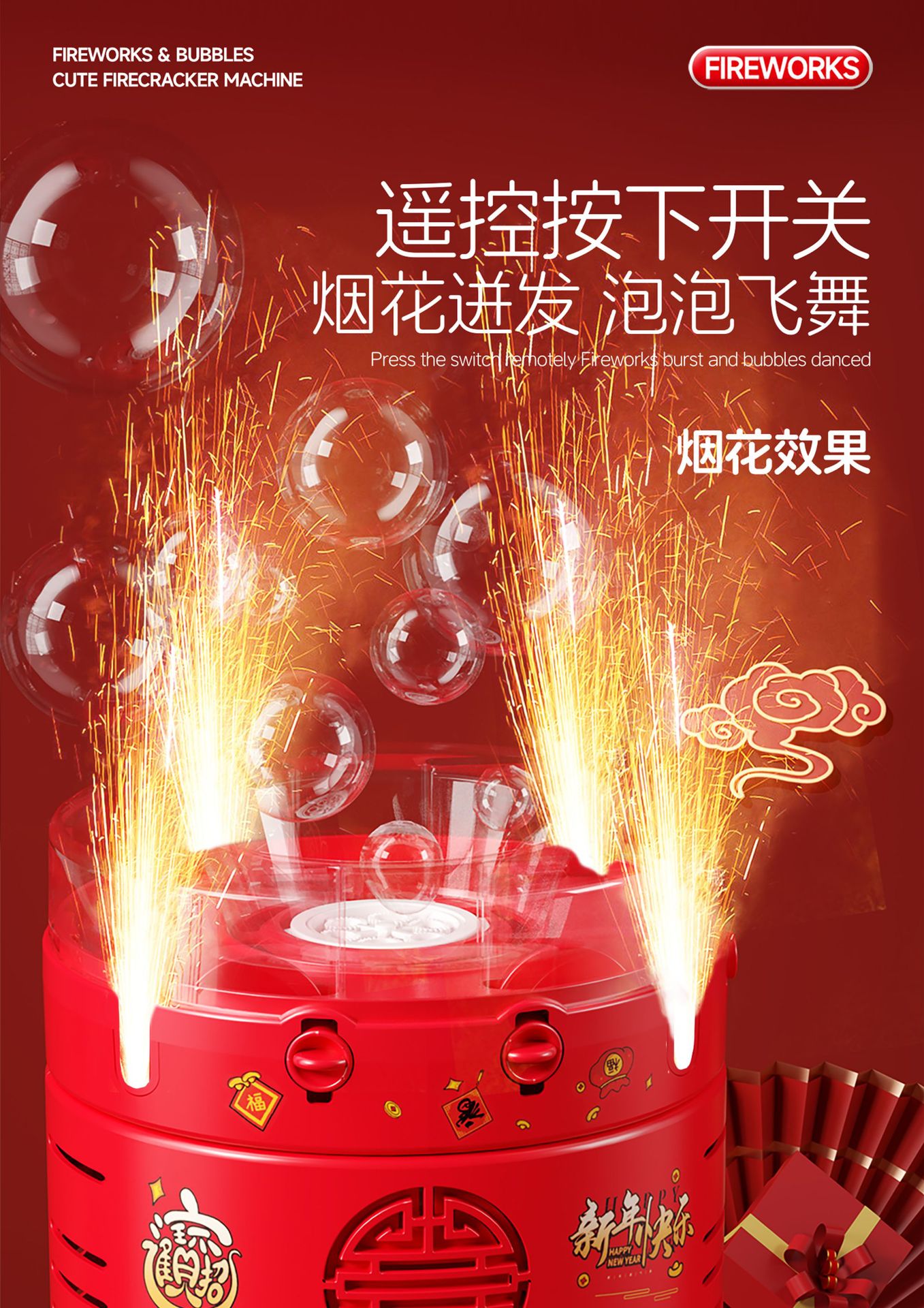 新款遥控火石烟花自动泡泡机烟火鞭炮泡泡机新火石烟花泡泡机批发