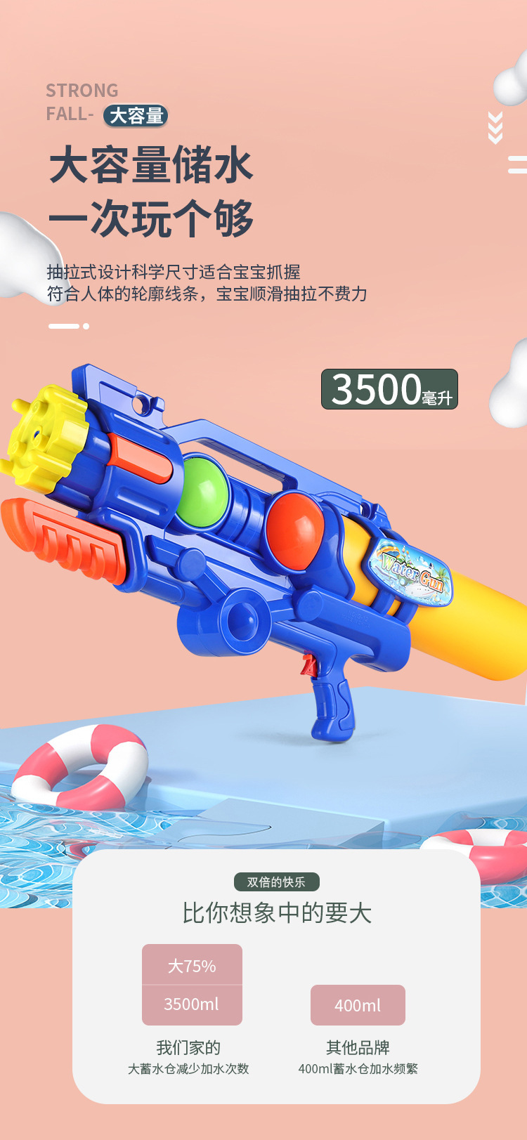 儿童玩具按压式戏水玩具水枪大容量沙滩打水仗男女孩夏季玩具礼物