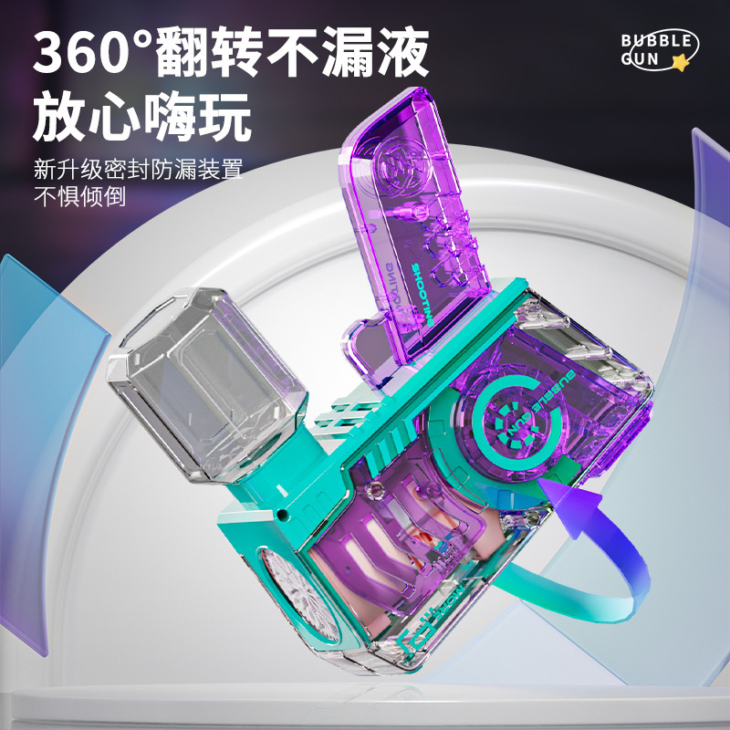 跨境新款透明泡泡机儿童手持全自动吹泡泡机械泡泡枪户外玩具批发