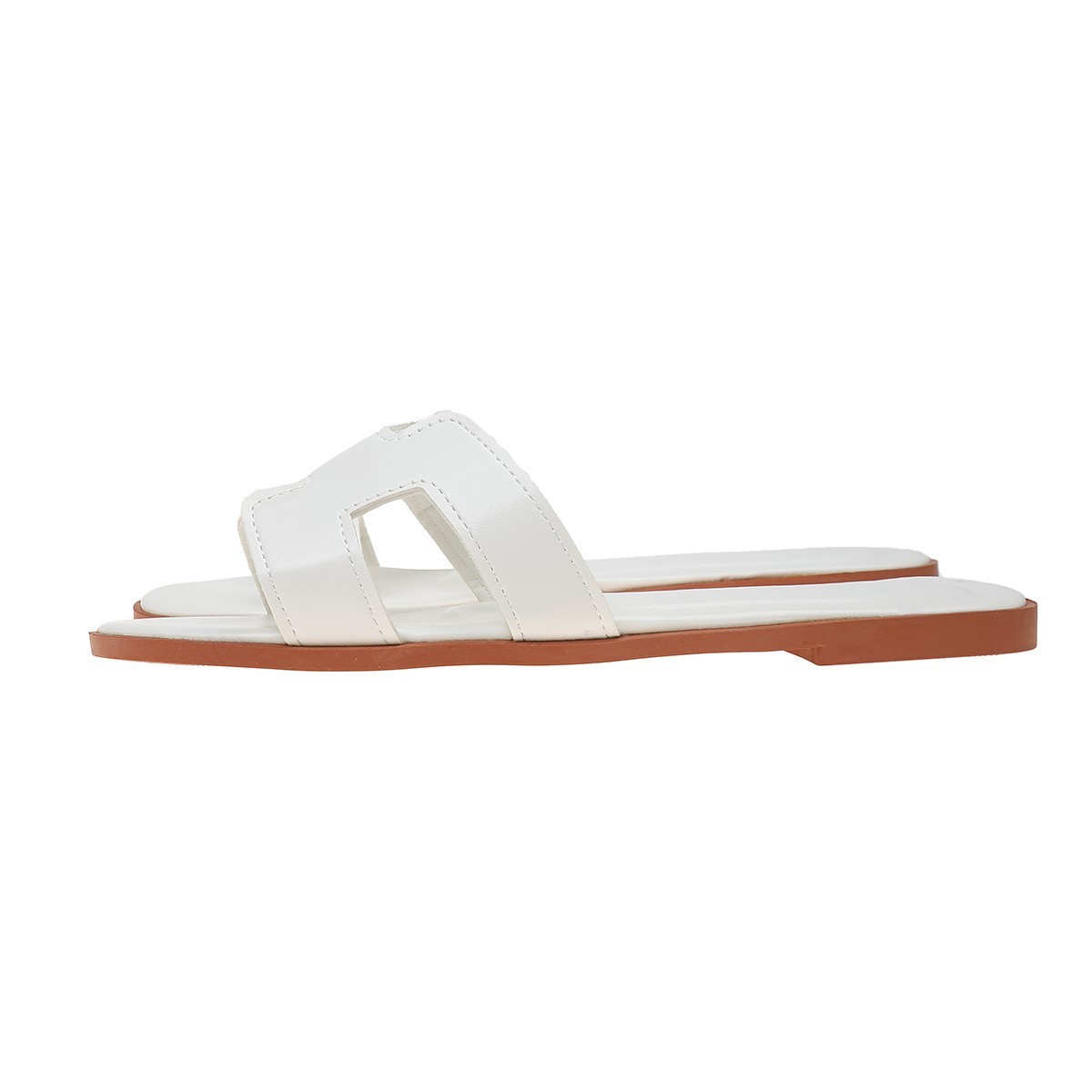 外贸大码凉鞋女2025夏季新款平底纯色一字欧美时尚外穿凉拖鞋女鞋
