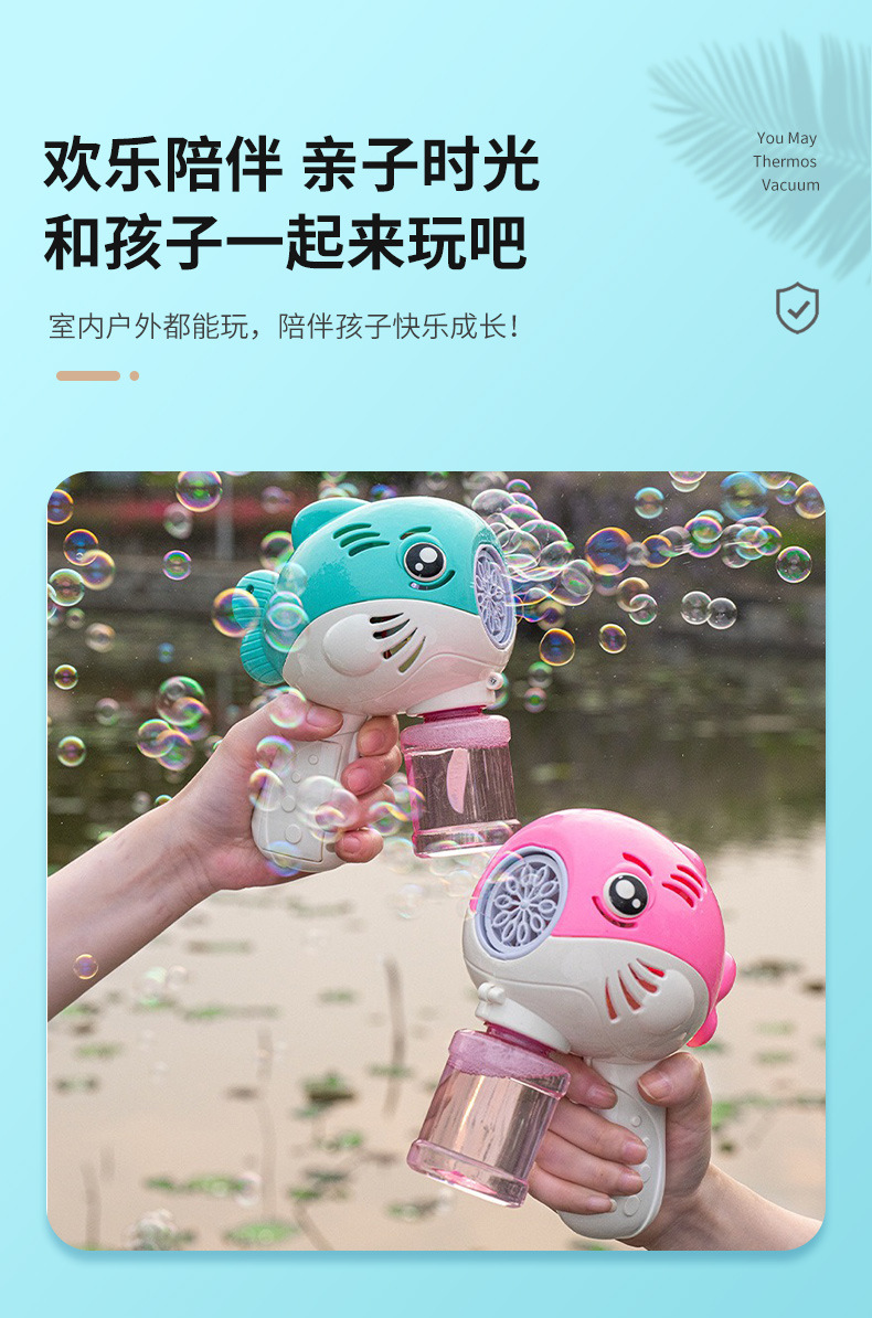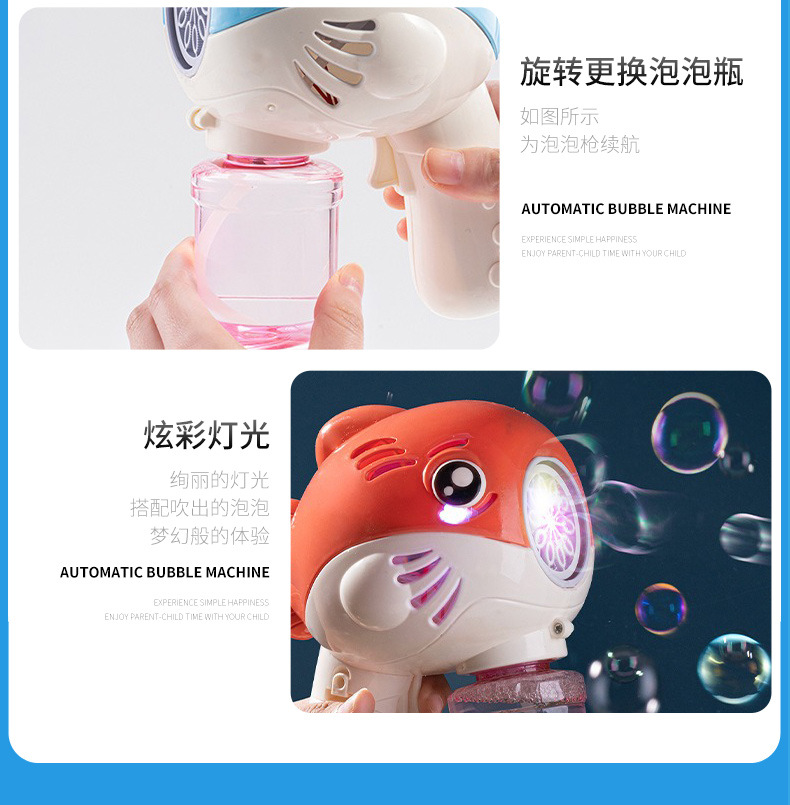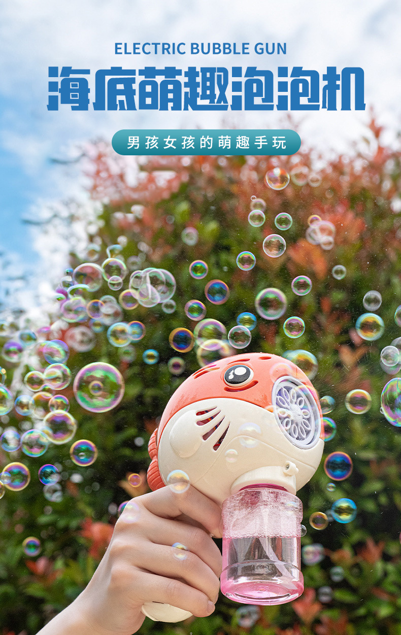 跨境加特林新款卡通电动吹泡泡枪灯光海底网红泡泡机玩具夜市摆摊