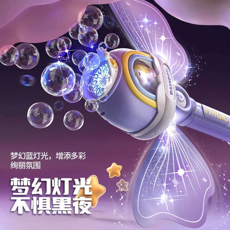 跨境新款全自动出泡魔法棒泡泡机儿童手持灯光泡泡枪女孩玩具批发