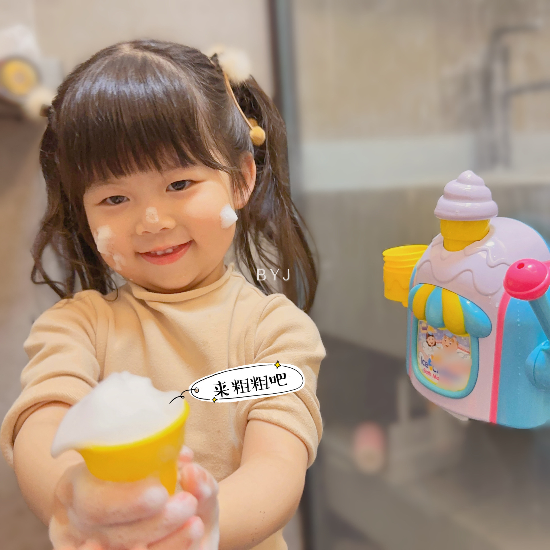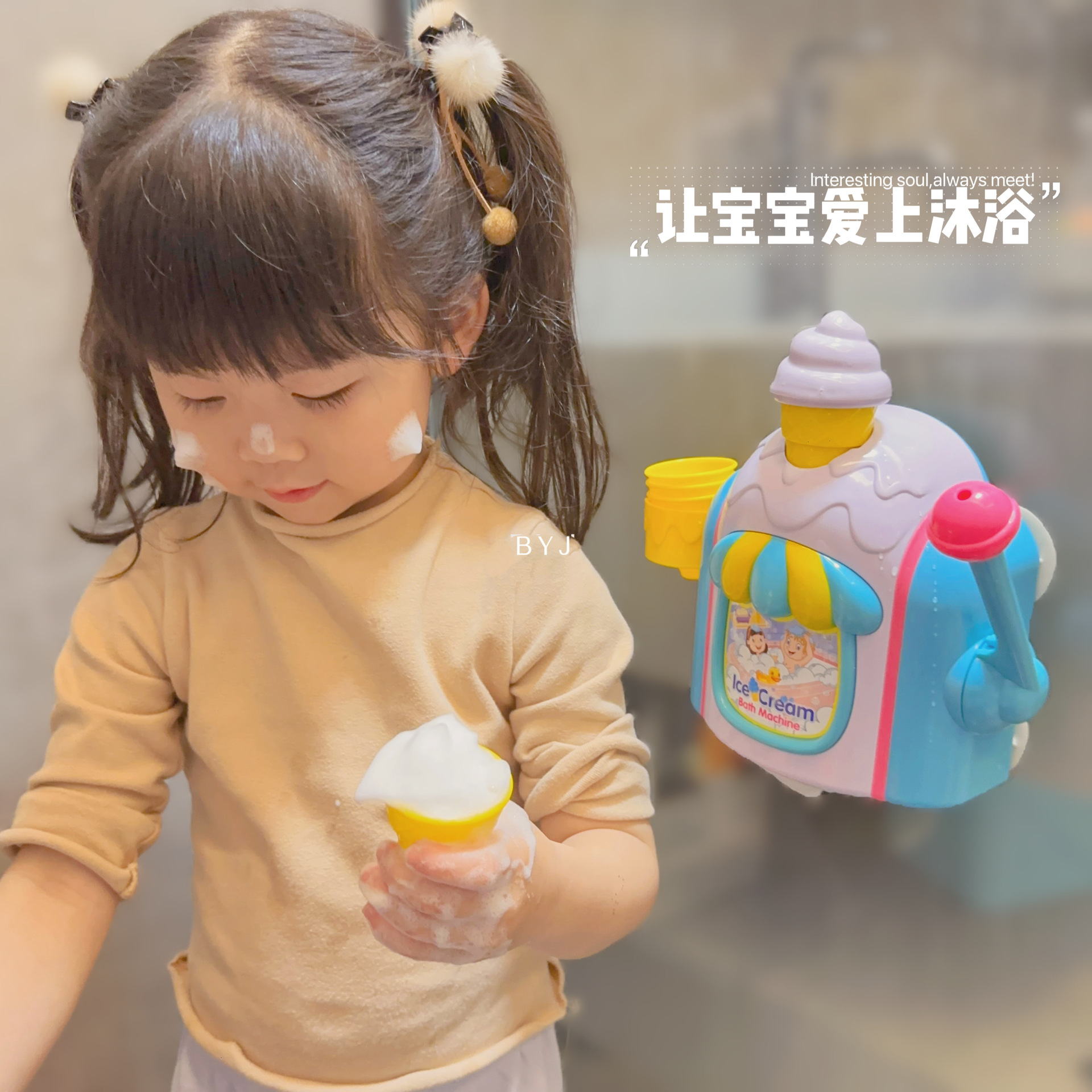 儿童冰淇淋泡泡机 宝宝洗澡仿真制作冰淇淋起泡机过家家浴室玩具