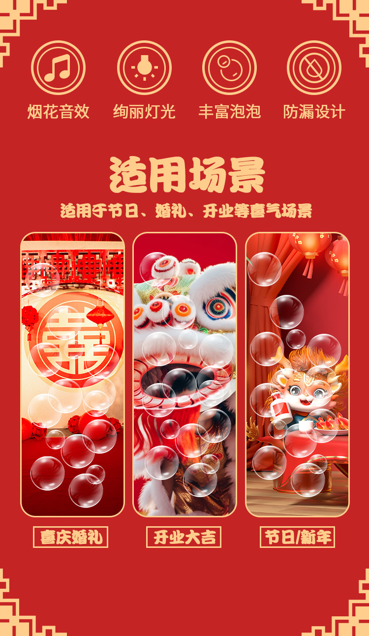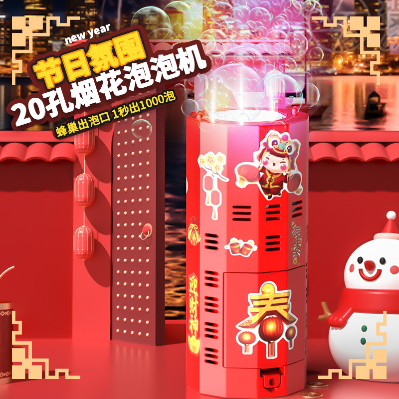 烟花泡泡机电动儿童全自动灯光音效烟花新年婚礼喜庆泡泡地摊玩具