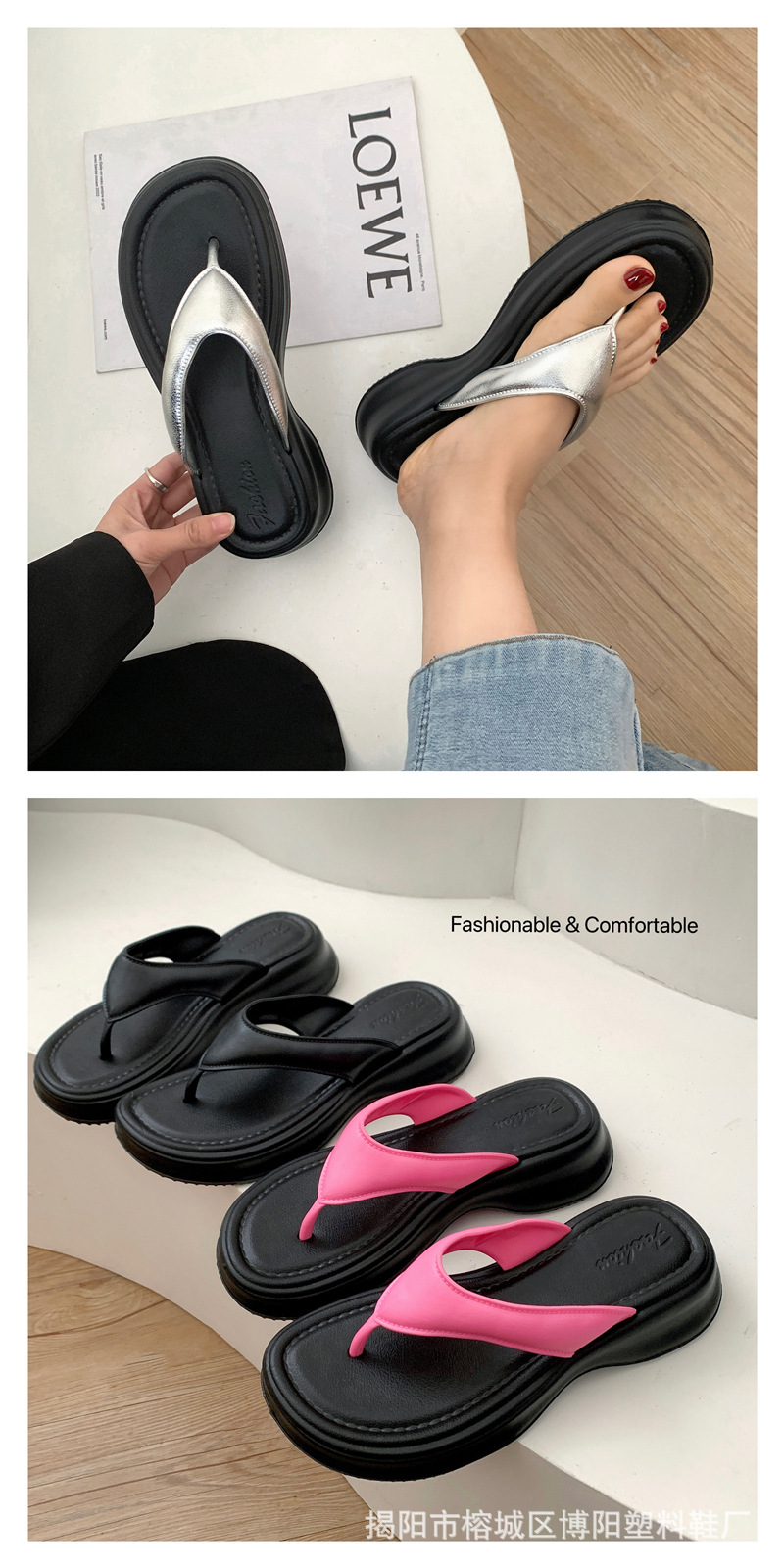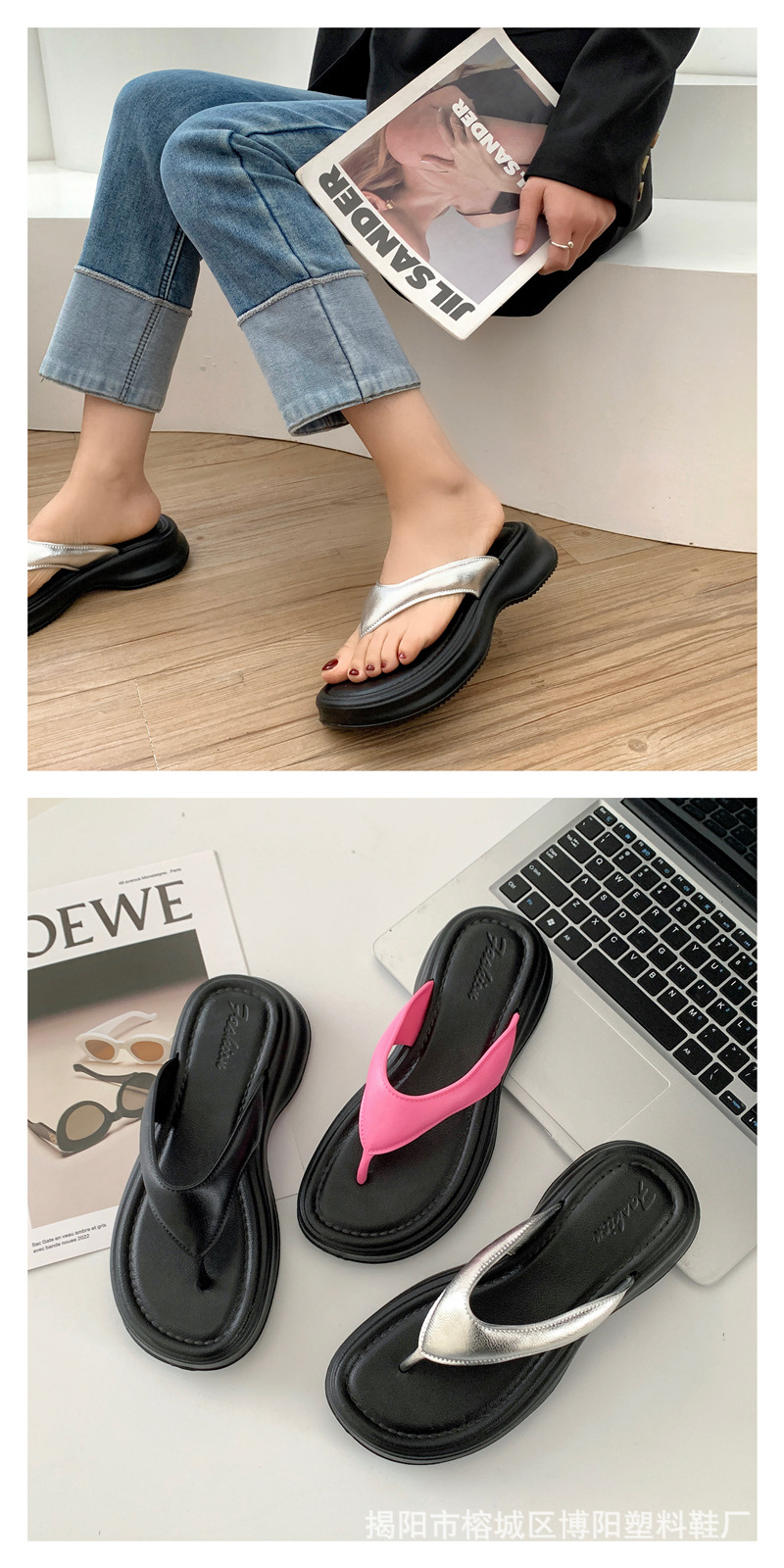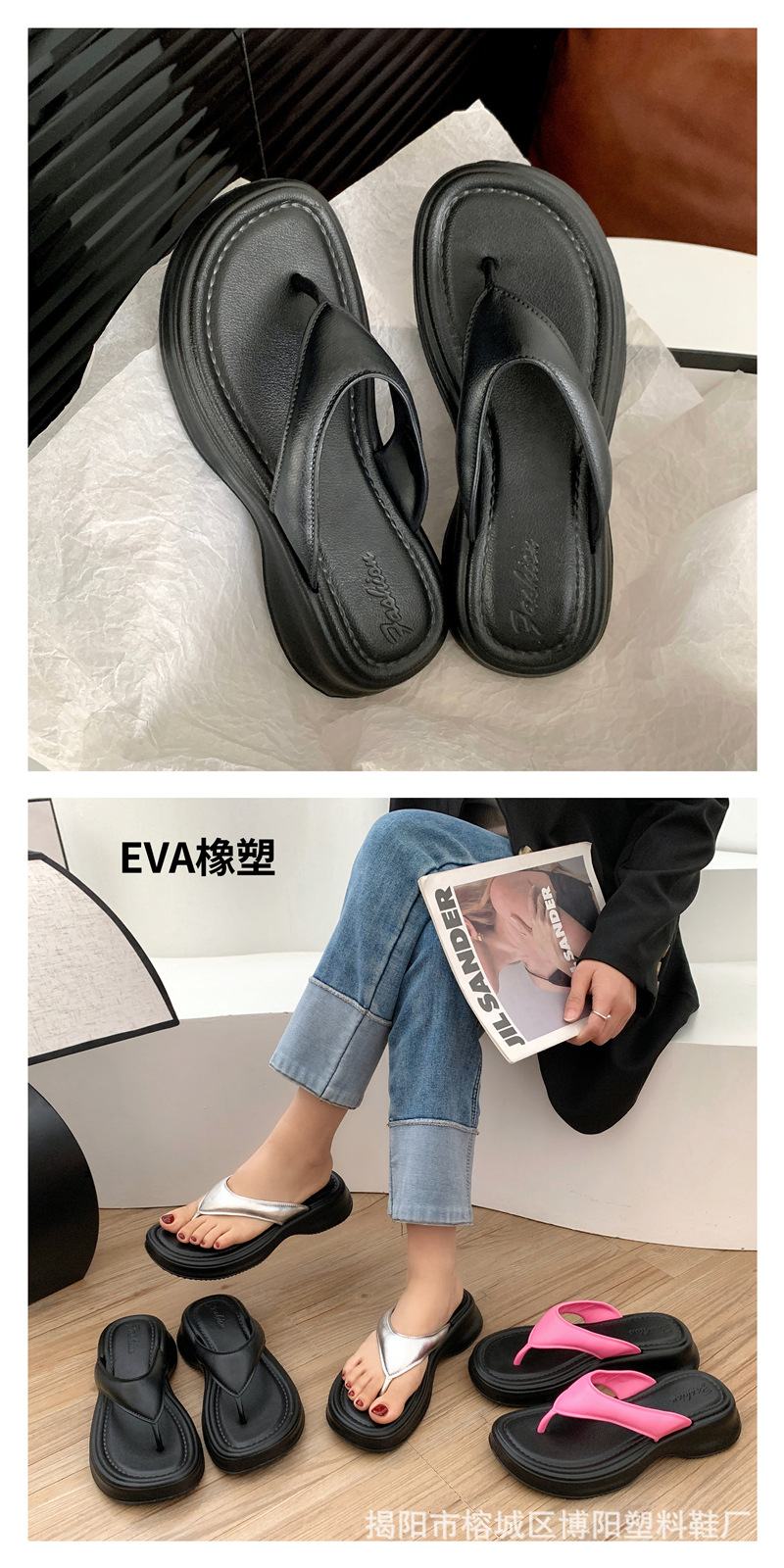 新款夹趾凉鞋女人字拖高跟厚底夹脚外穿时尚百搭轻便EVA凉拖夏季
