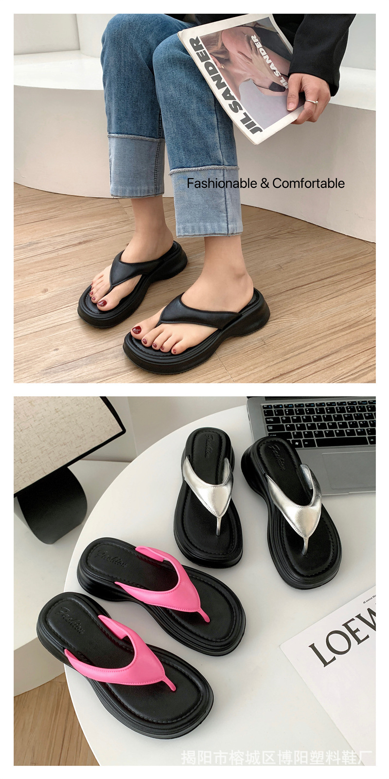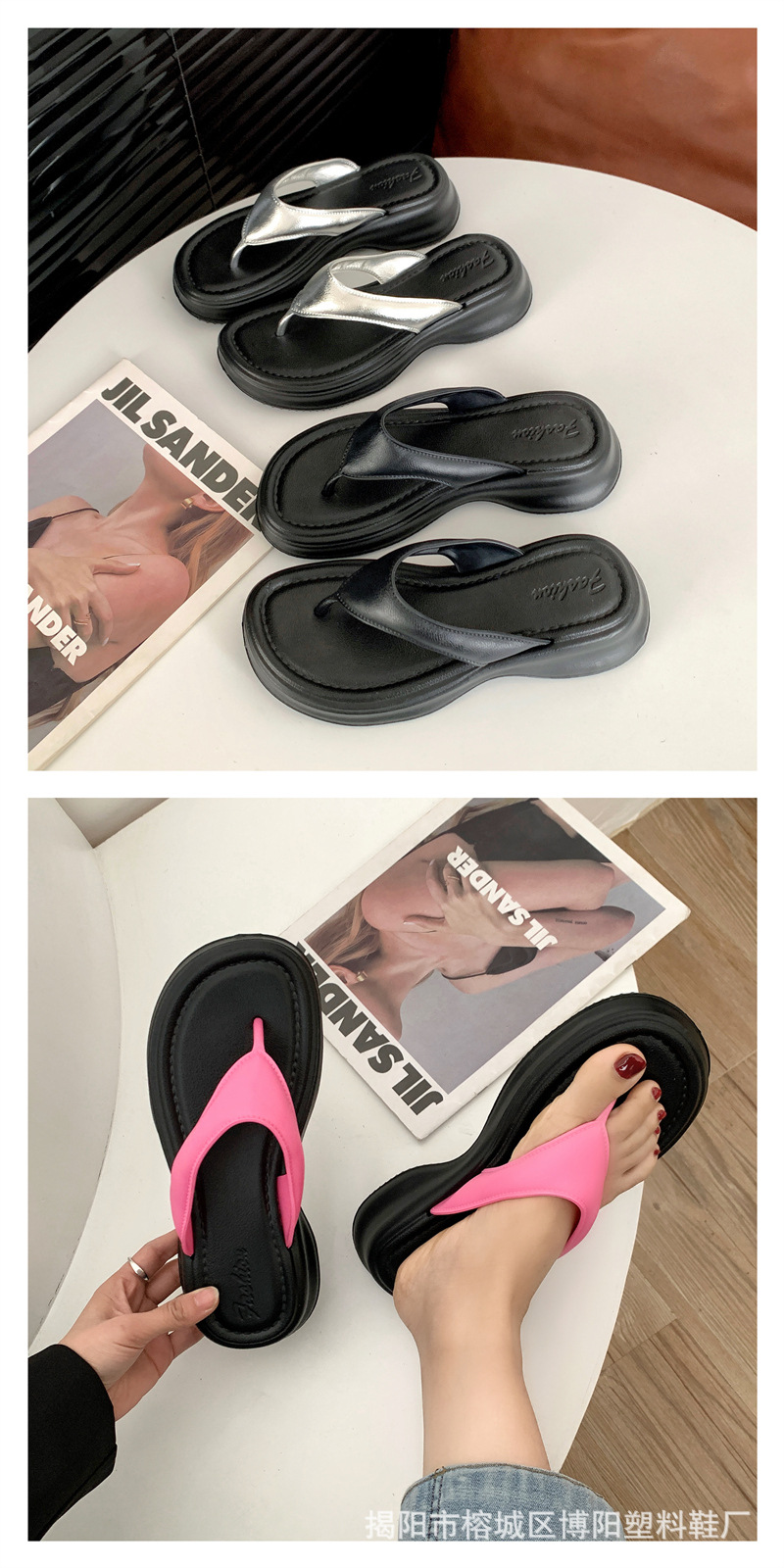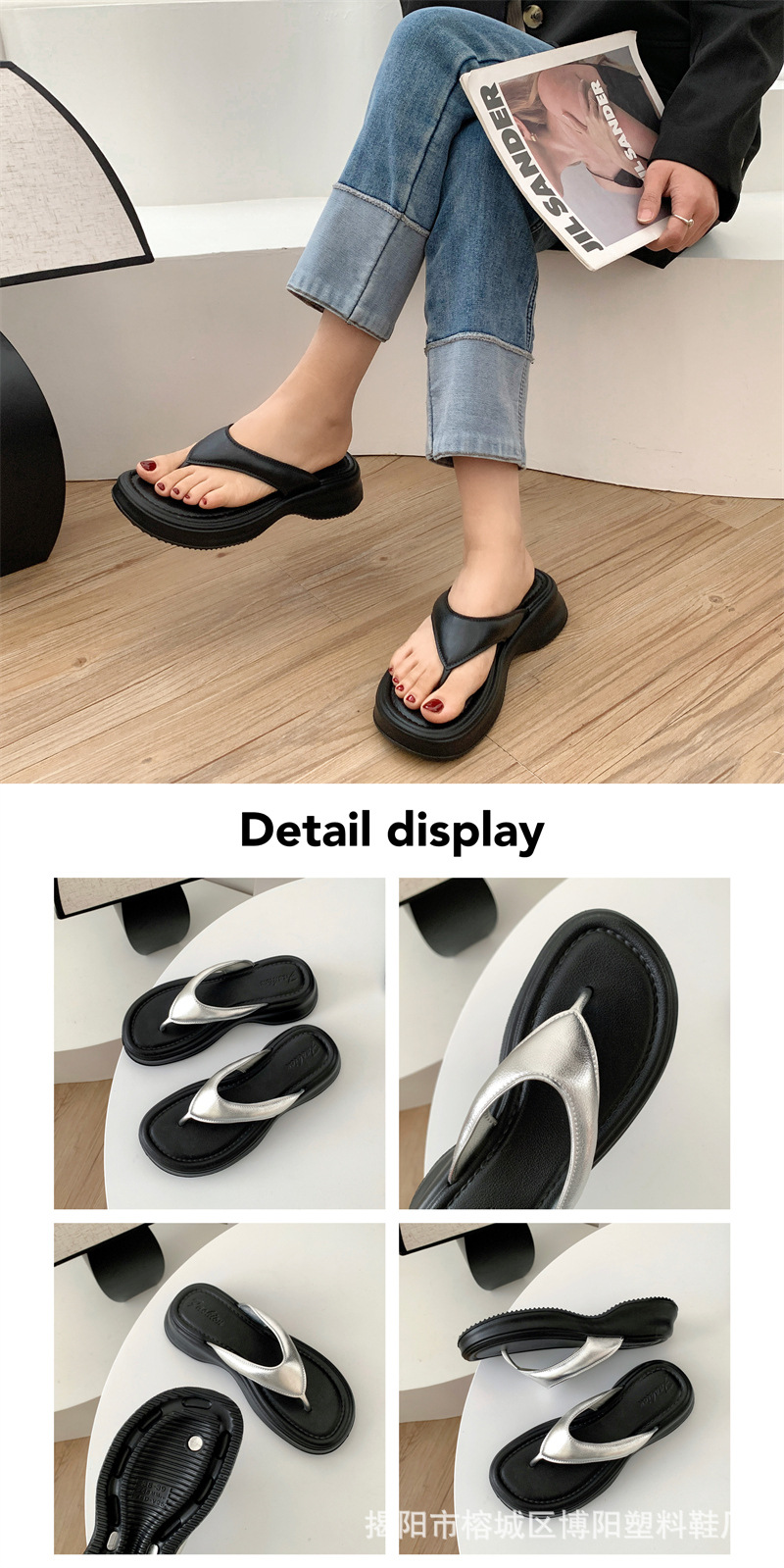 新款夹趾凉鞋女人字拖高跟厚底夹脚外穿时尚百搭轻便EVA凉拖夏季
