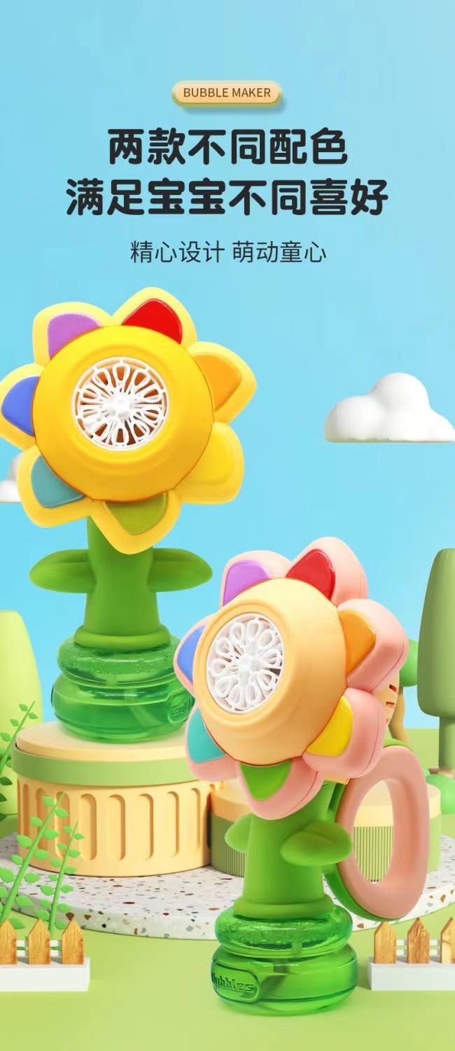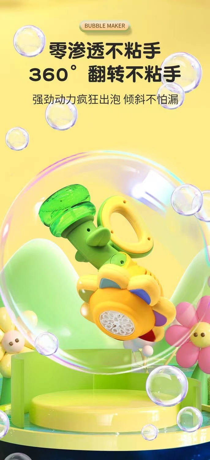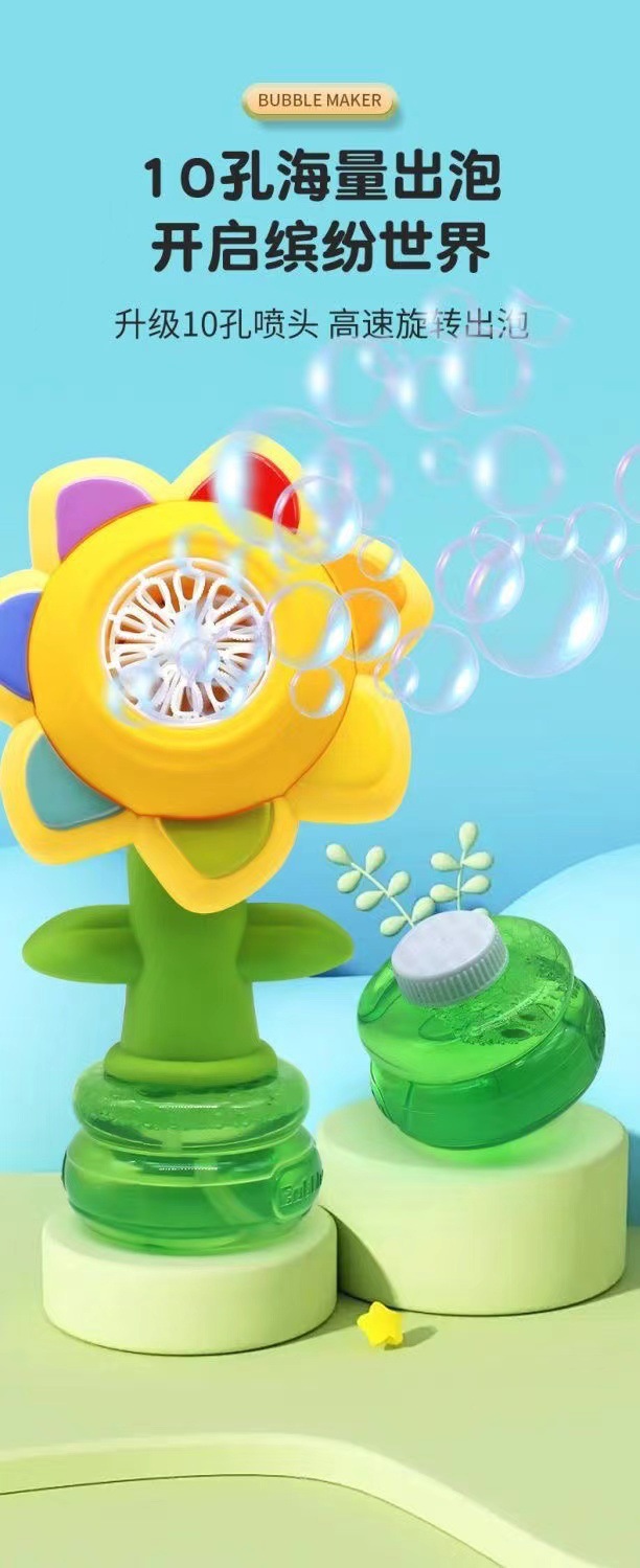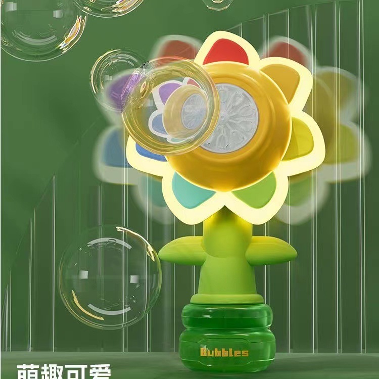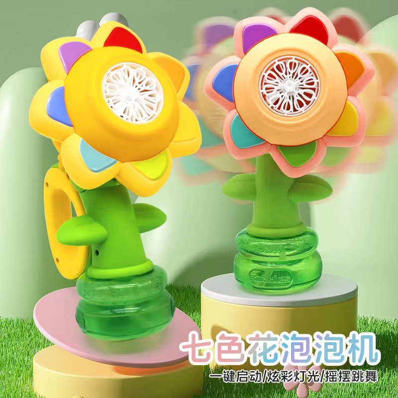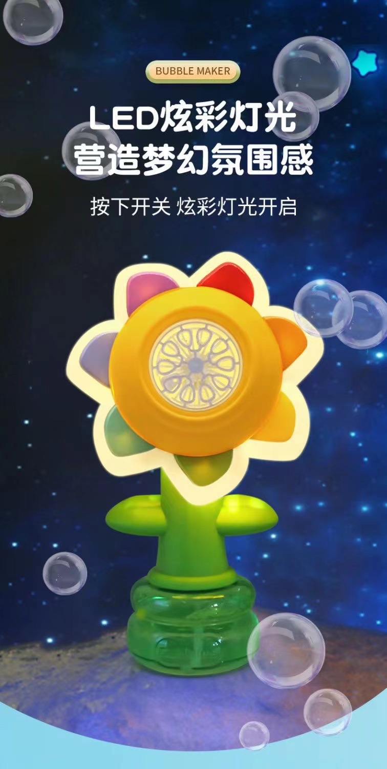 跨境新品全自动会摇头向日葵泡泡机炫彩可调节太阳花电动泡泡玩具